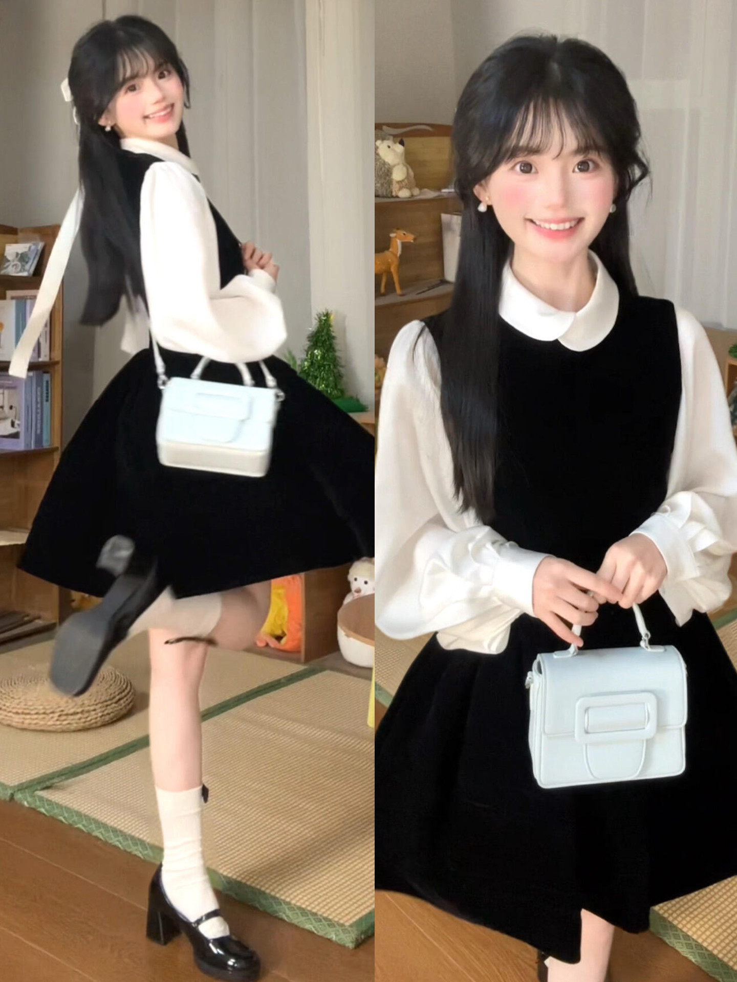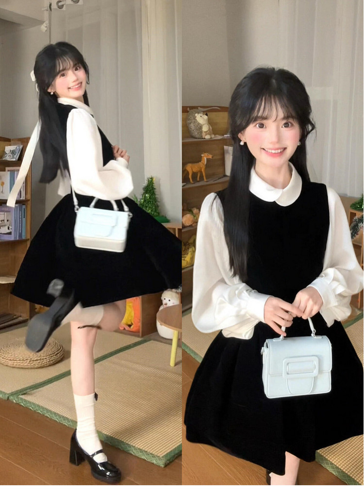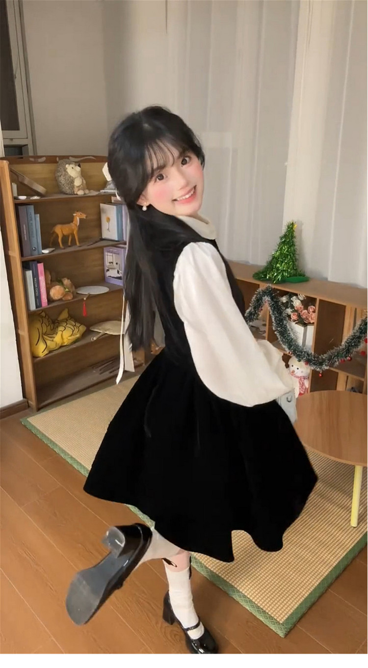 法式富家千金黑色背心连衣裙子女早春季2026新款韩系穿搭一整套装