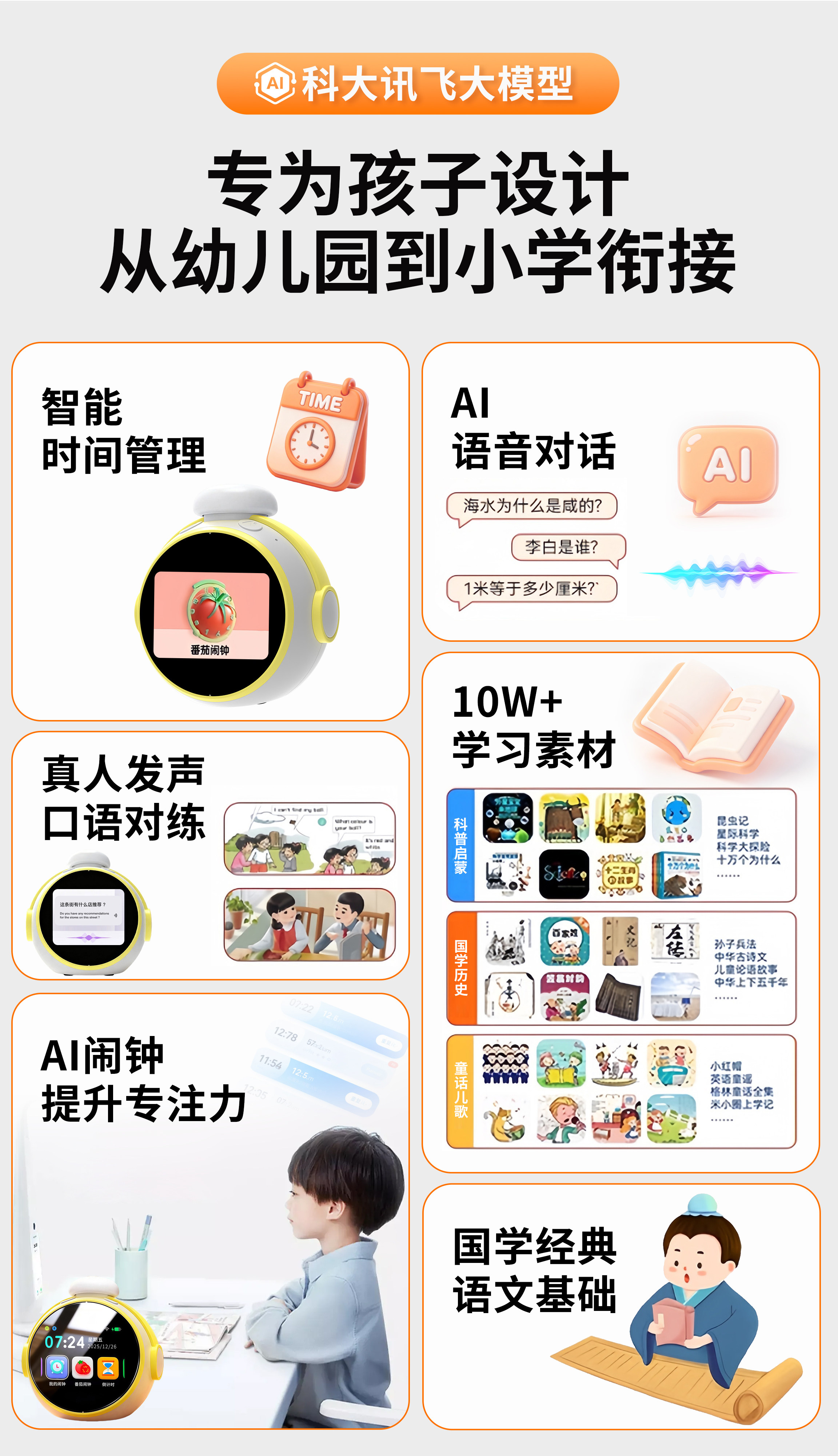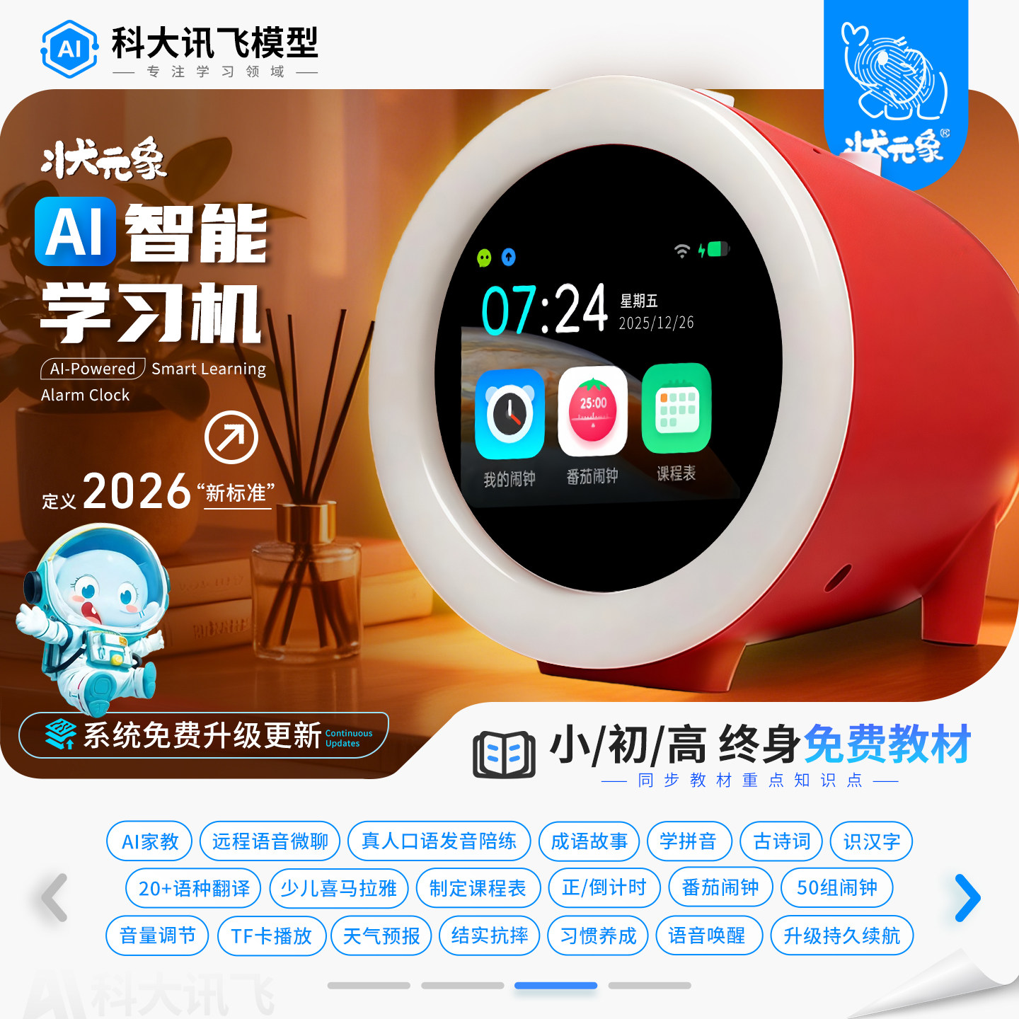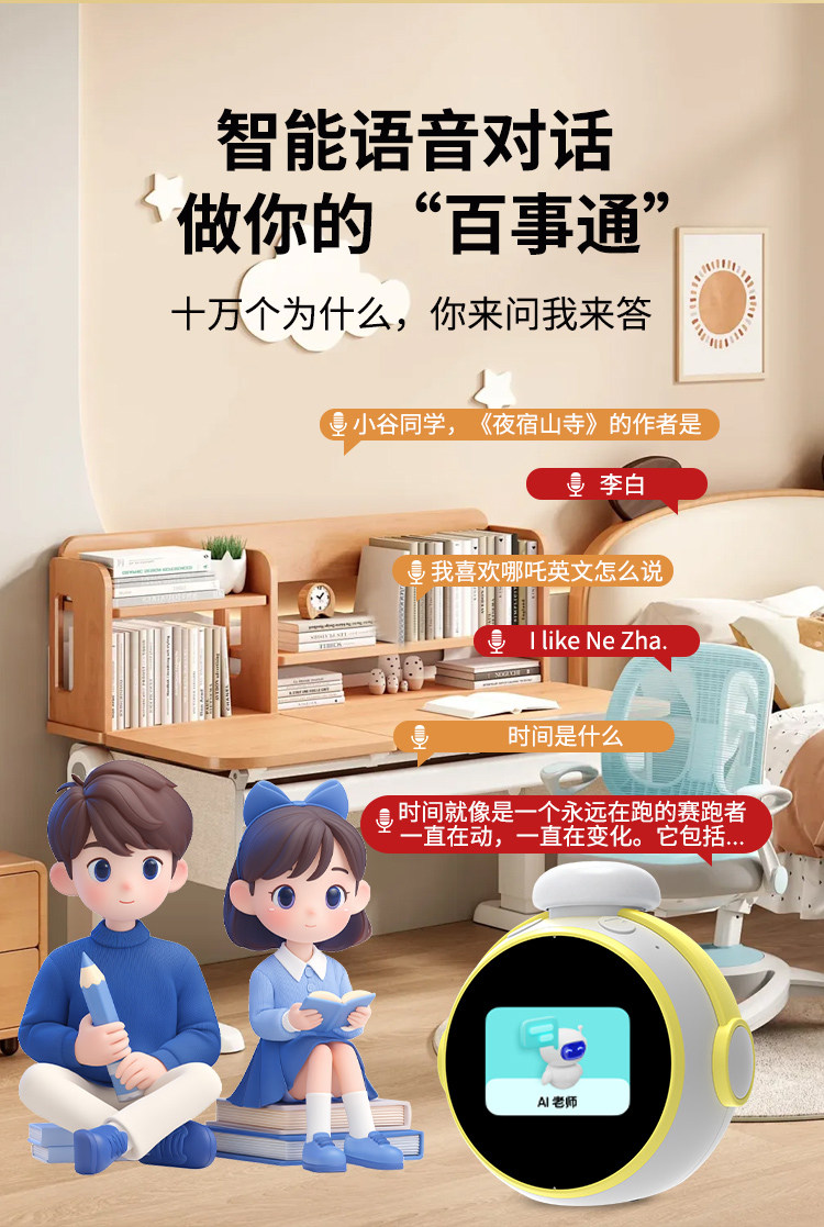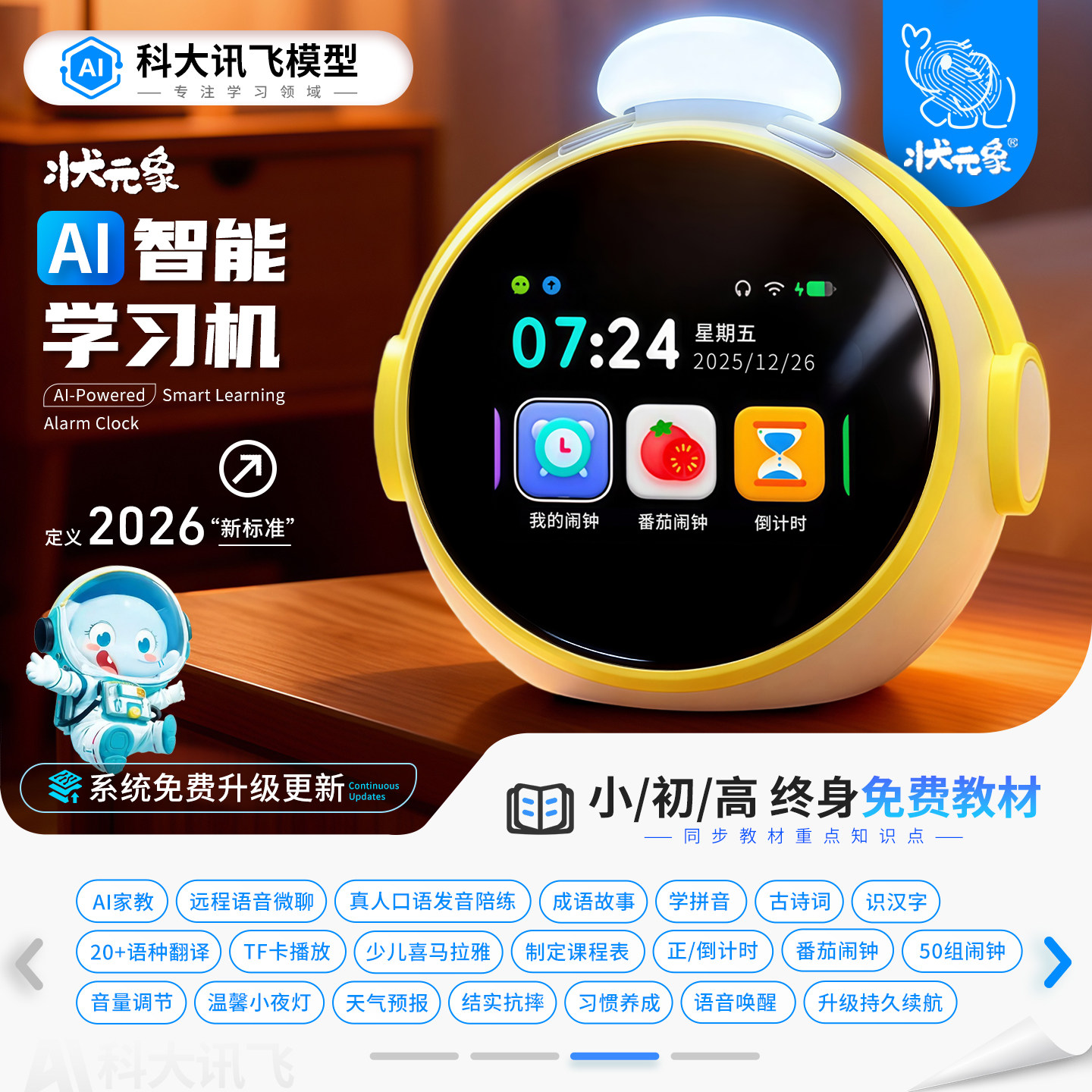 2026AI智能闹钟口语陪练小初学生学习用礼物科大讯飞ai玩具机器人