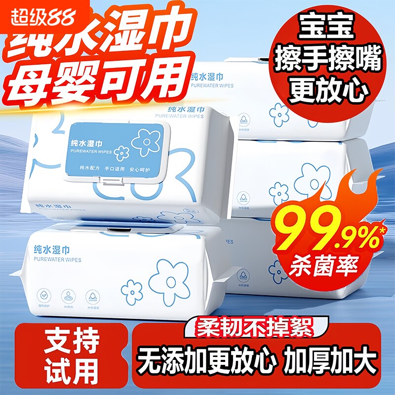 纯水湿巾家用大包湿纸巾婴儿宝宝手口专用便携加厚家庭实惠装清洁