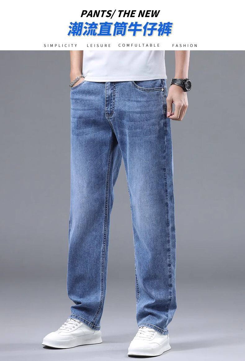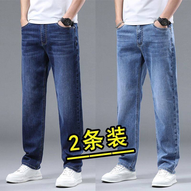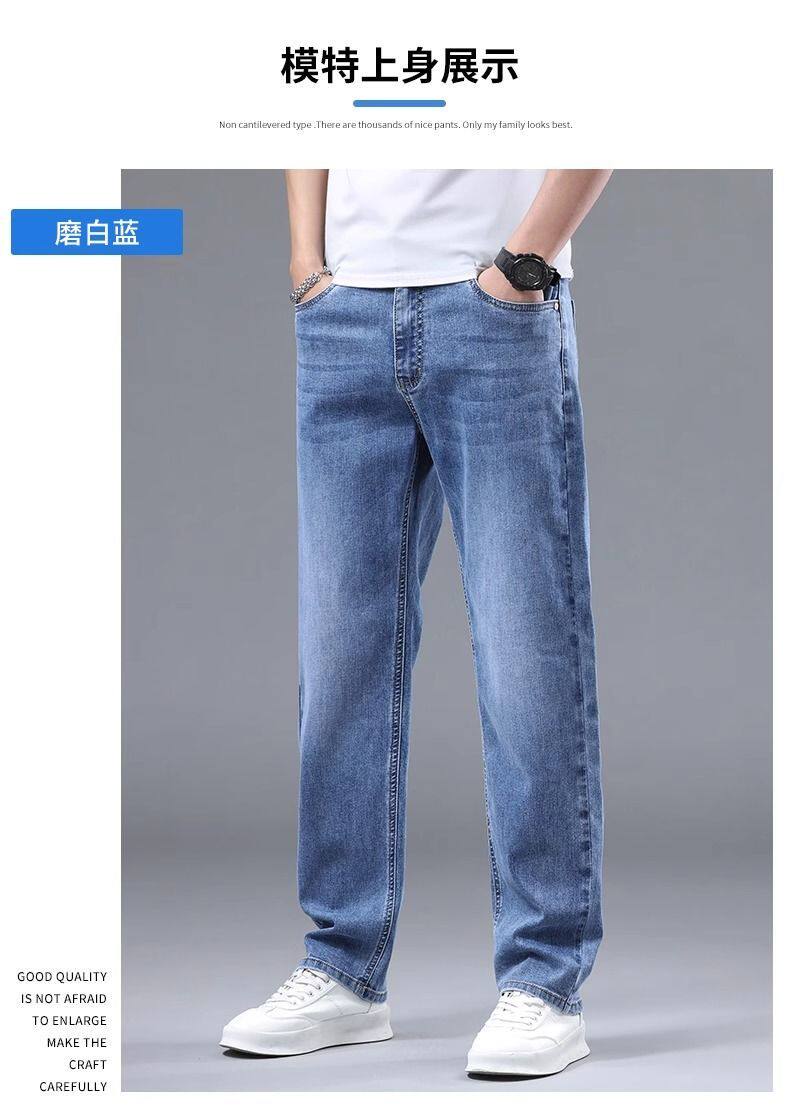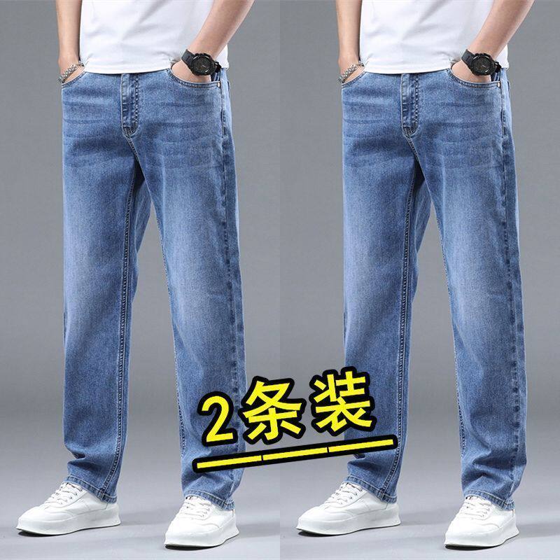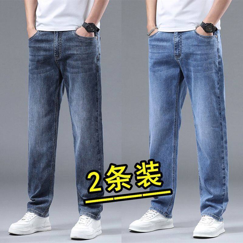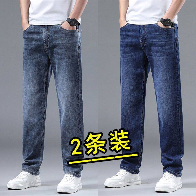 男士弹力牛仔裤宽松直筒长裤夏季青年商务百搭休闲裤工作干活裤子
