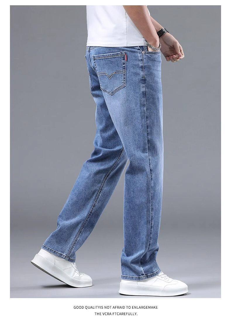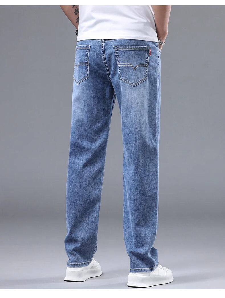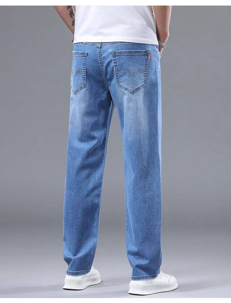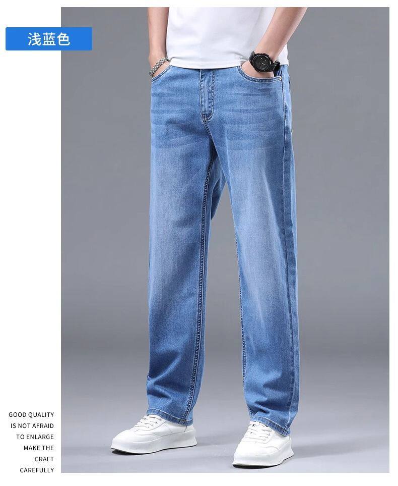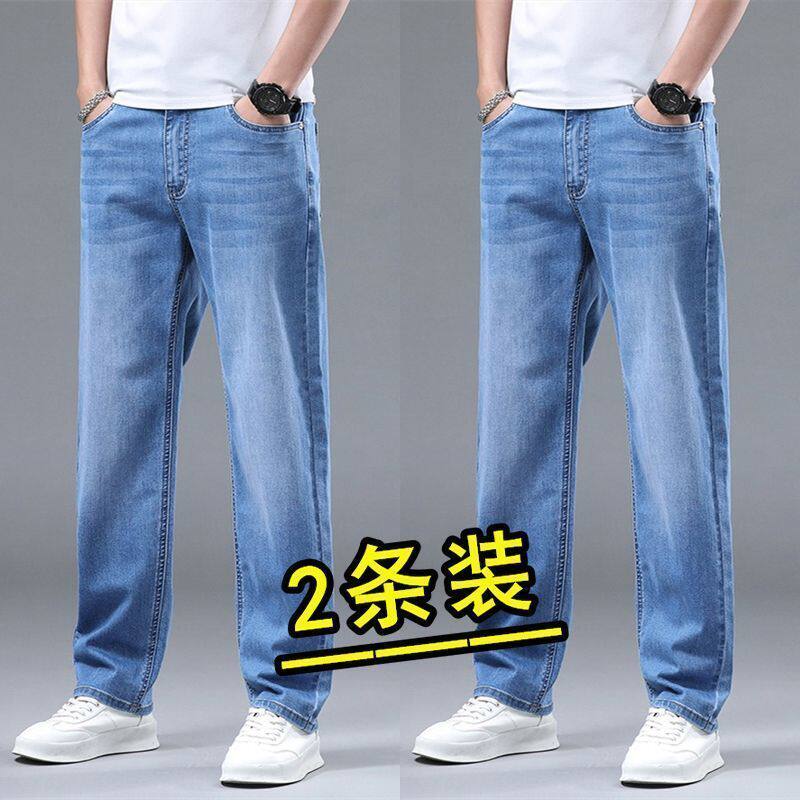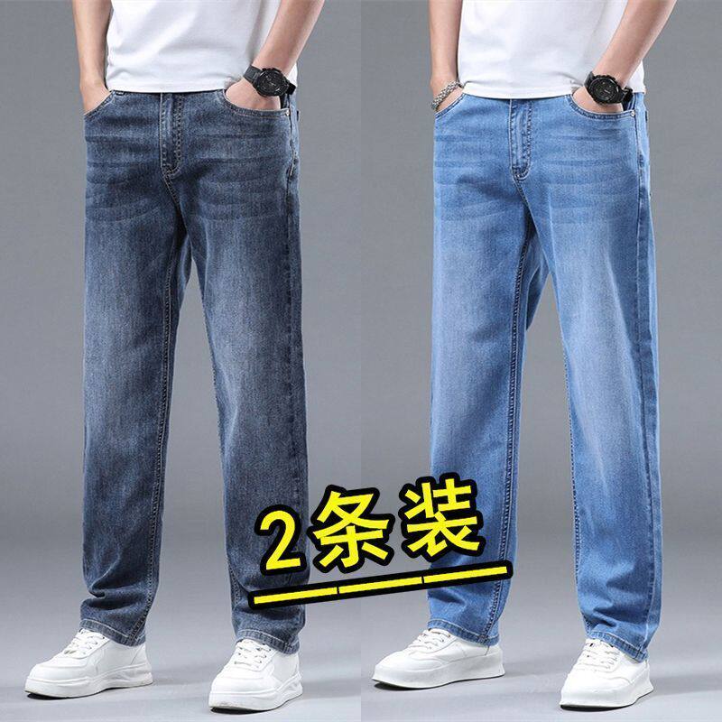 男士弹力牛仔裤宽松直筒长裤夏季青年商务百搭休闲裤工作干活裤子