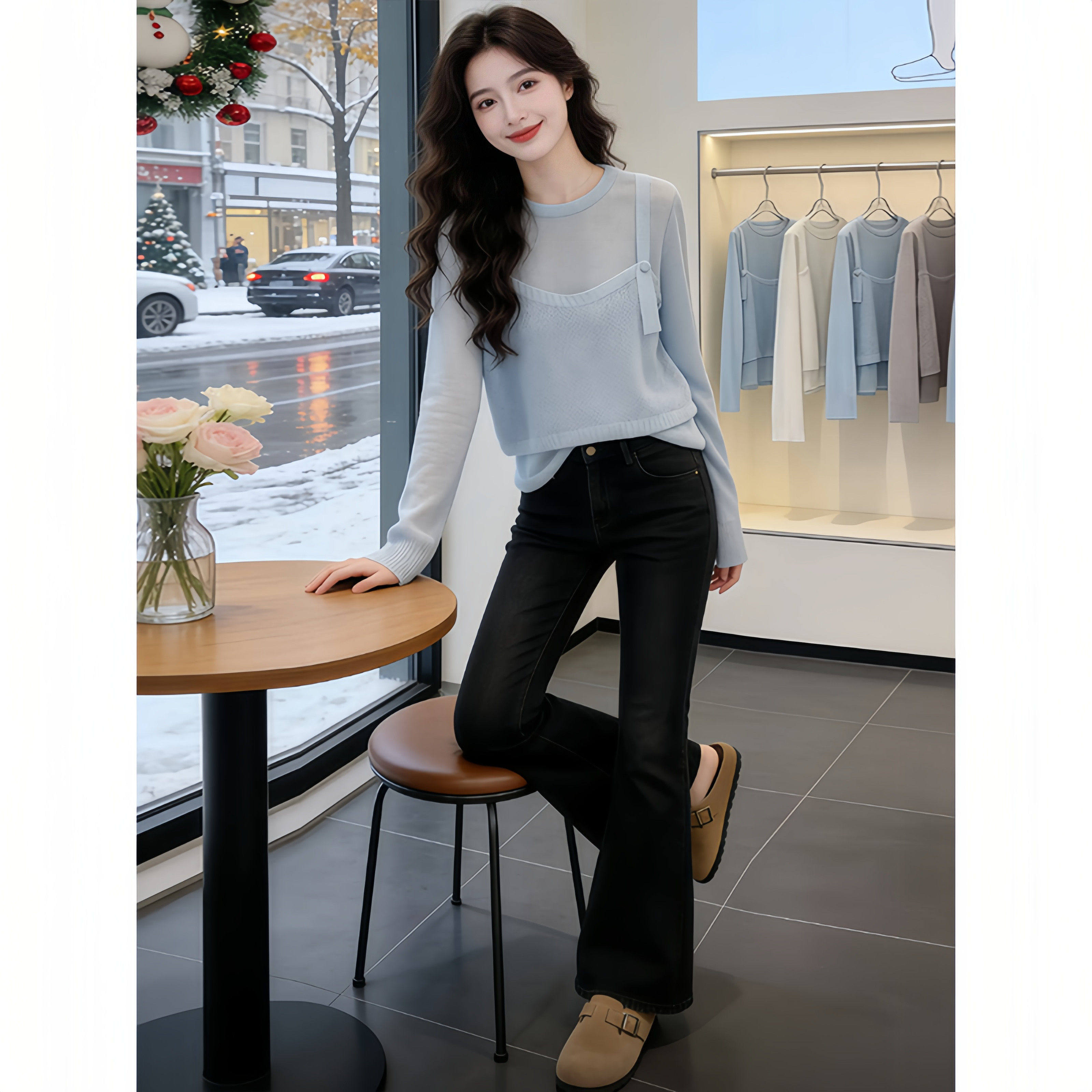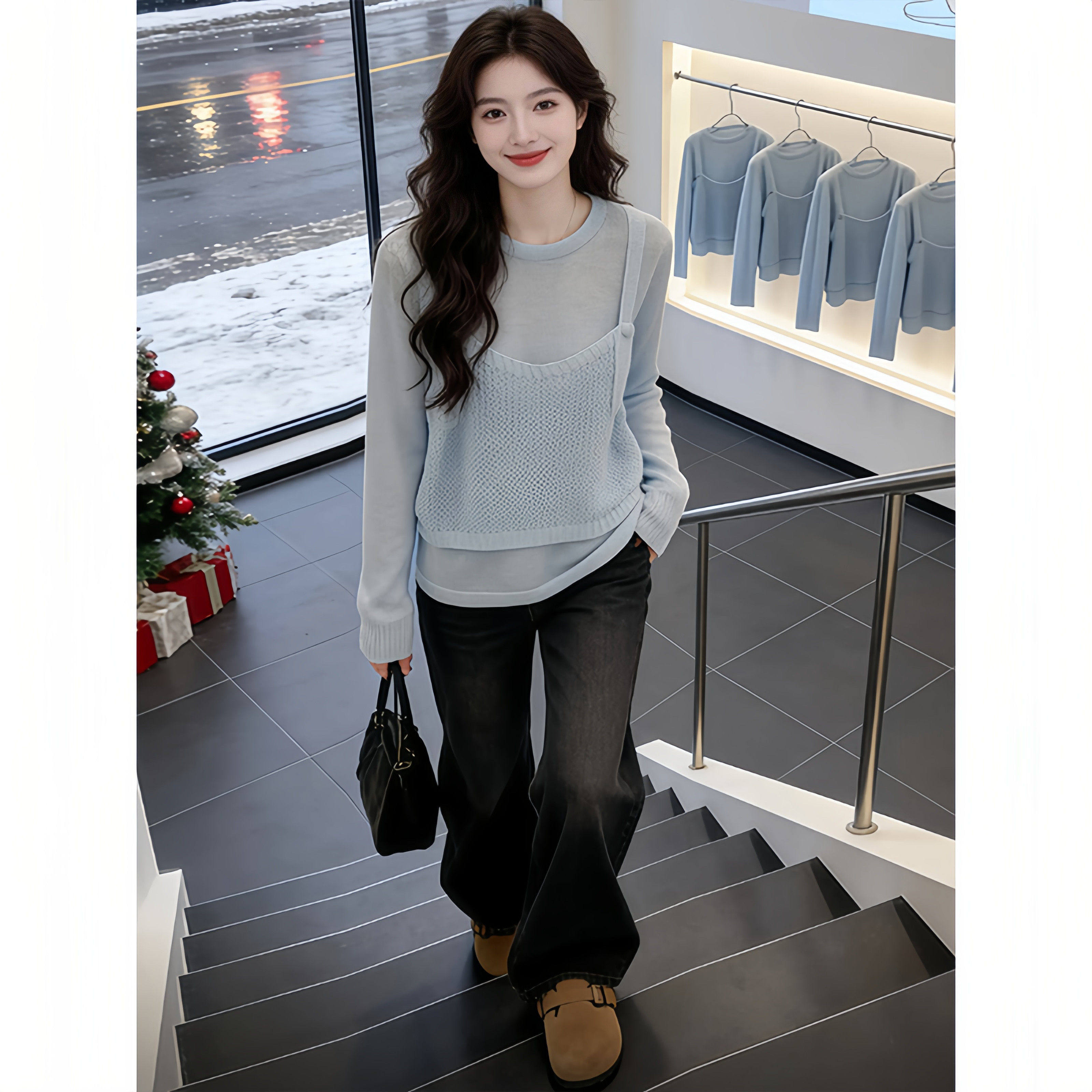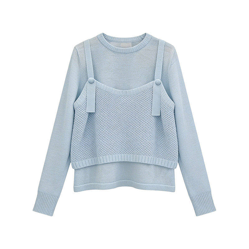 韩系高级感轻奢精致百搭长袖针织衫春季假两件通勤显白打底衫上衣