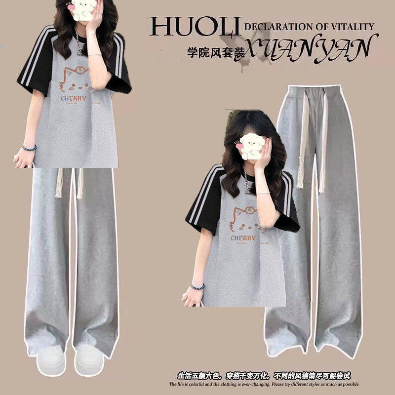 夏季初高中女孩大童学生穿搭一整套2026新款短袖T恤休闲运动套装