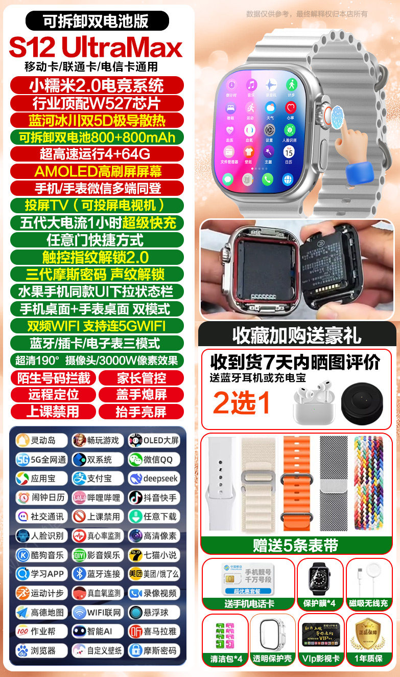 华强北手表s12ultra顶配版cd55max智能电话手表W527可插卡续航王