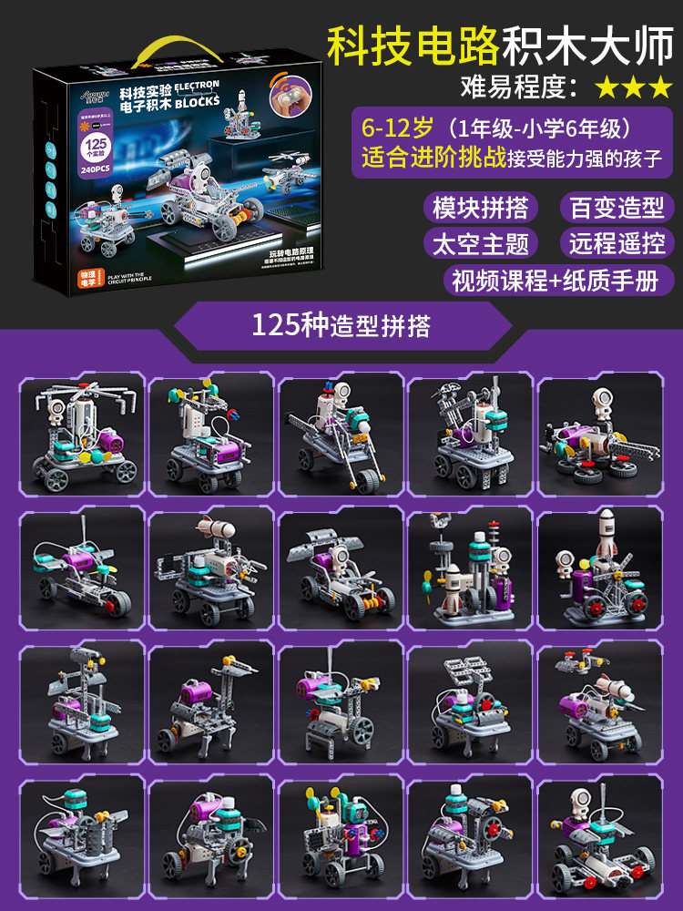 儿童遥控电动电路积木电子益智玩具物理科学实验套装男孩生日礼物