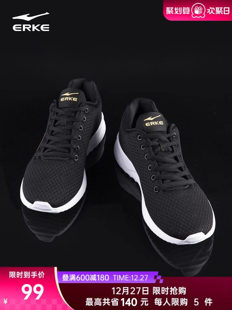 鸿星尔克运动鞋冬季新款男鞋跑步鞋软底跑鞋爸爸休闲鞋中年黑鞋子