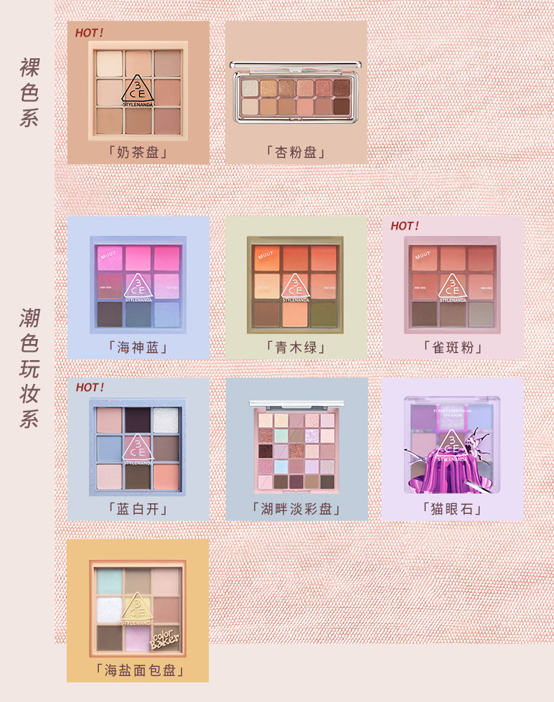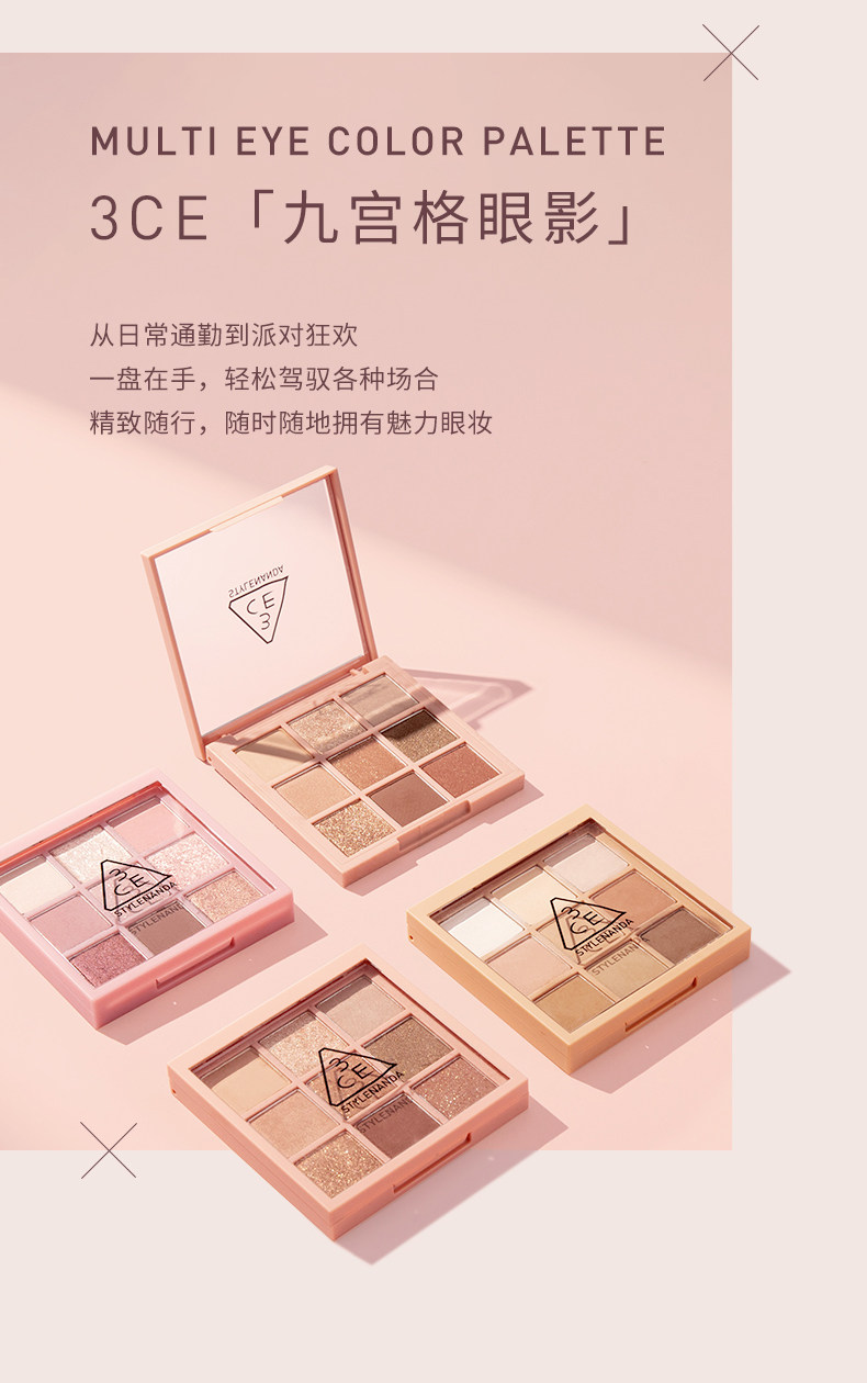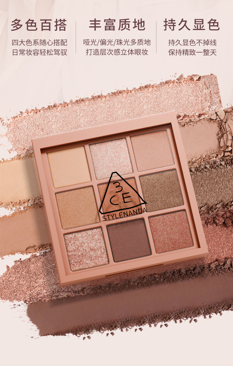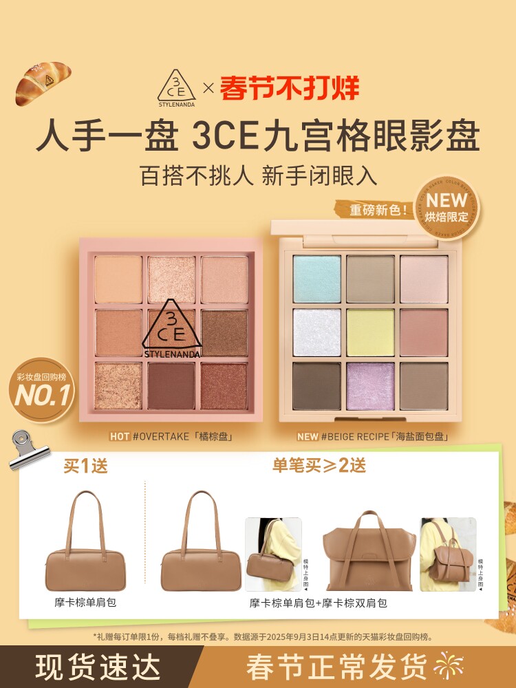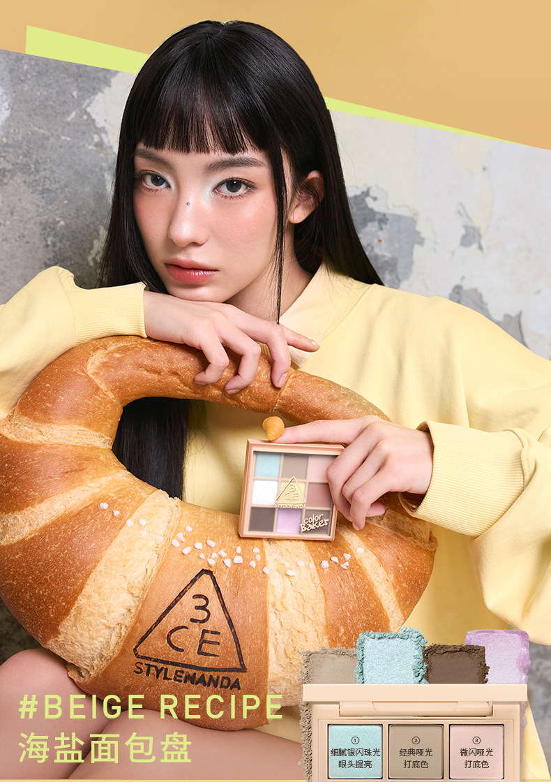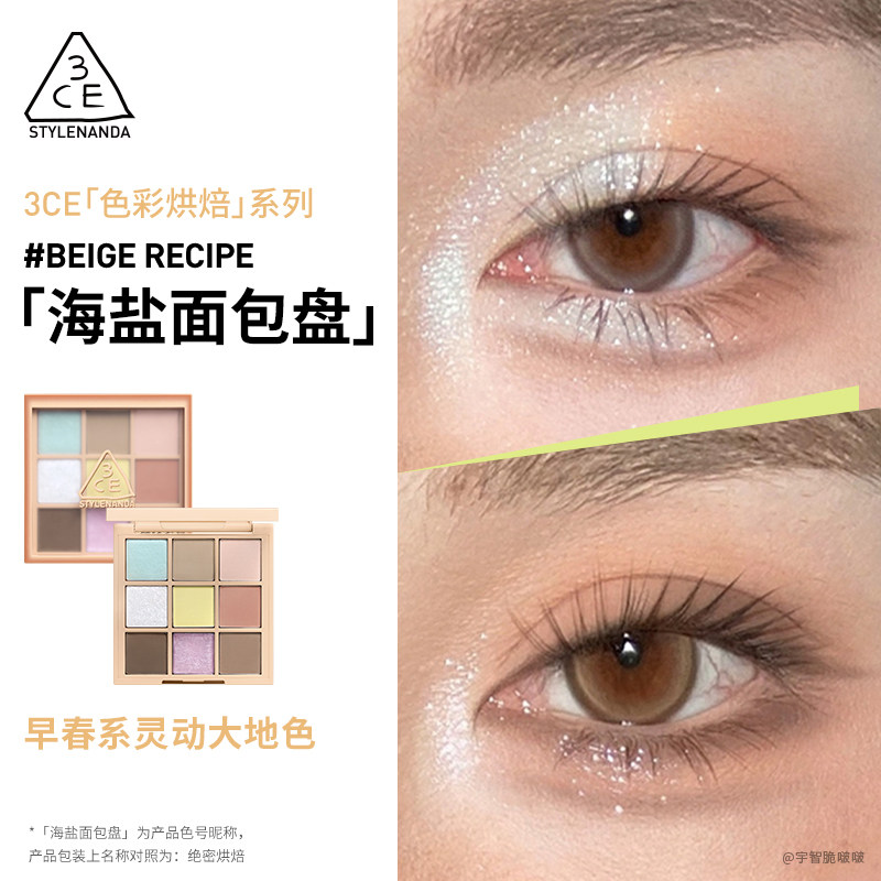 【彩妆礼物】3CE九宫格眼影 海盐面包盘烘焙限定哑光亮片大地色