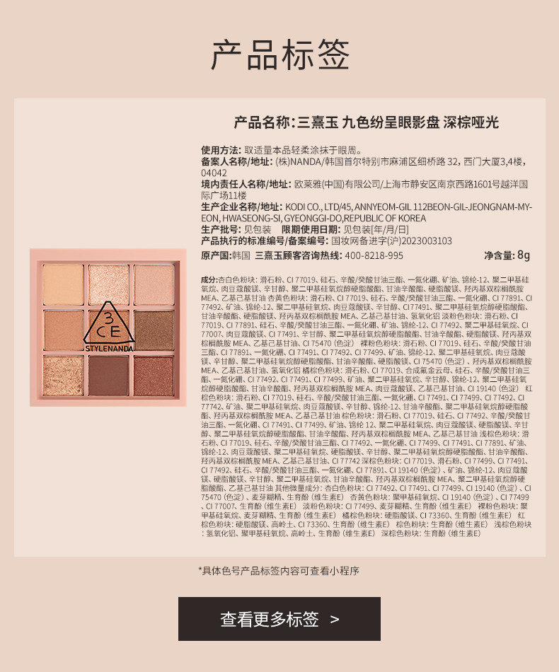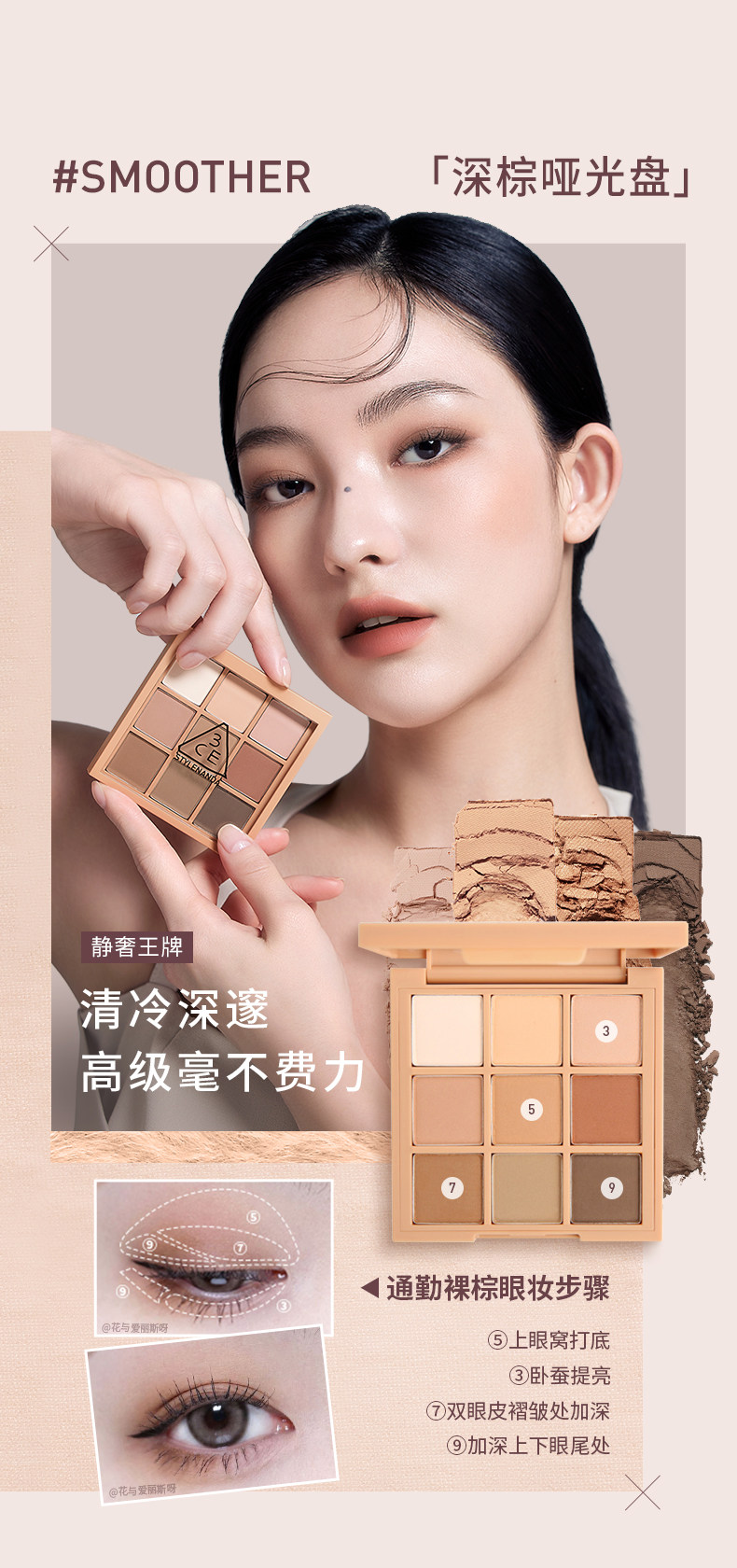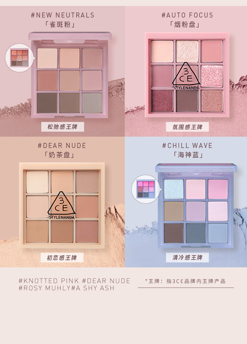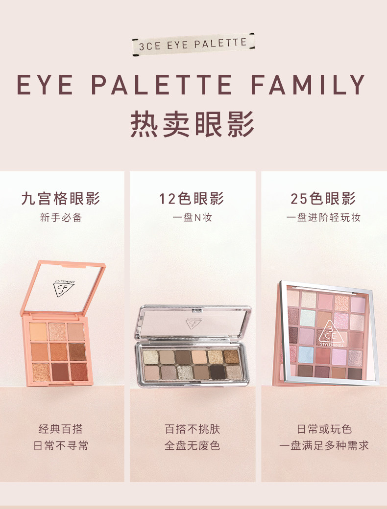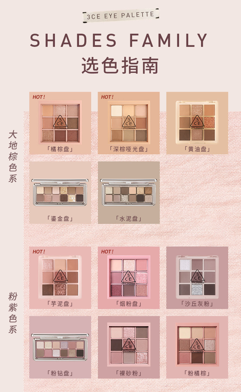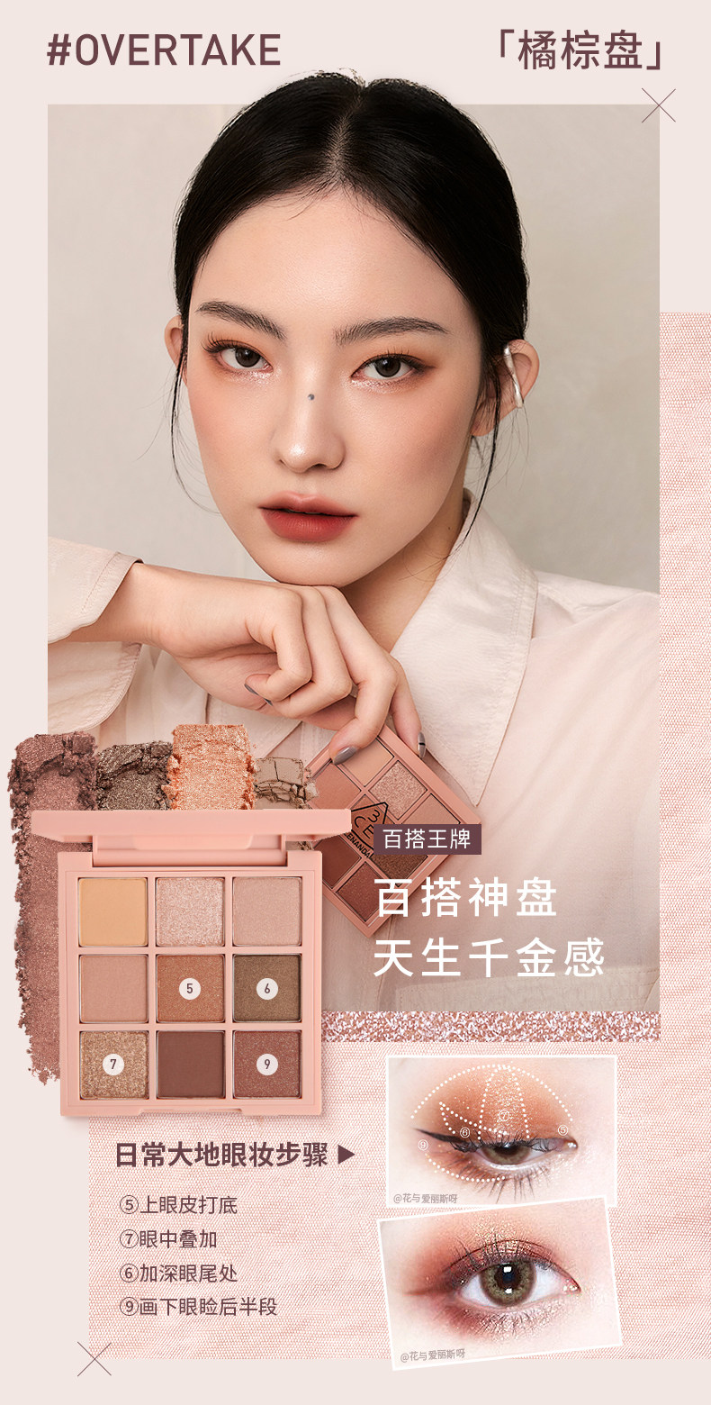 【彩妆礼物】3CE九宫格眼影 海盐面包盘烘焙限定哑光亮片大地色