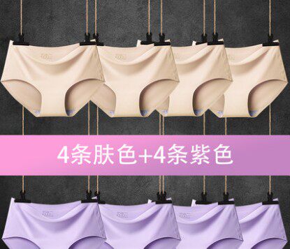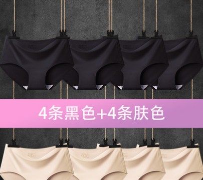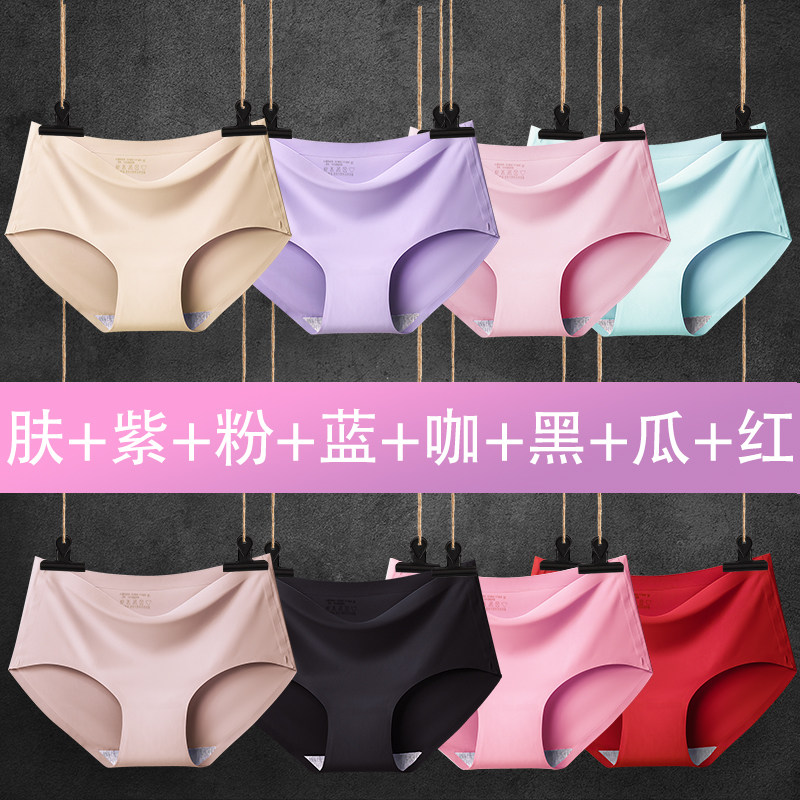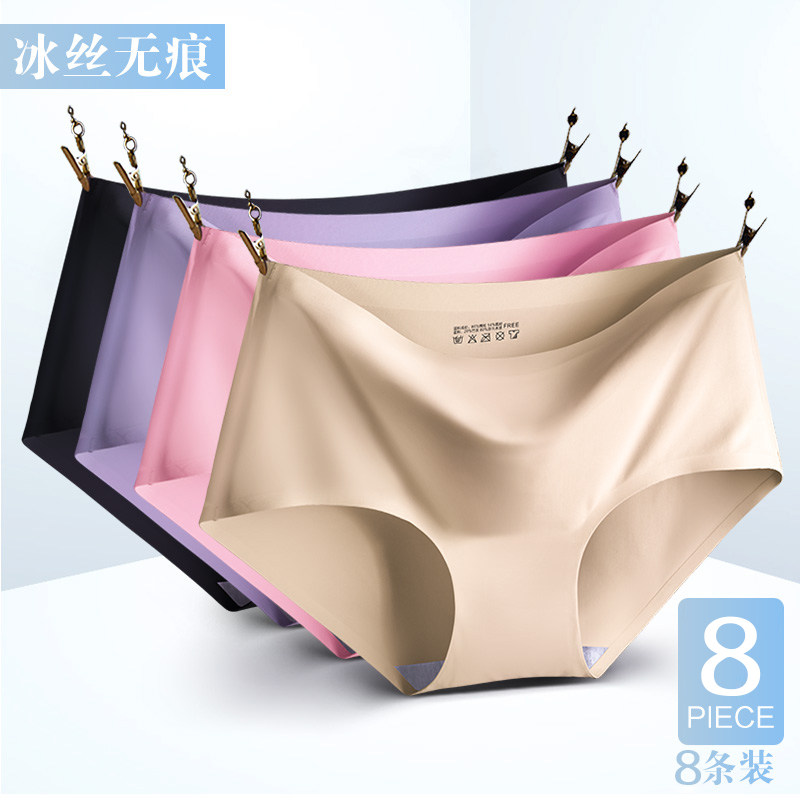8条装无痕内裤女中腰纯色薄款夏冰丝女士内裤头一片式运动三角裤