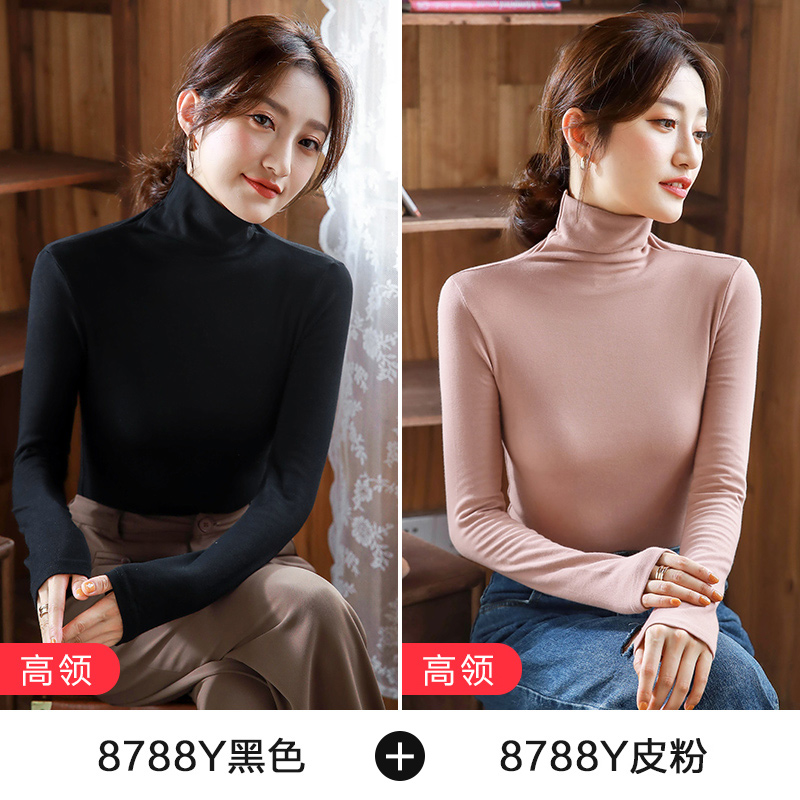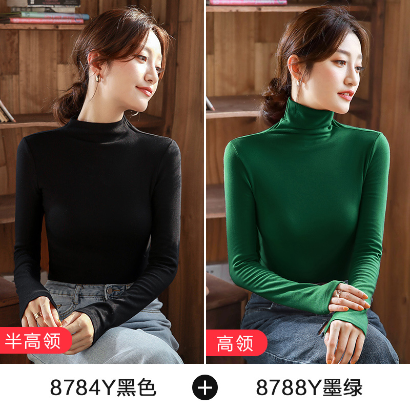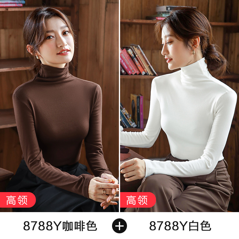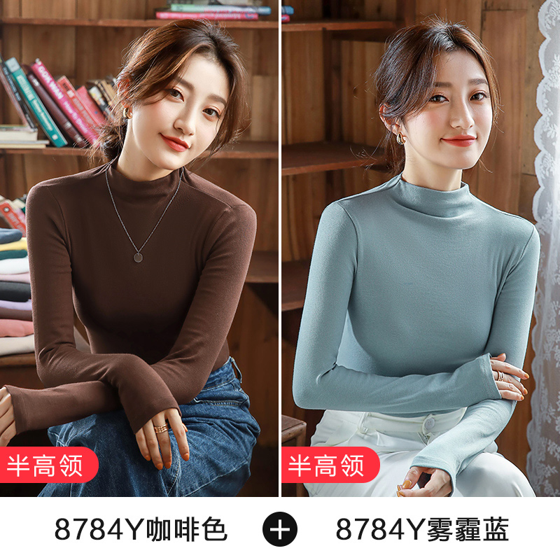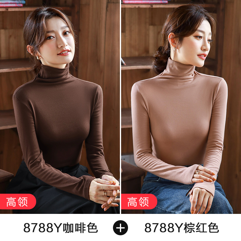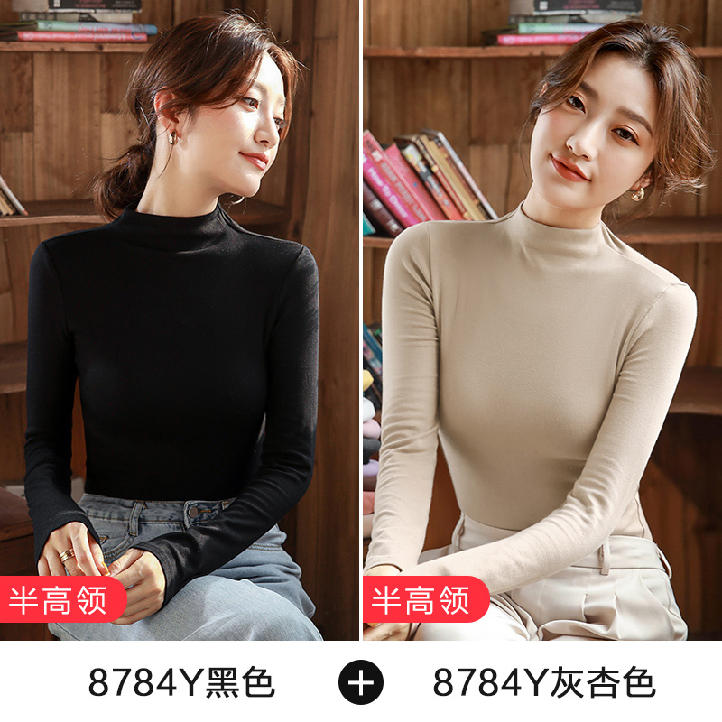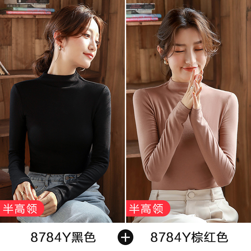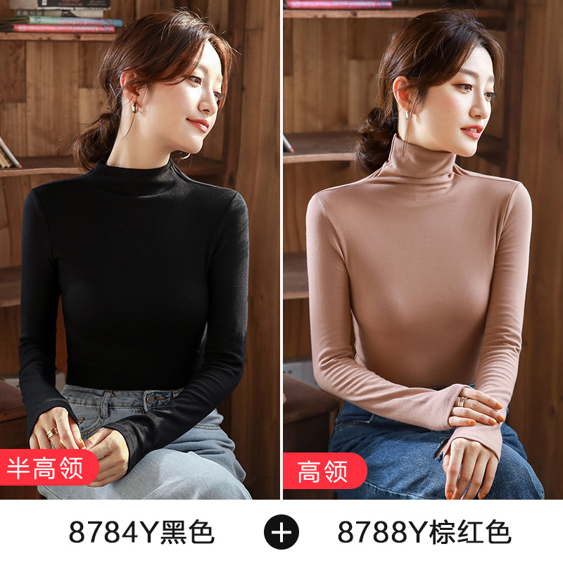 2件】纯色内搭长袖打底衫女半高领紧身纯棉上衣2025秋冬新款体恤