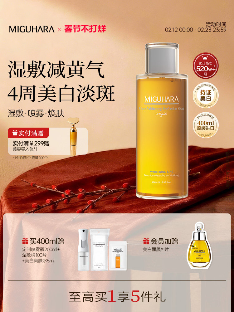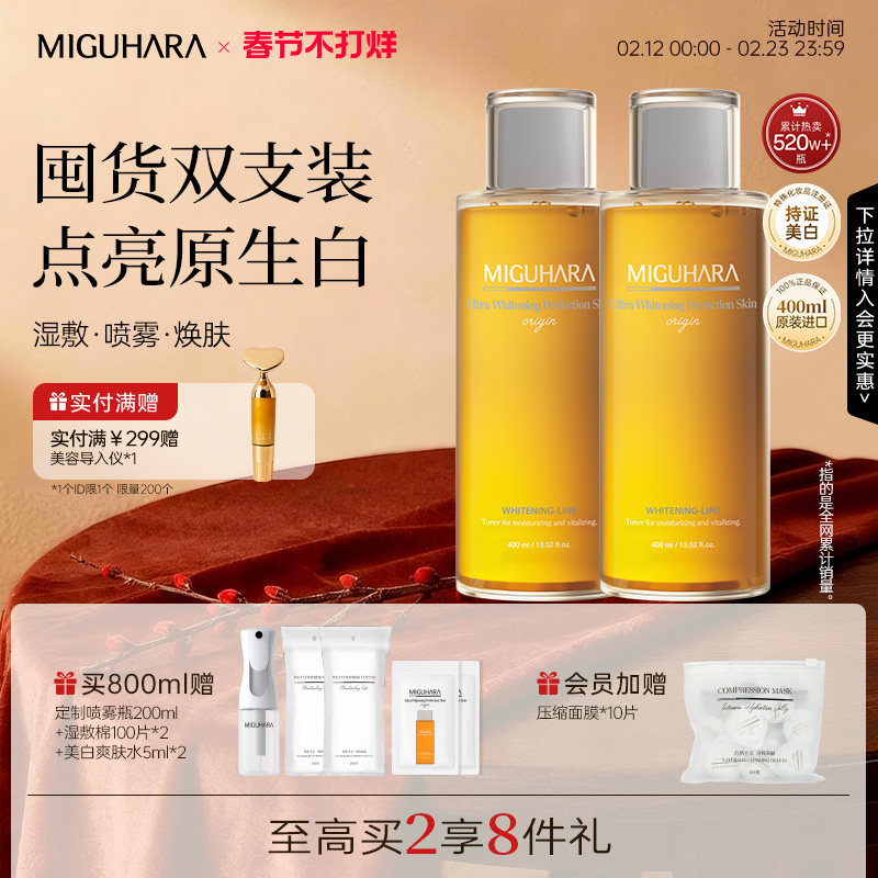 【不打烊】MIGUHARA湿敷水咪咕哈啦美白淡斑爽肤水提亮保湿补水