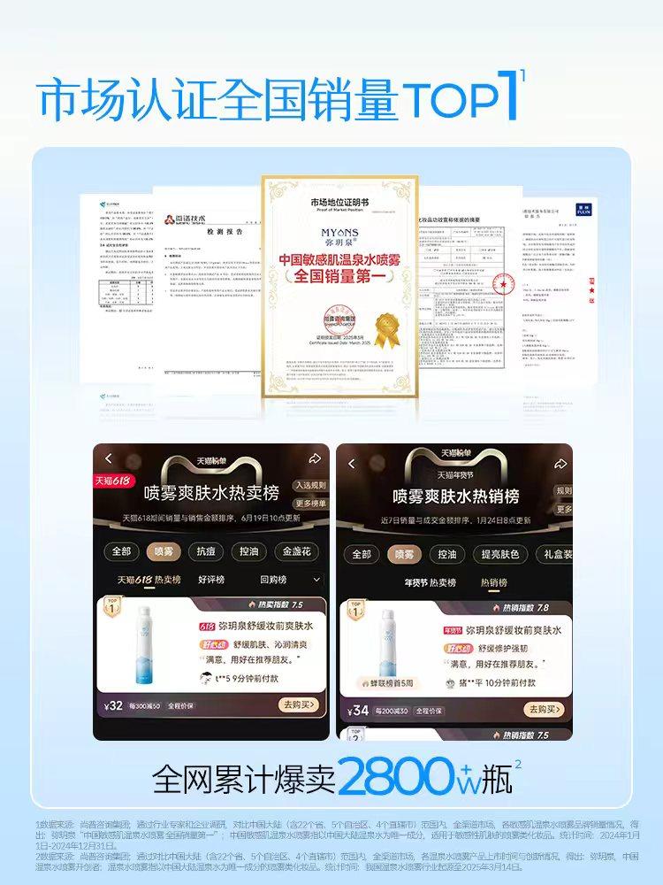 弥玥泉补水喷雾女舒缓妆前化妆温泉小分子护肤空姐喷雾保湿爽肤水