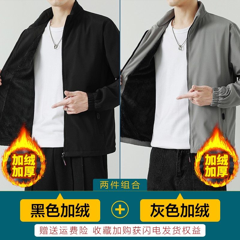 外套男士2025春秋季新款百搭加厚冬装上衣服休闲运动保暖加绒夹克