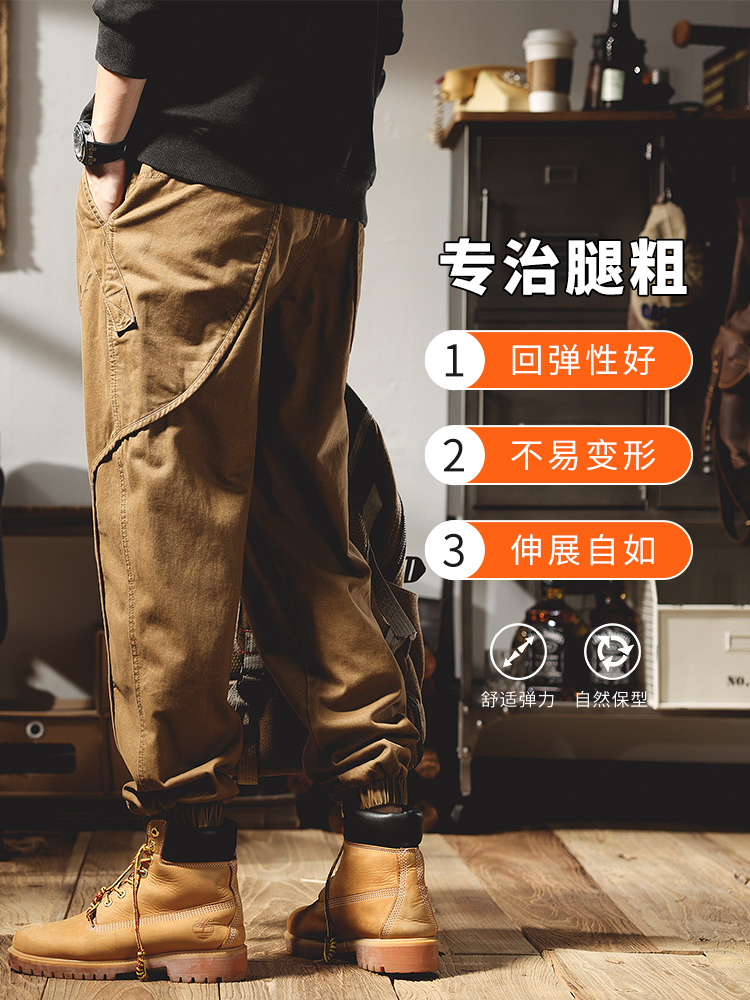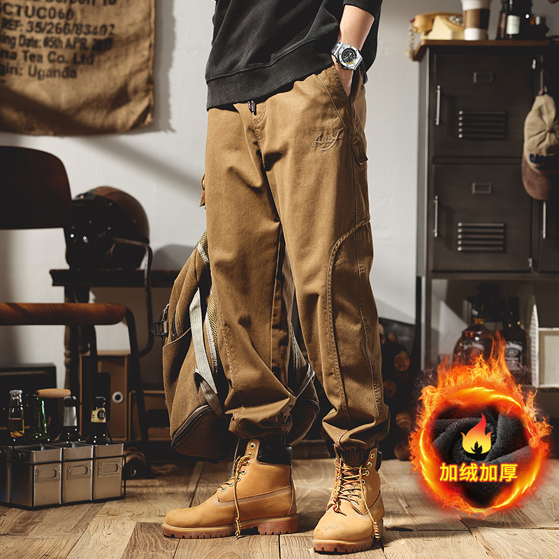 美式重磅工装裤子男士2025秋冬新款宽松潮流加绒休闲裤潮牌束脚裤