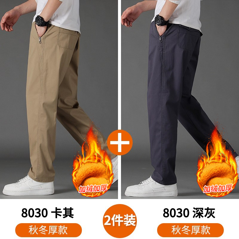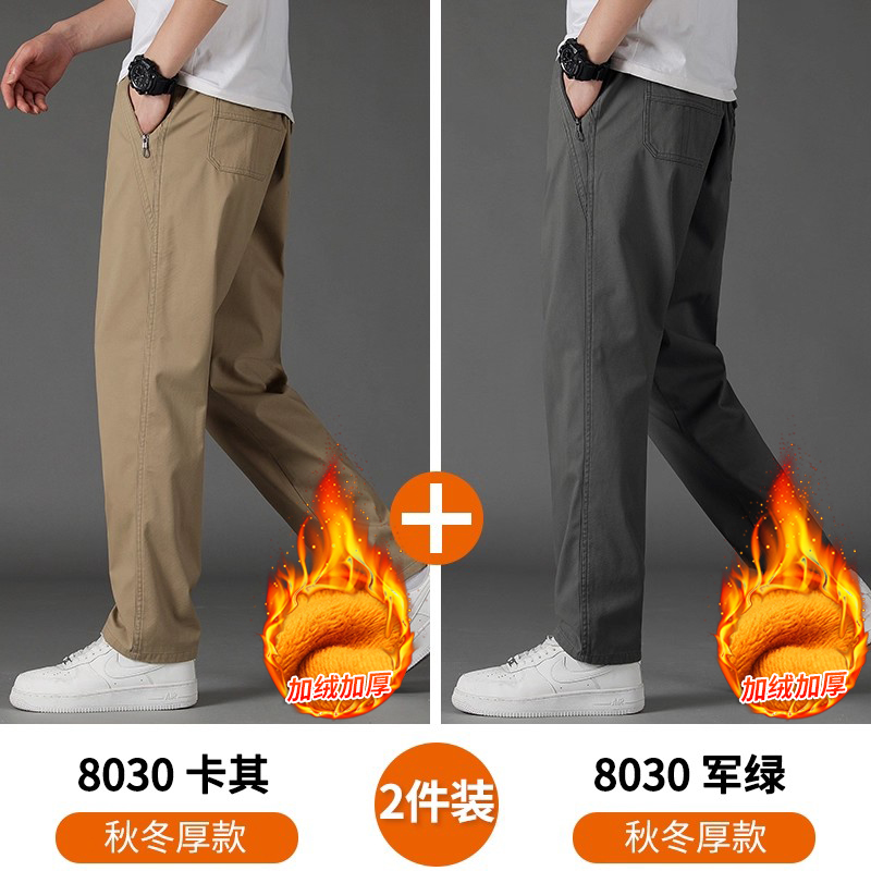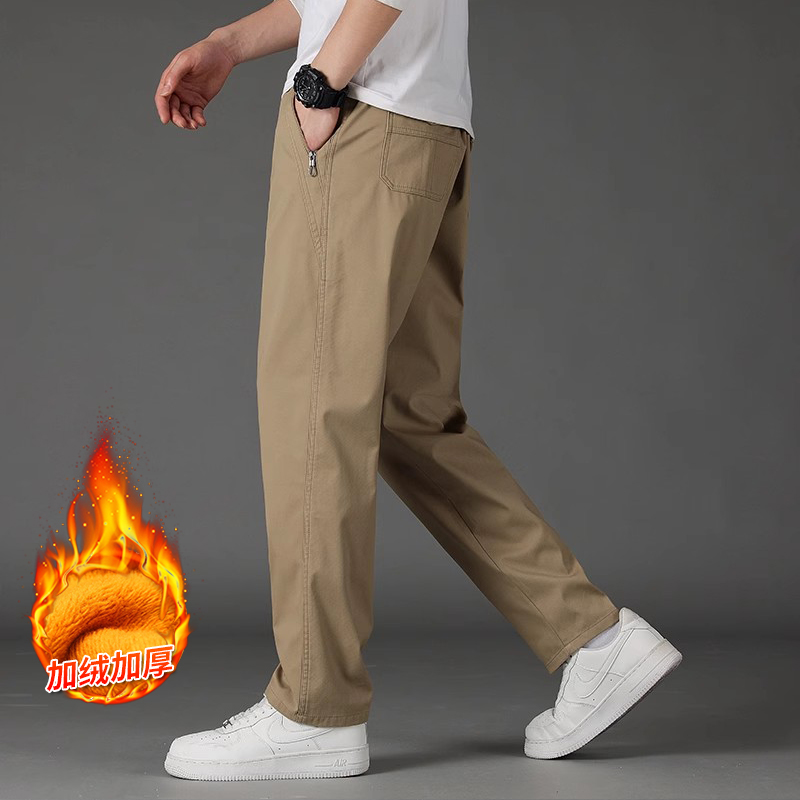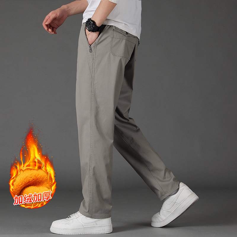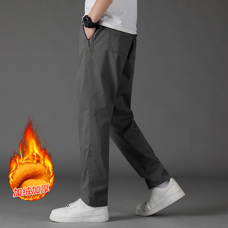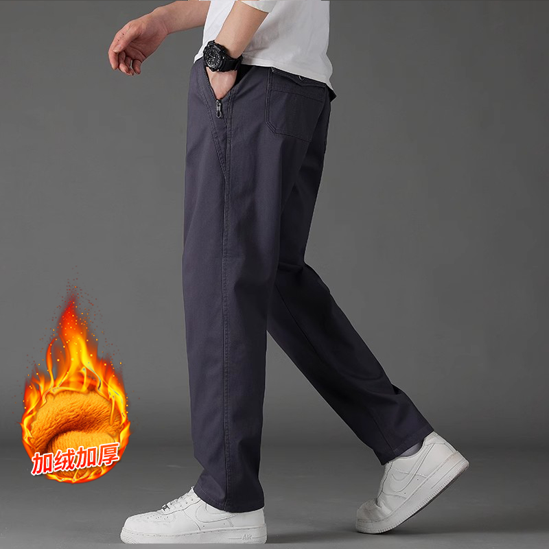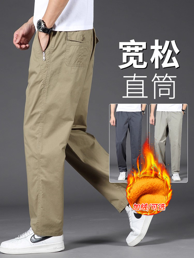 纯棉男士加绒加厚工装裤子男款2025新款冬直筒宽松码冲锋休闲裤男