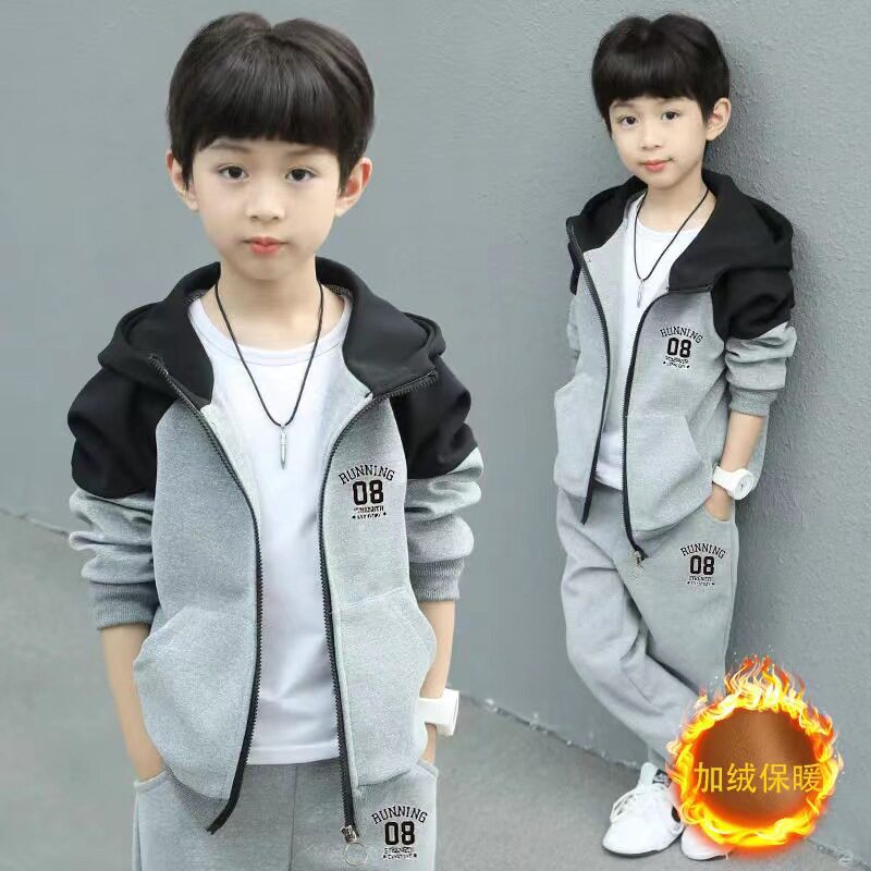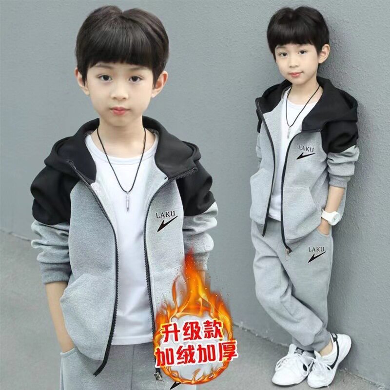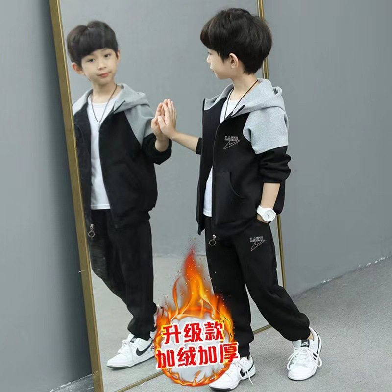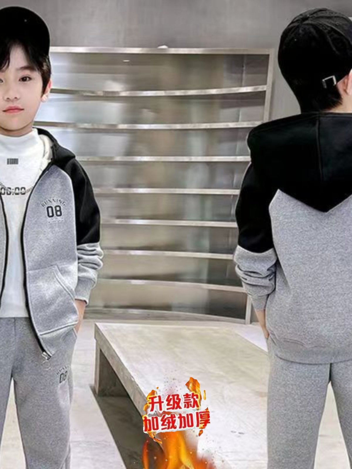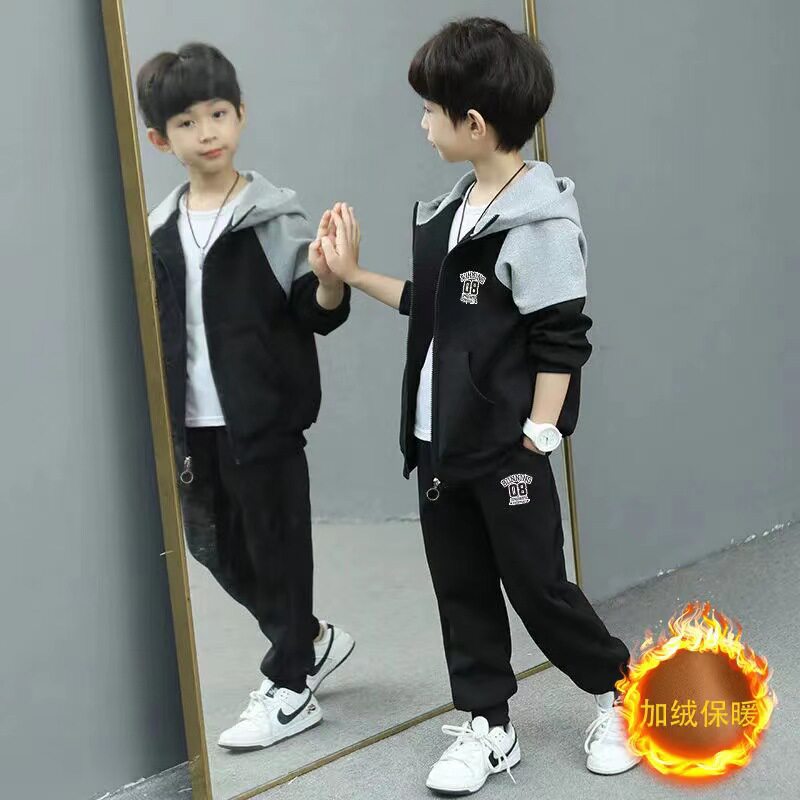 男童春秋薄款套装新款儿童运动服夹克加绒加厚韩版冬装长袖外套