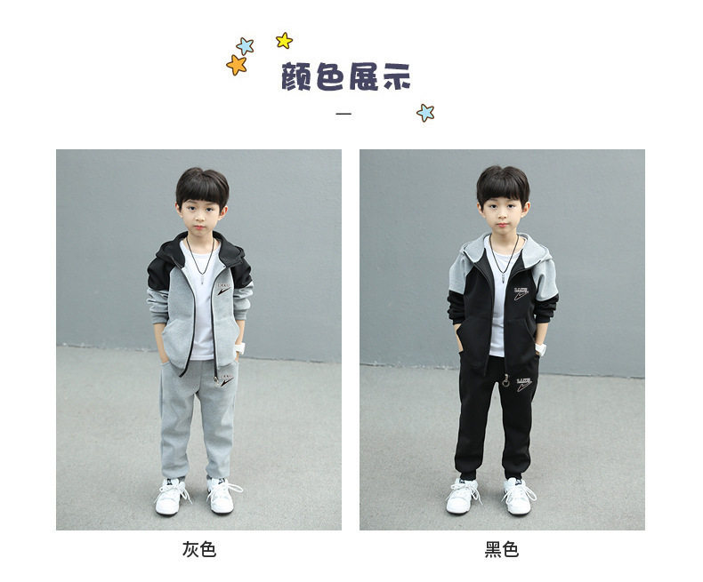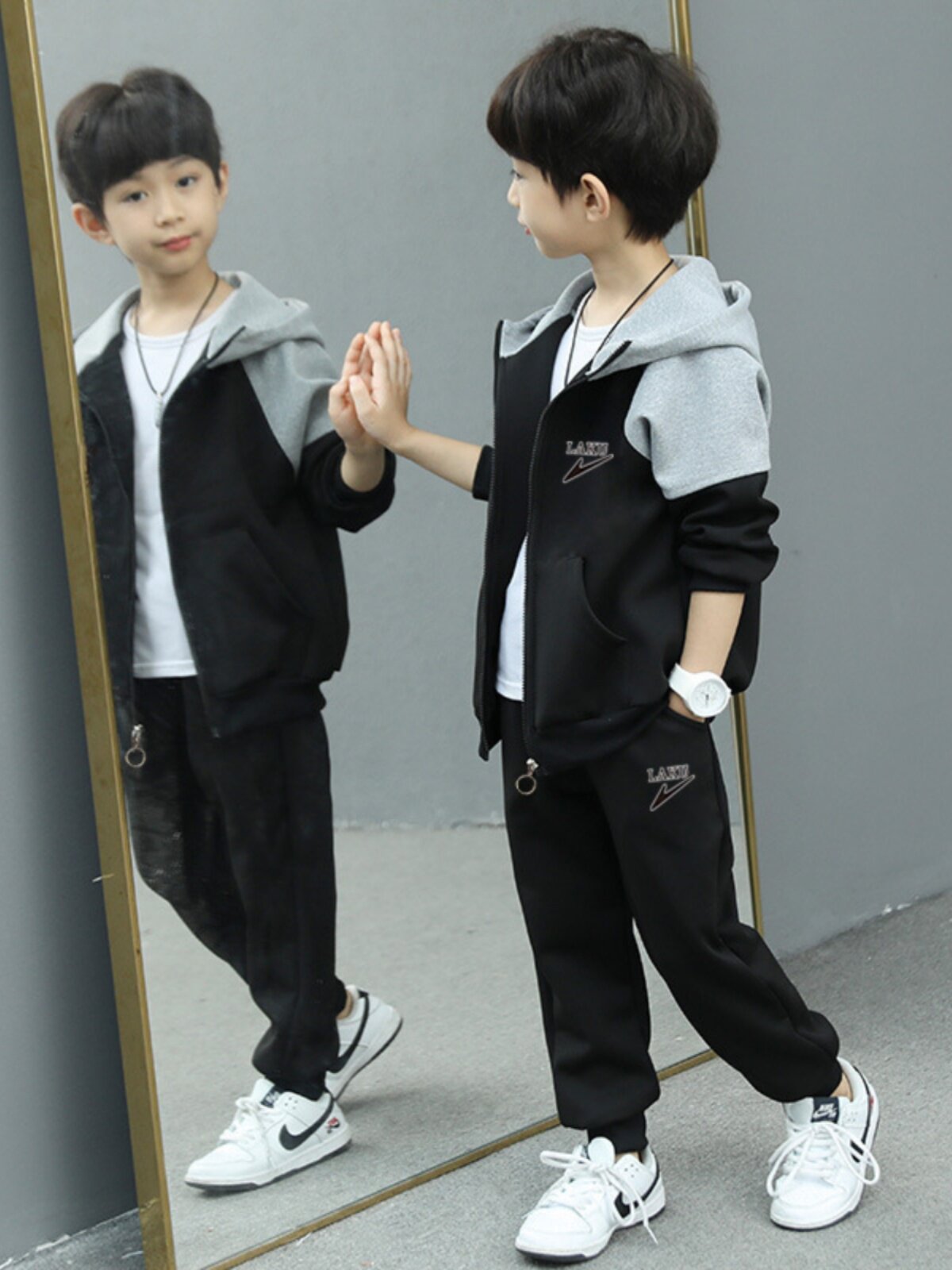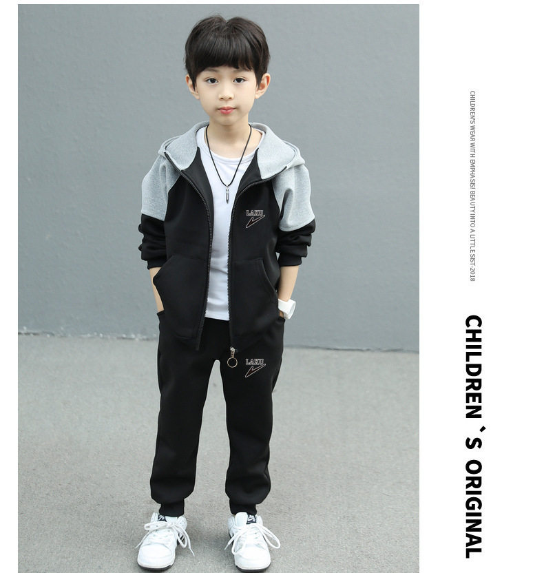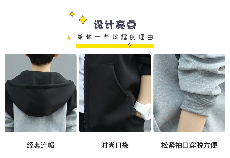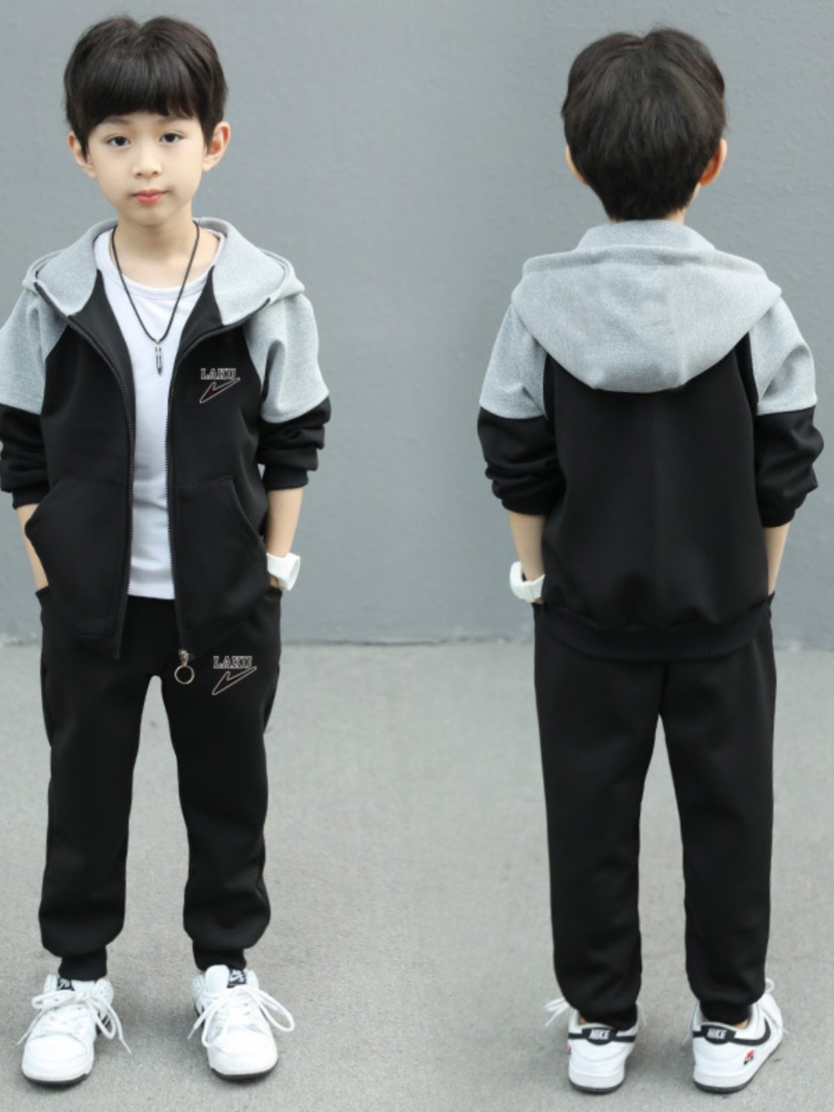 男童春秋薄款套装新款儿童运动服夹克加绒加厚韩版冬装长袖外套