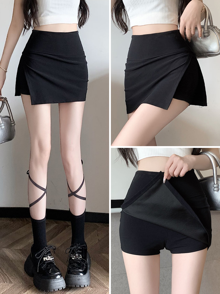 侧开叉西装半身裙女夏装黑色包臀短裙裤纯欲辣妹A字弹力修身半裙