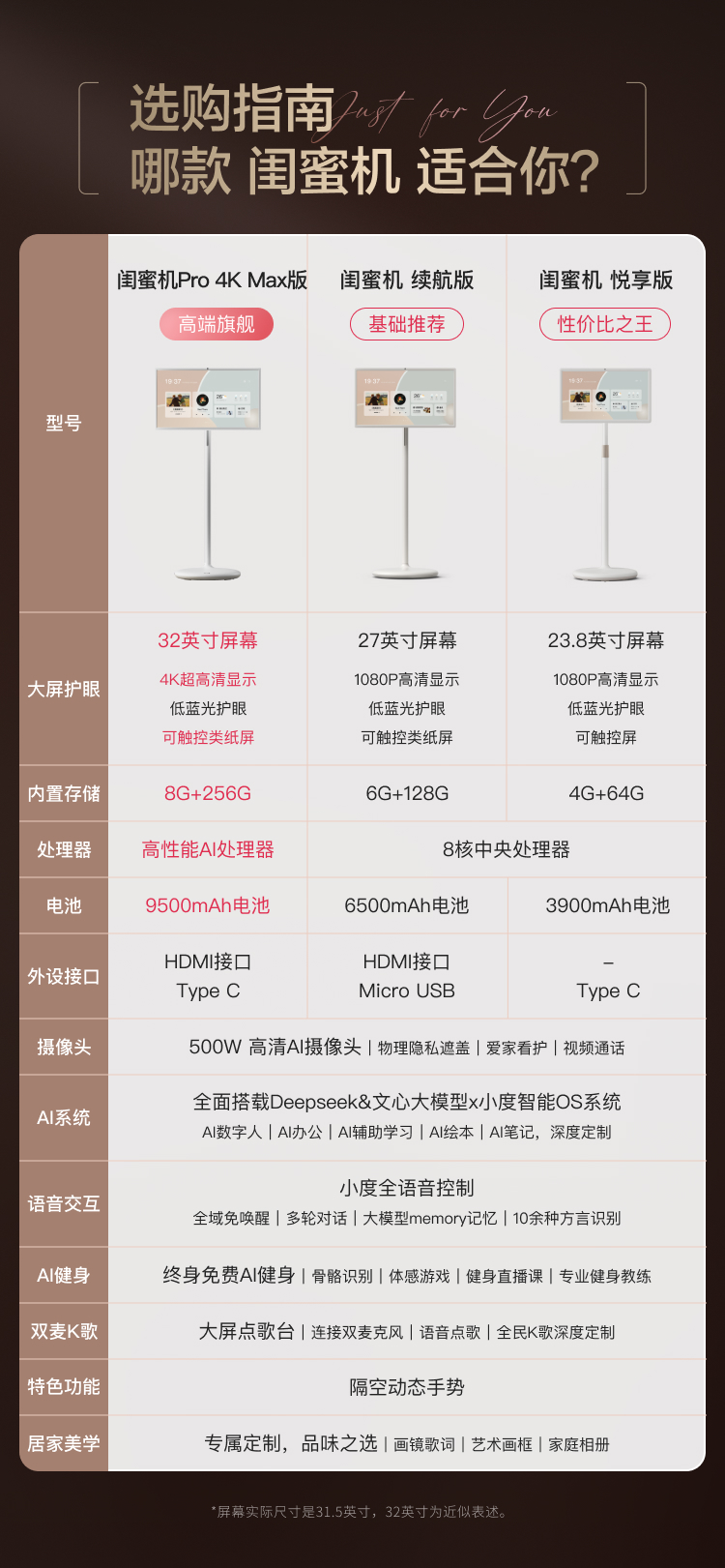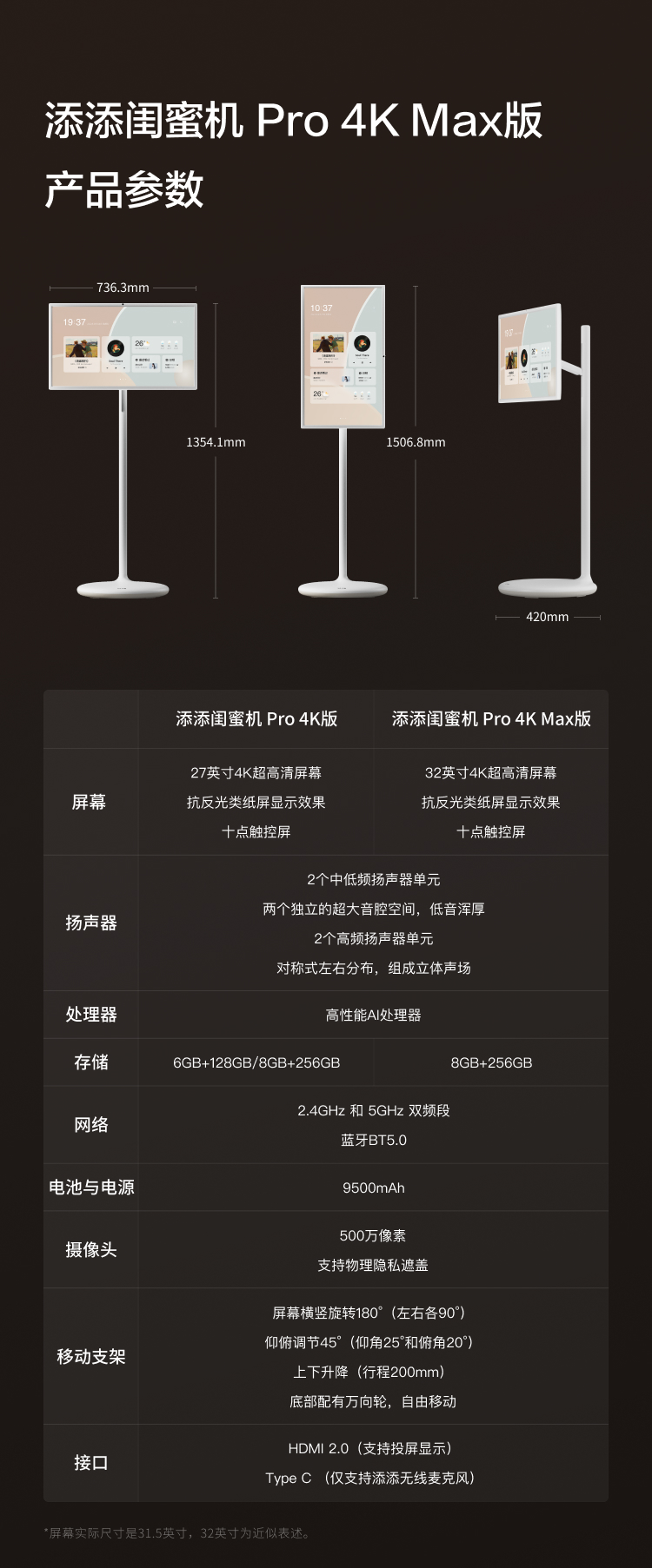 【补全国15%】小度添添闺蜜机32英寸4KProMax移动电视投屏投影仪