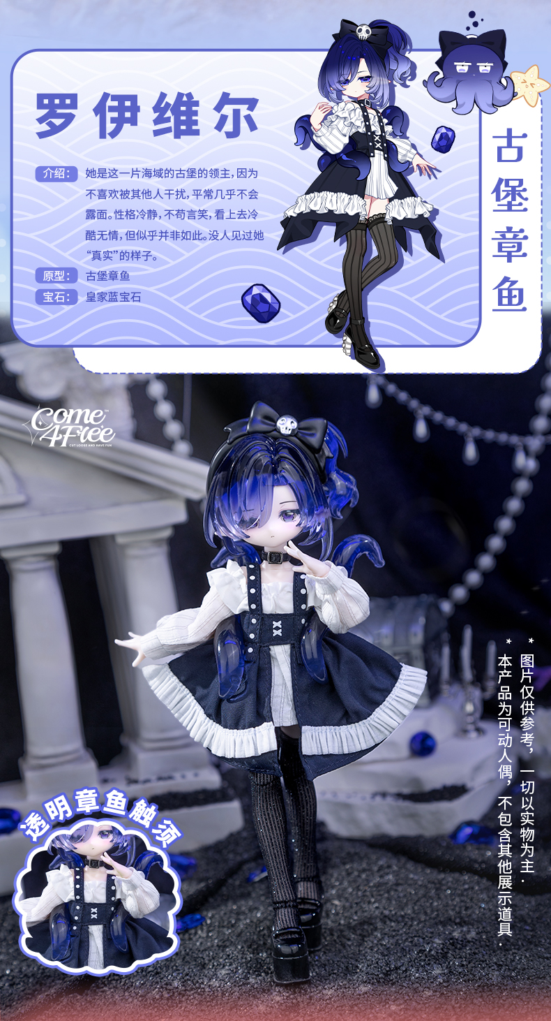 正版COME4FREE米甜海洋宝石二代8分可动人偶盲盒换装BJD娃娃手办
