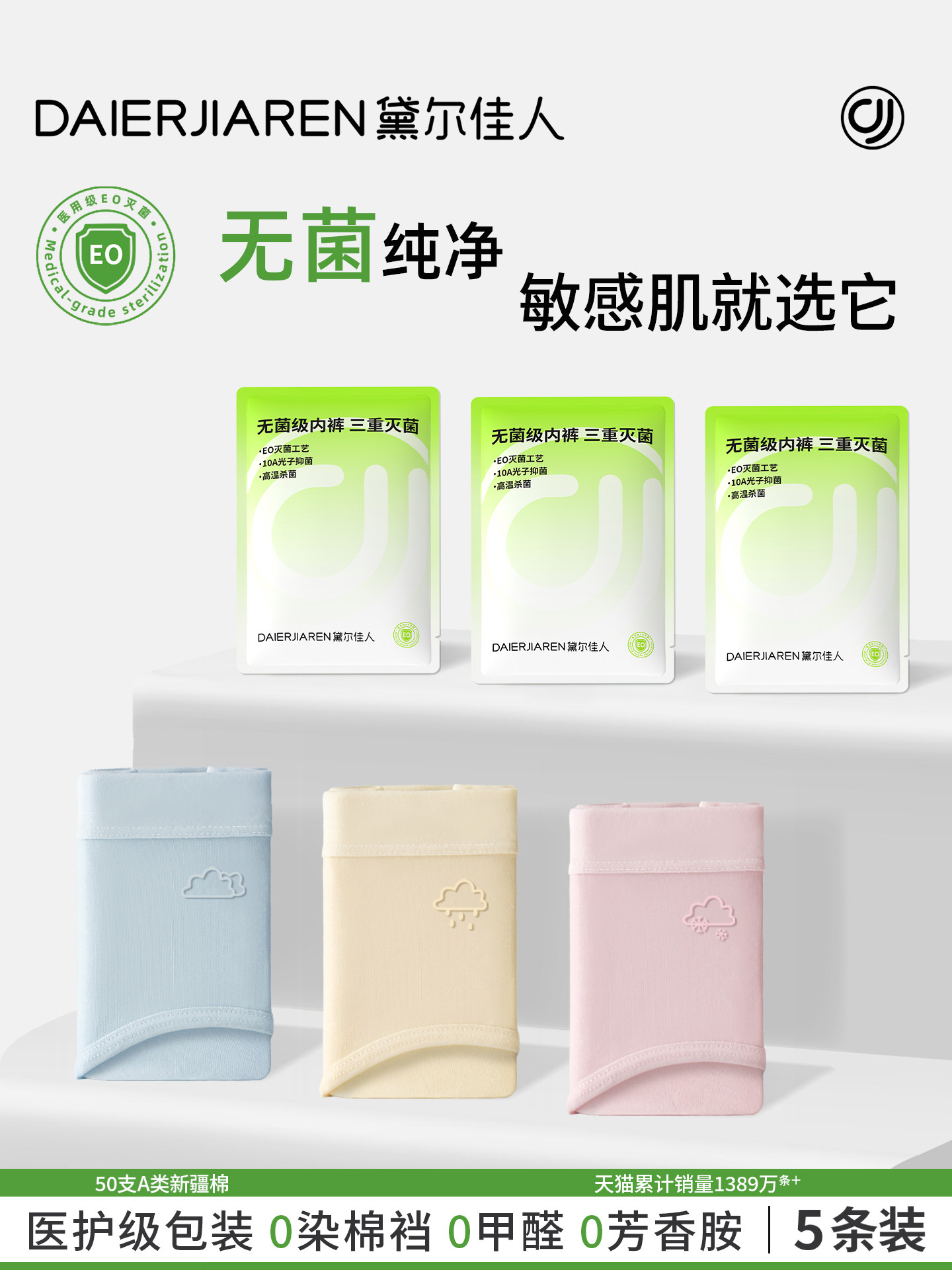 黛尔佳人无菌内裤女士2026新款女生纯棉10A抗菌全棉裆大码三角裤