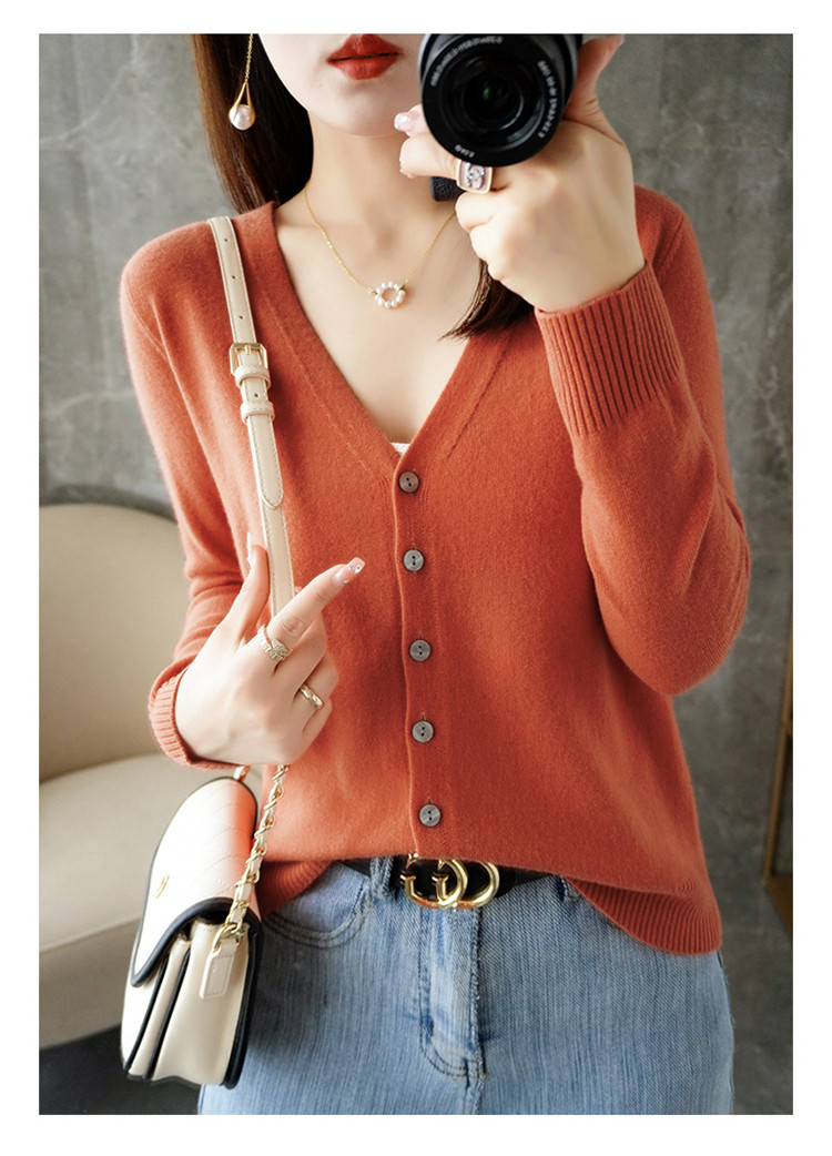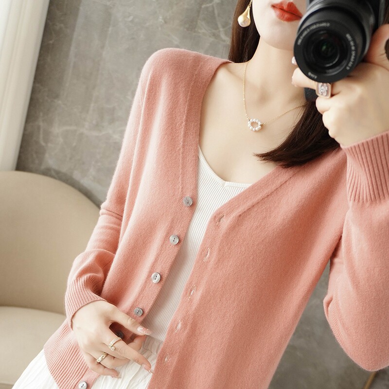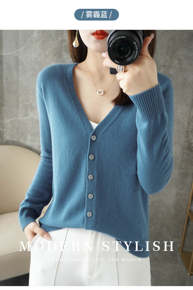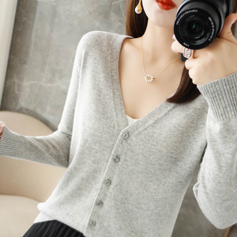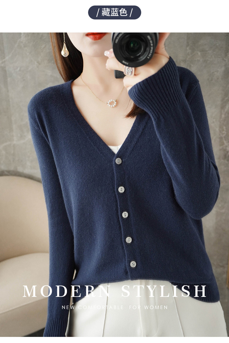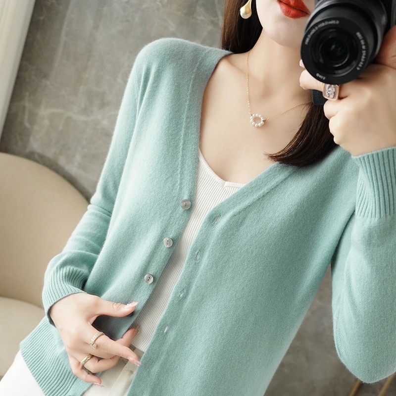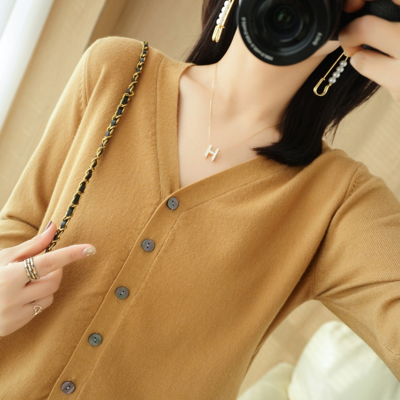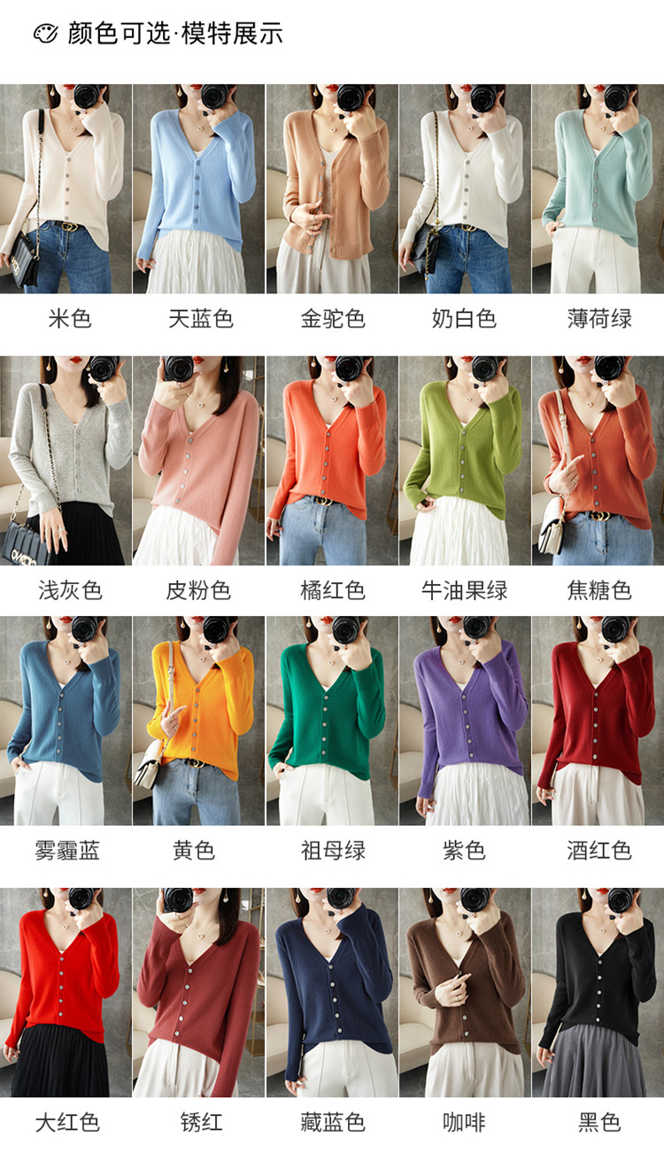 反季清仓春秋新款V领洋气开衫女外搭纯色大码毛衣打底针织衫外搭