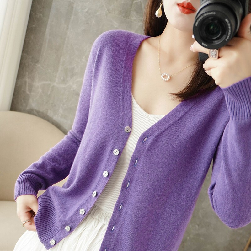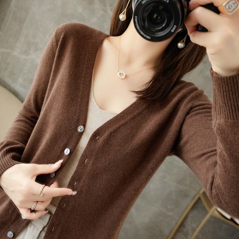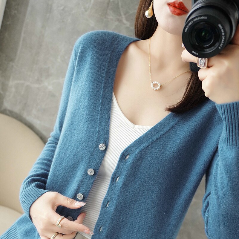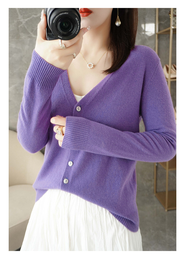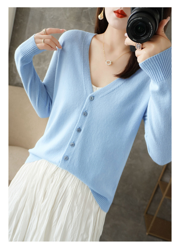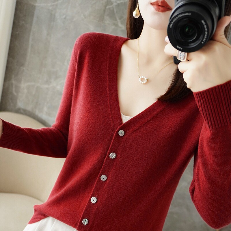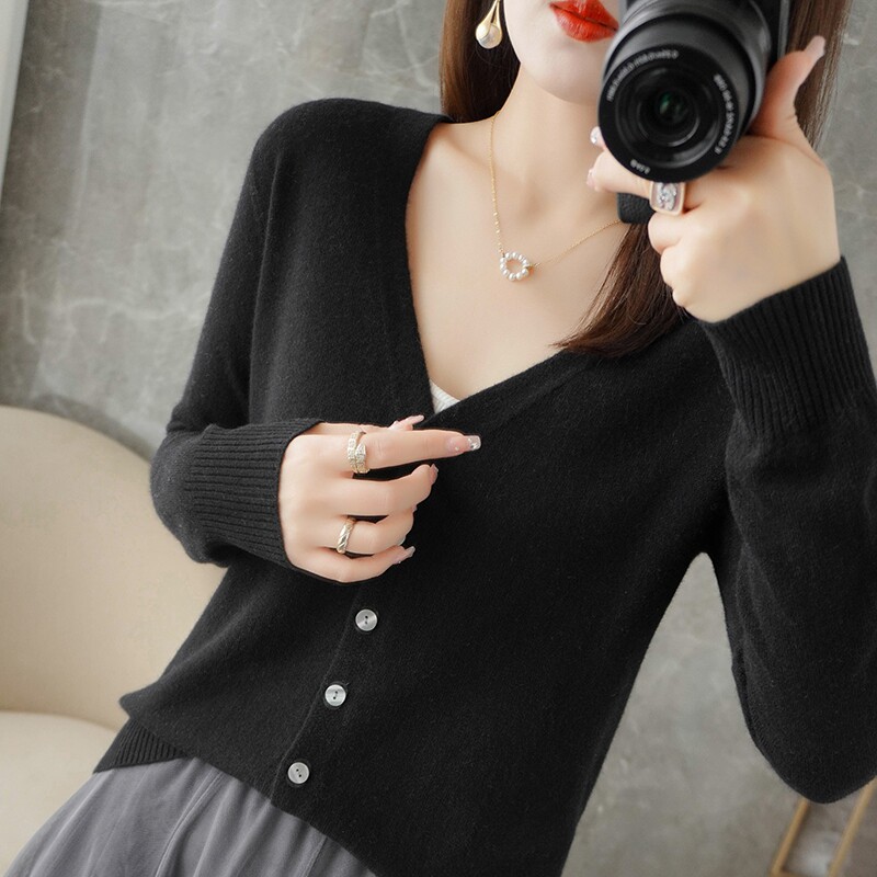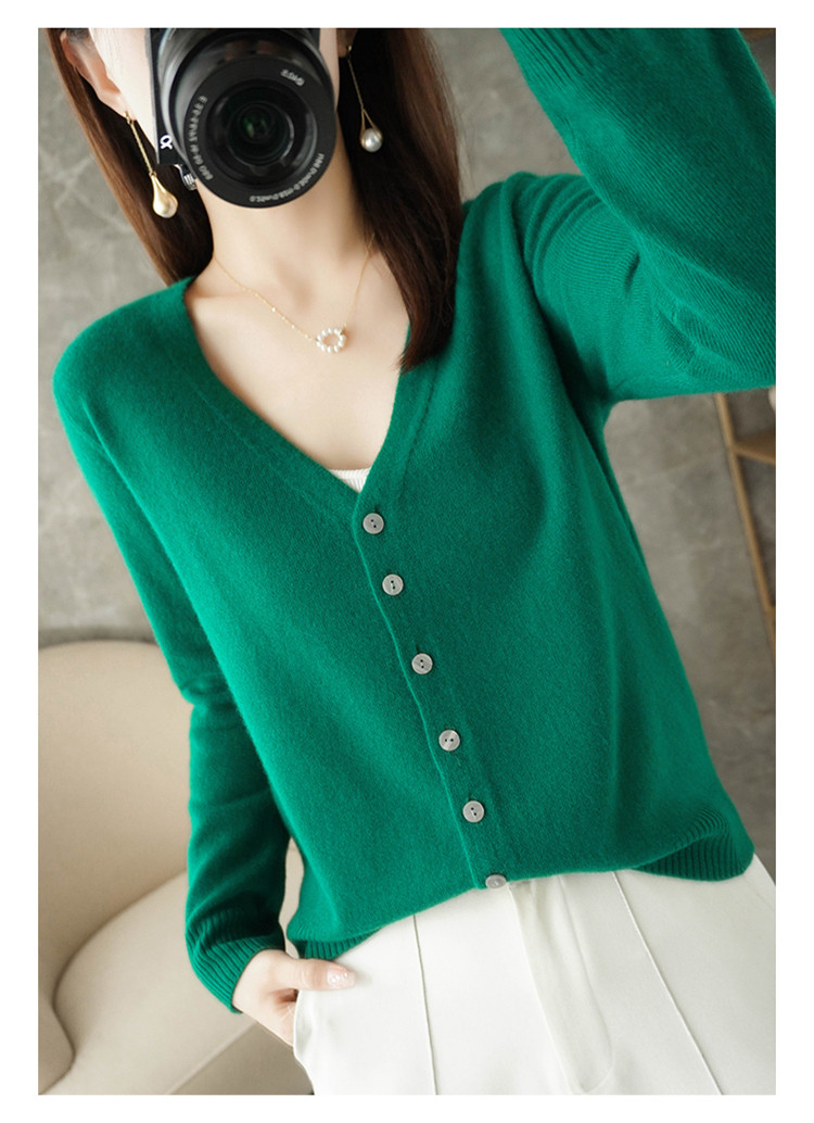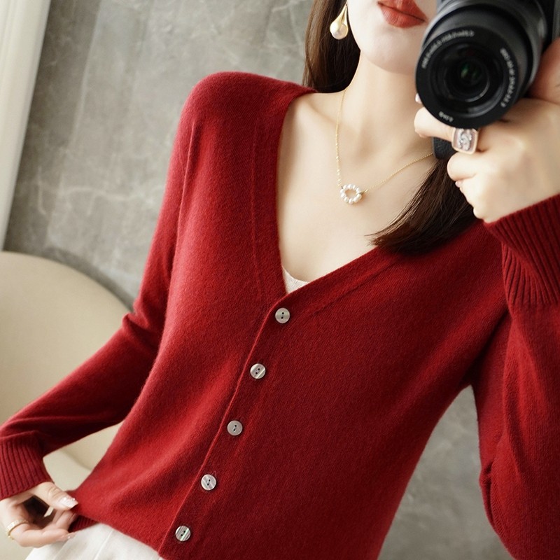 反季清仓春秋新款V领洋气开衫女外搭纯色大码毛衣打底针织衫外搭