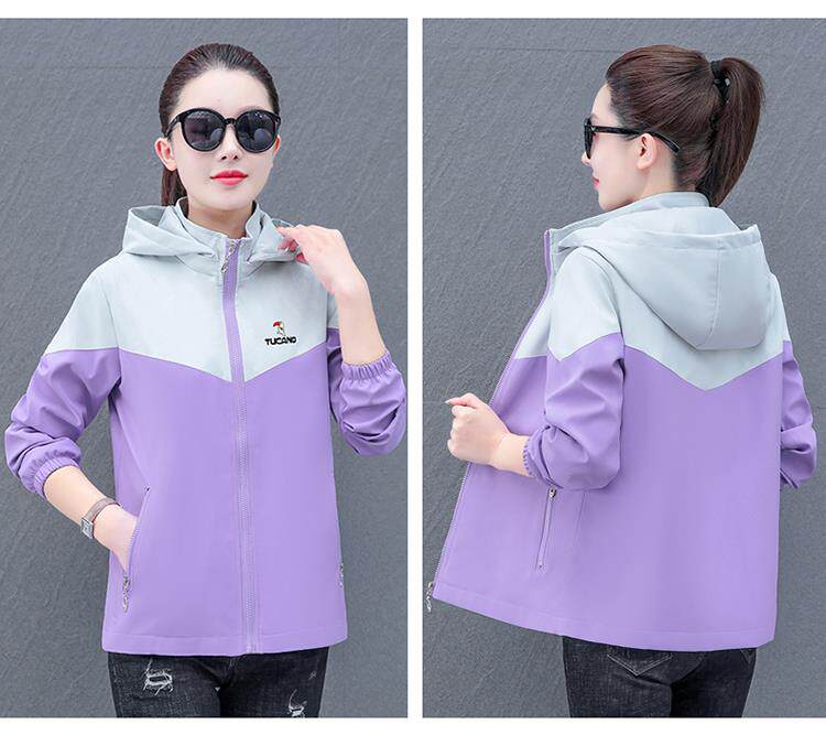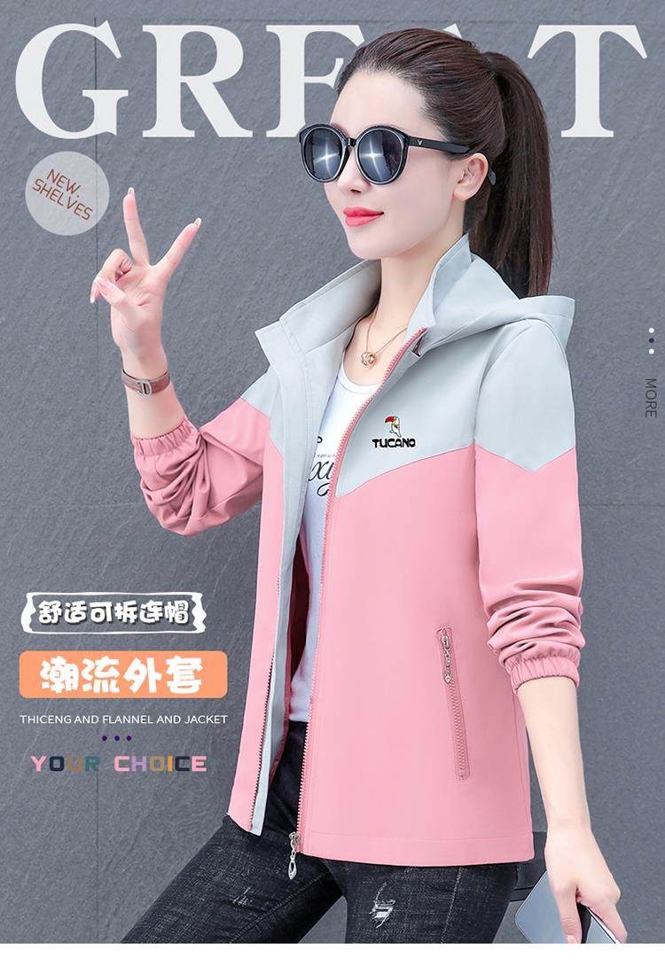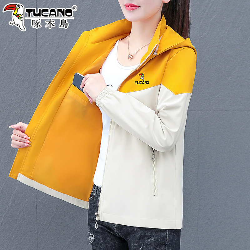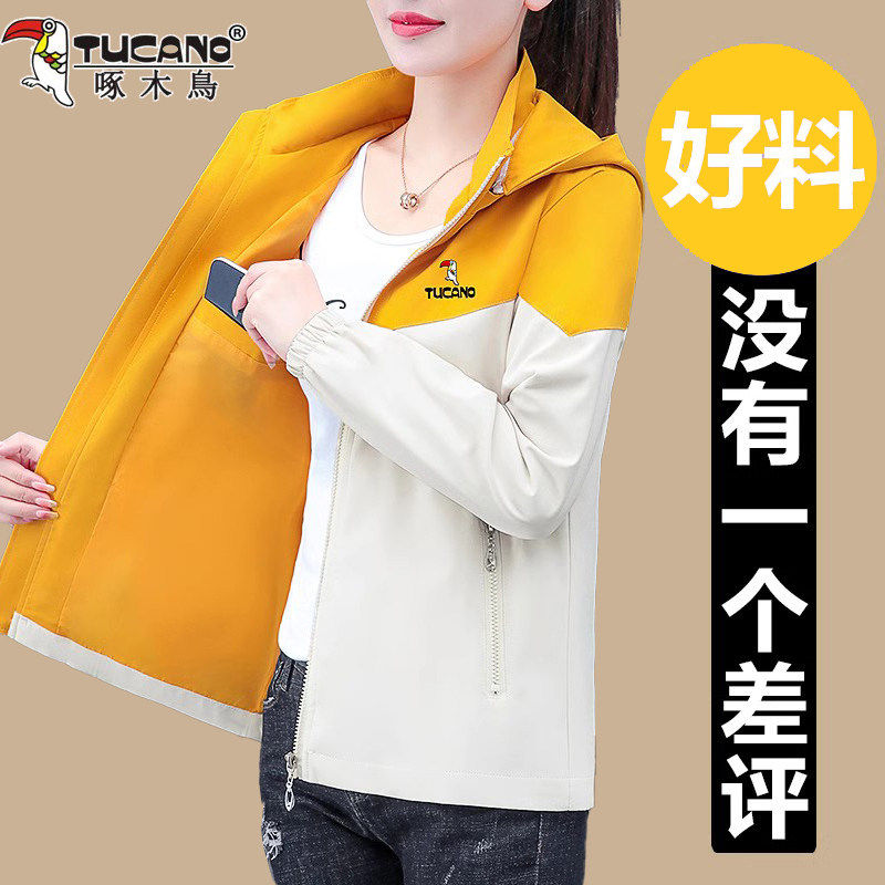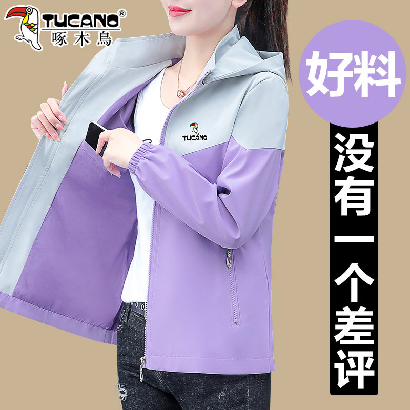 啄木鸟正品休闲短款外套女2025春秋款外穿女装上衣拼接冲锋衣外套