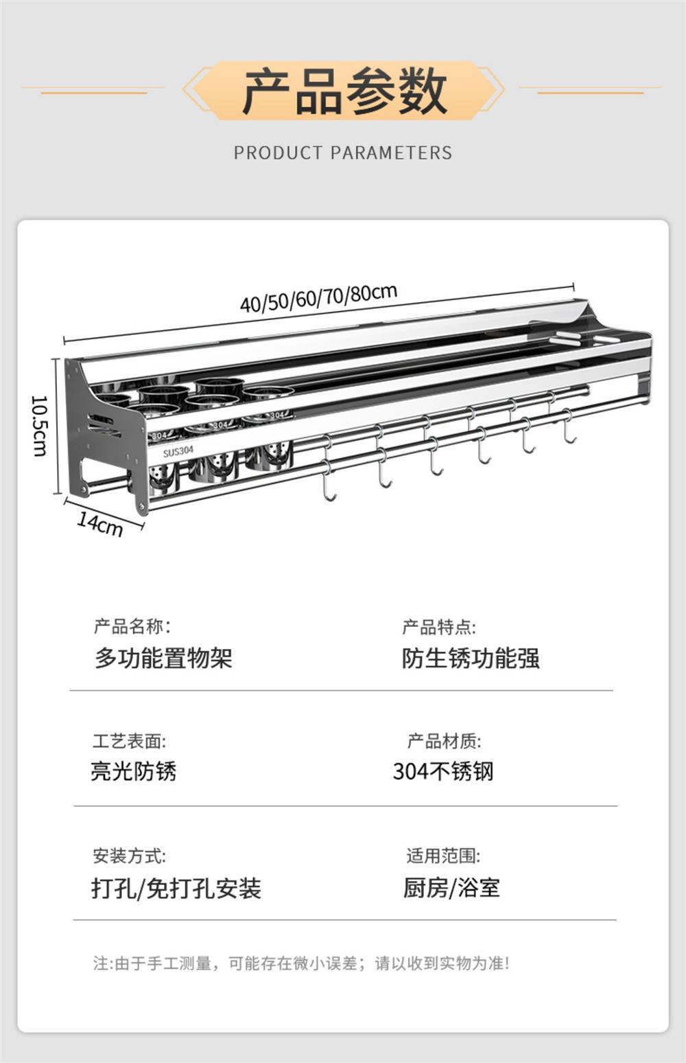 日本304不锈钢调料置物架壁挂式免打孔厨房多功能家用刀架收纳架