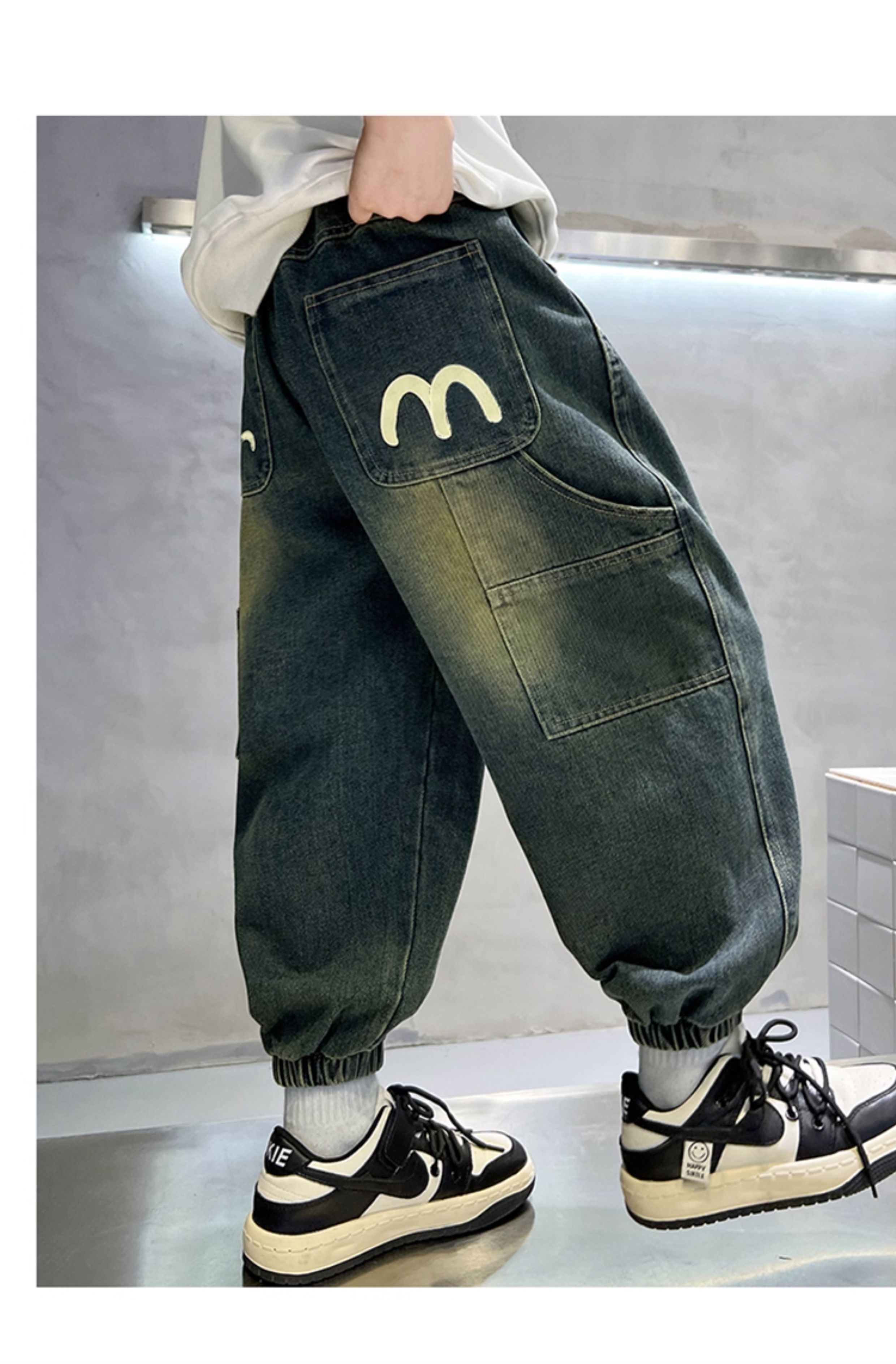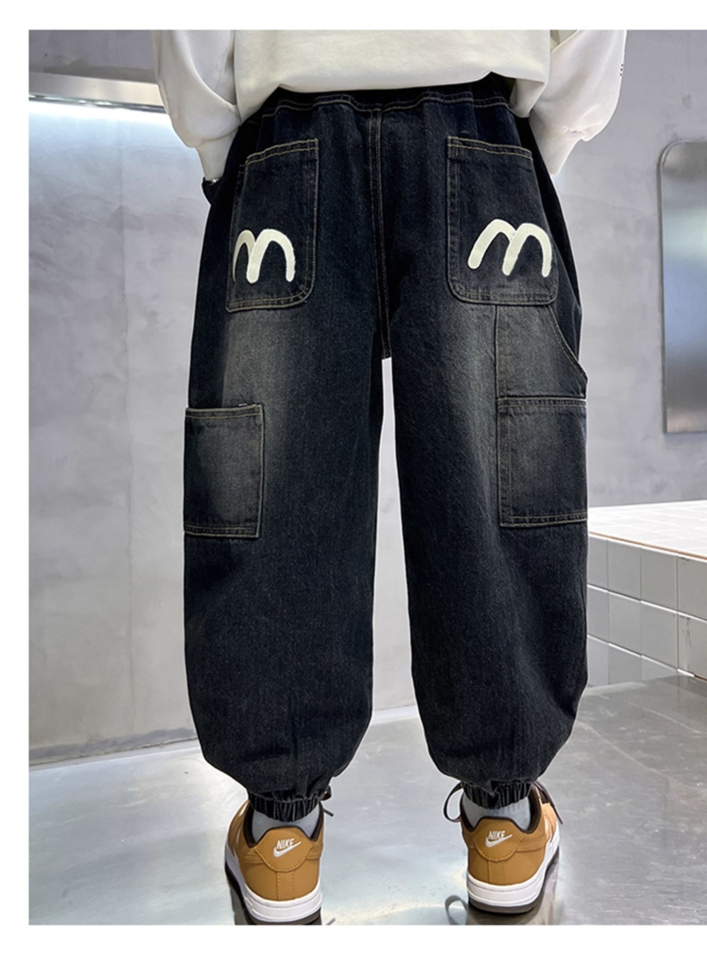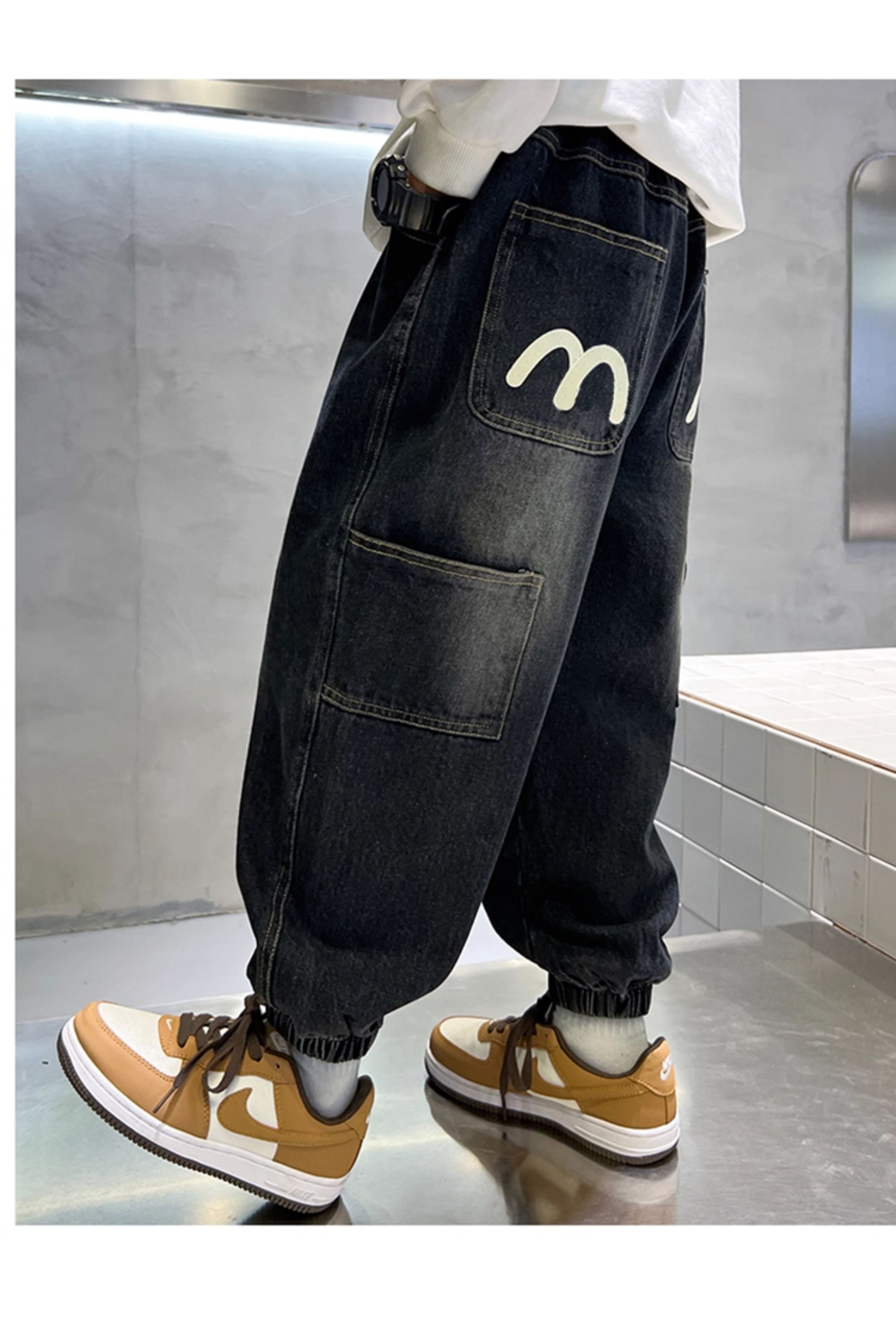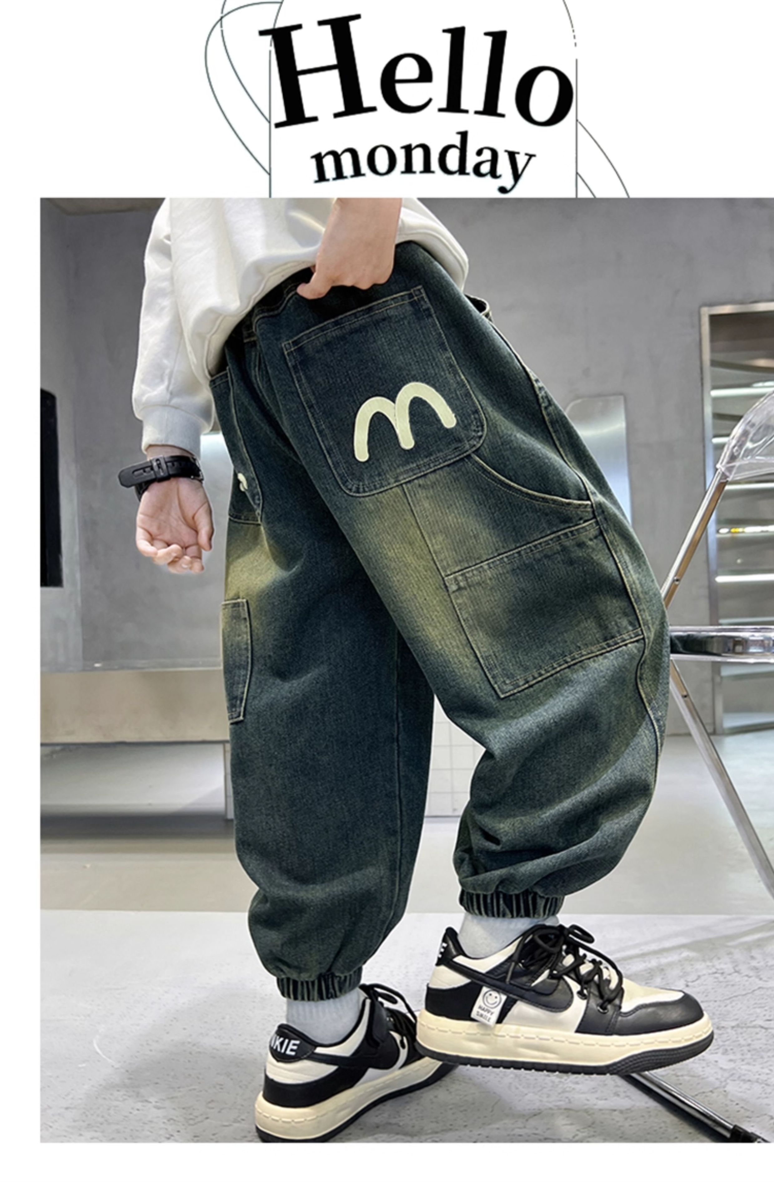男童牛仔裤春秋款2025秋装新款儿童裤子大男孩秋季长裤炸街束脚裤