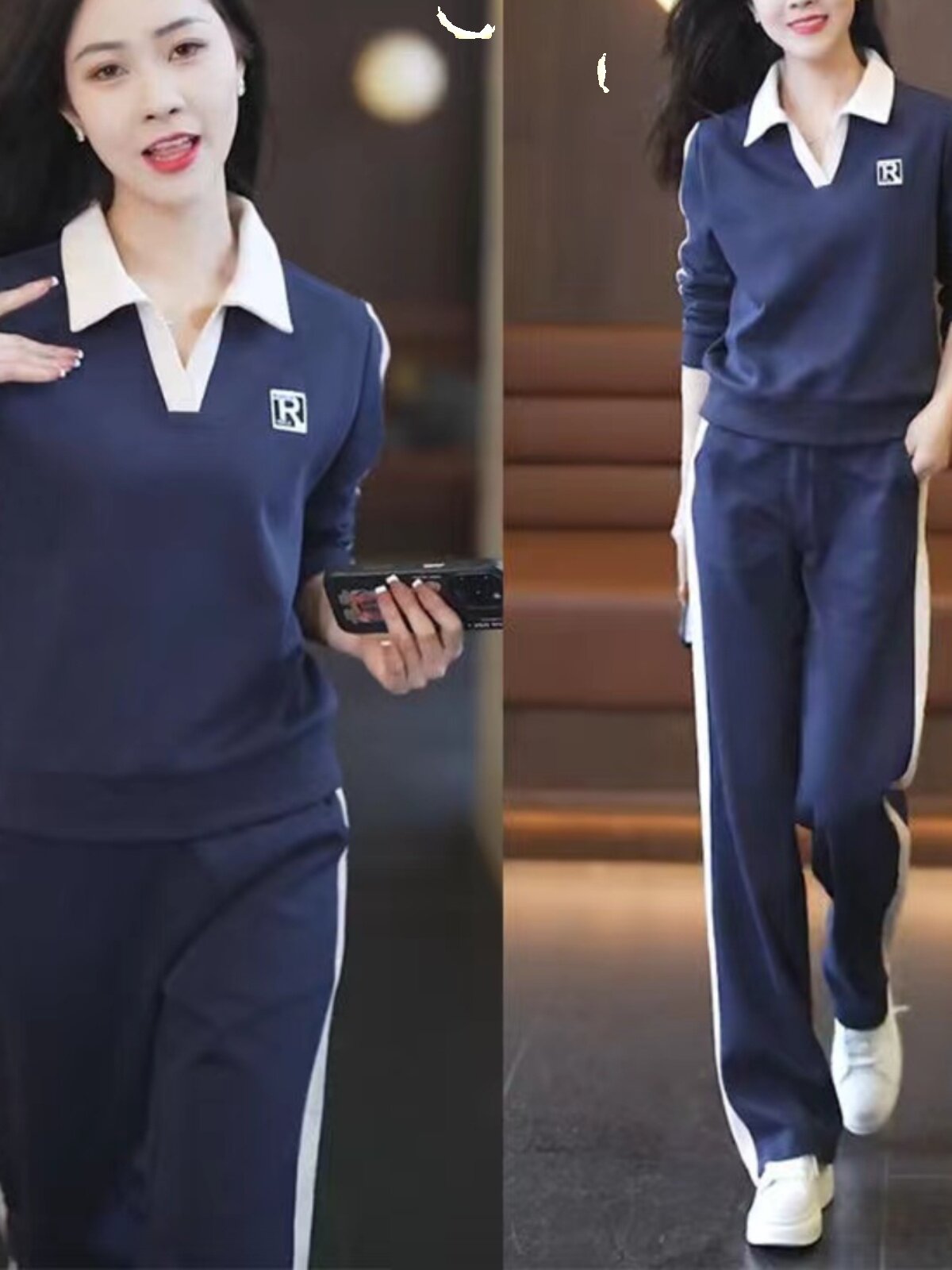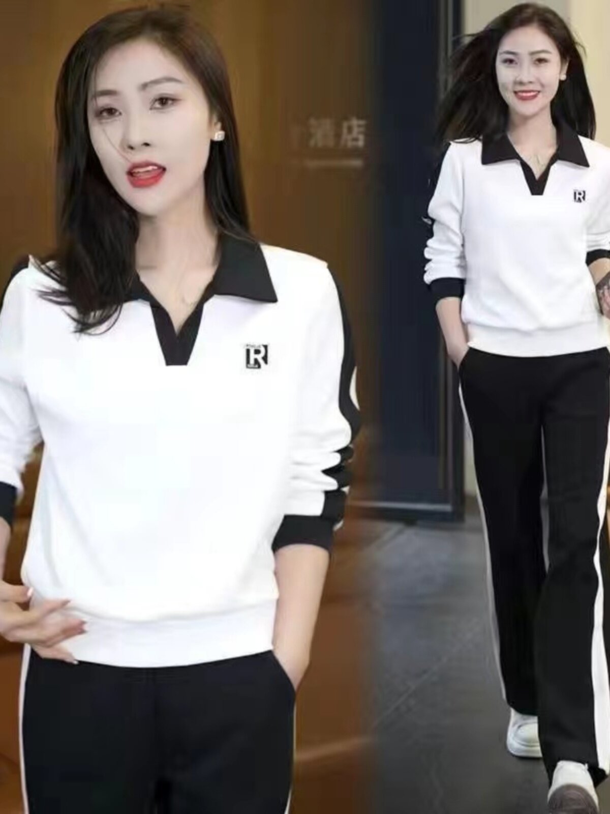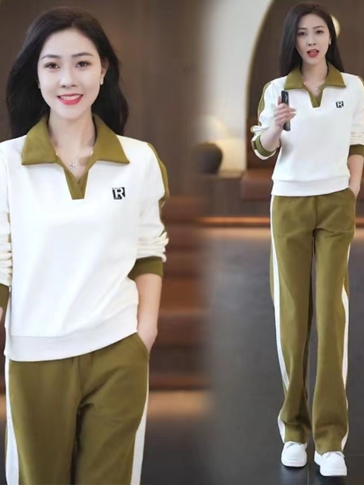 休闲运动服套装女2023秋冬新款时尚减龄洋气翻领卫衣跑步服两件套