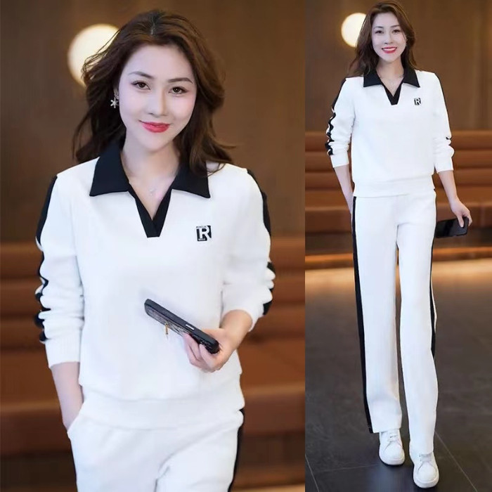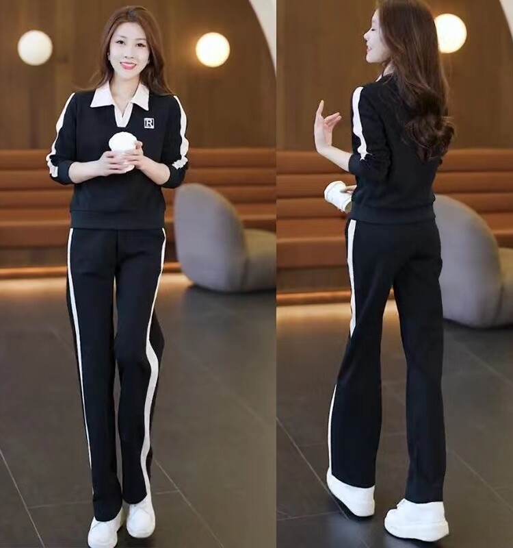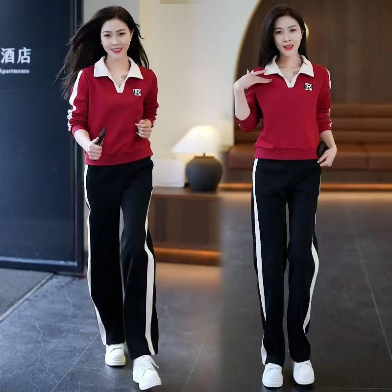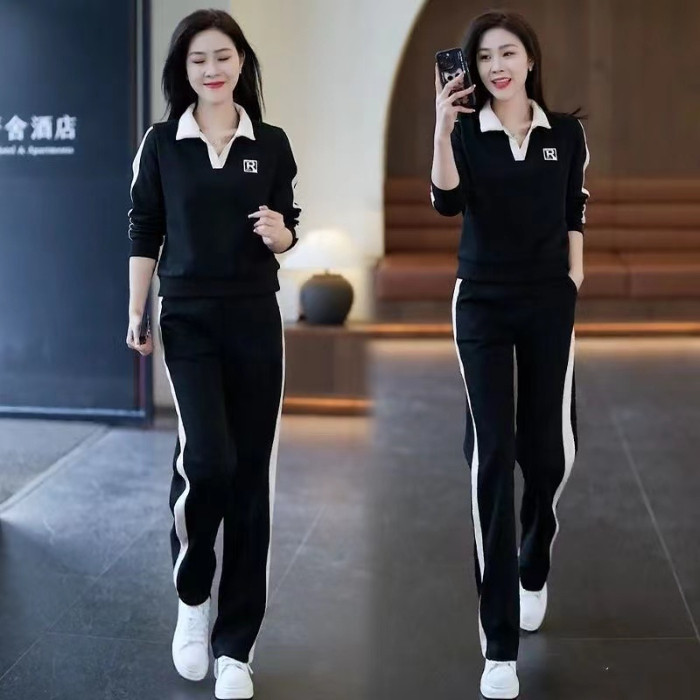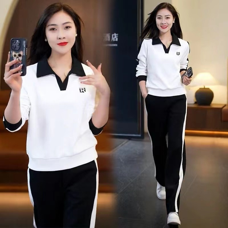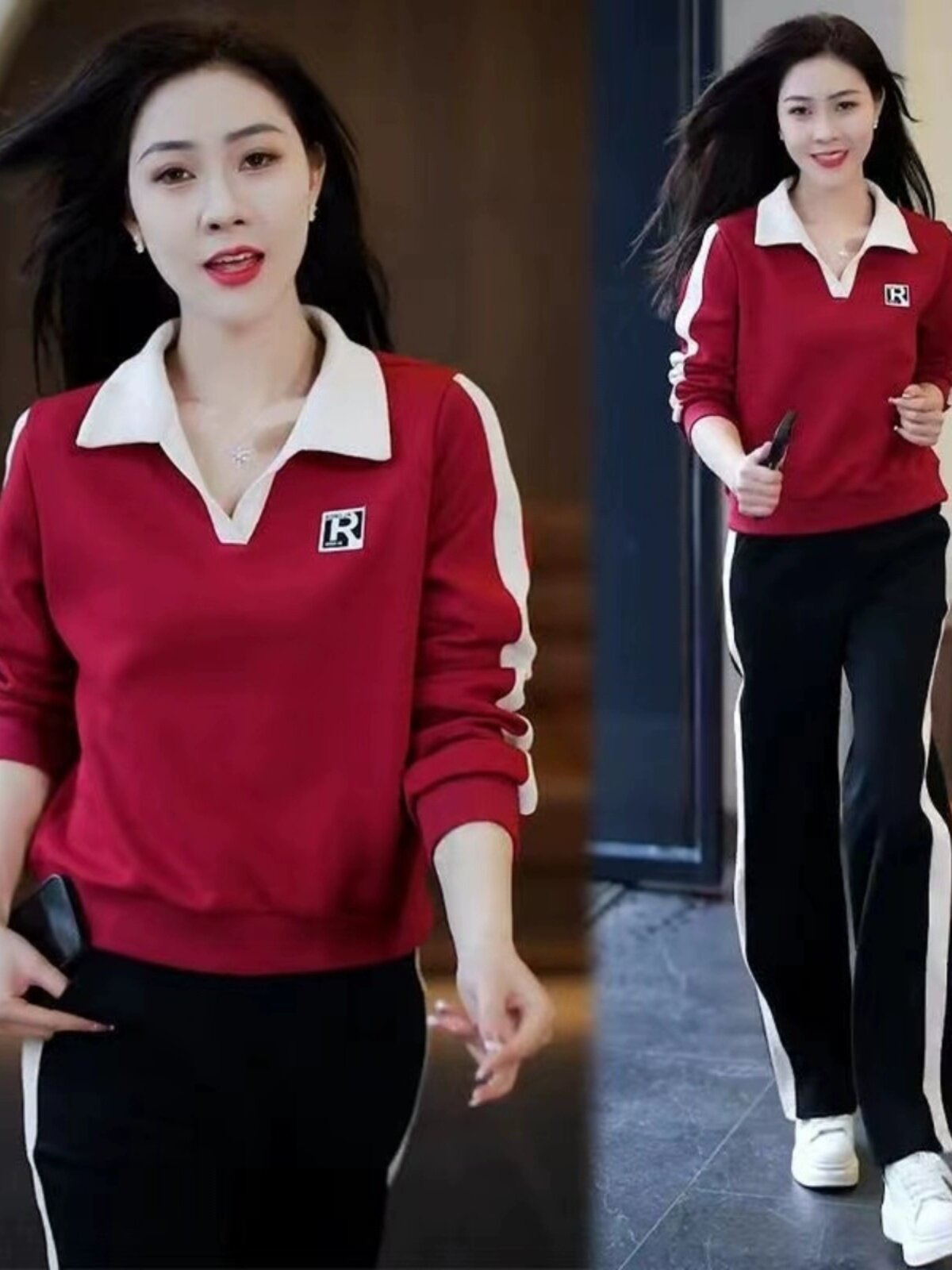 休闲运动服套装女2023秋冬新款时尚减龄洋气翻领卫衣跑步服两件套