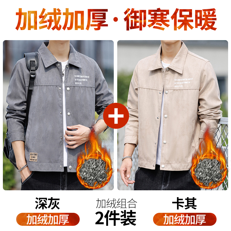 啄木鸟麂皮绒工装夹克外套男秋冬季加绒2025新款宽松休闲衬衫上衣