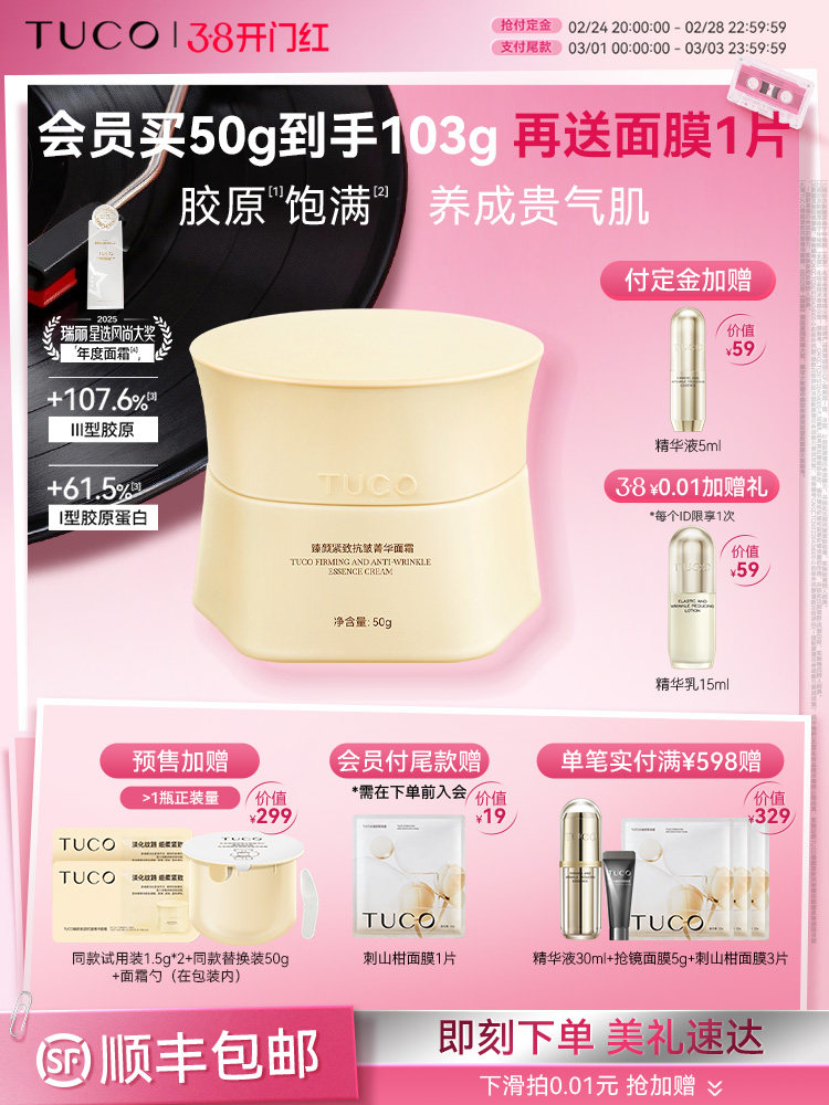 【38女王节加购】TUCO法老面霜紧致抗皱淡化细纹补水滋润保湿抗老