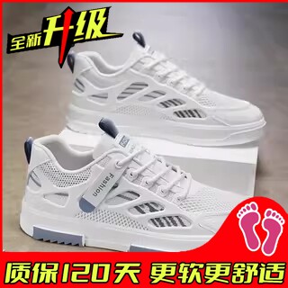 工作男鞋春季网面透气防臭运动休闲板鞋增高软底防滑耐磨小白潮鞋