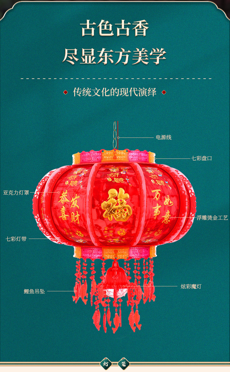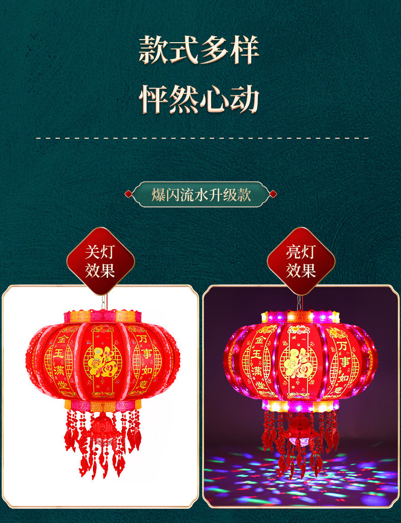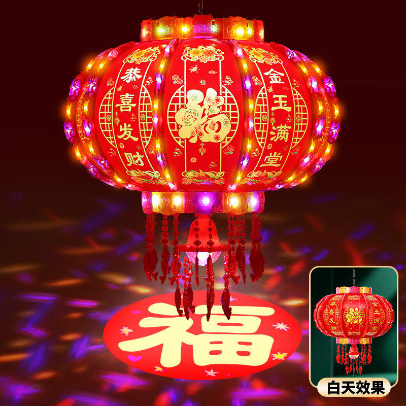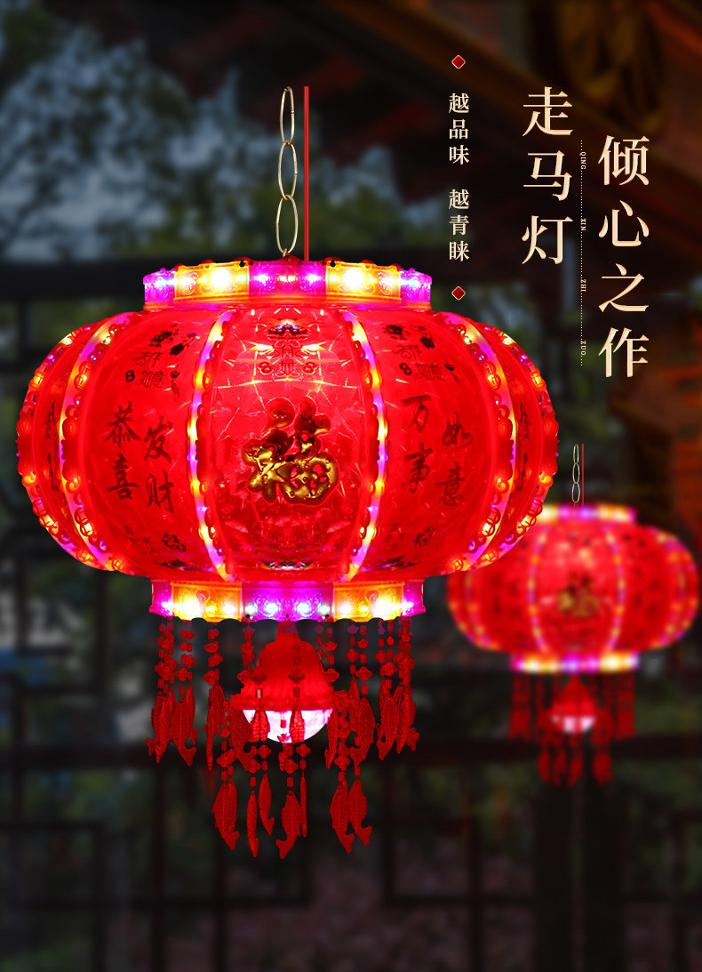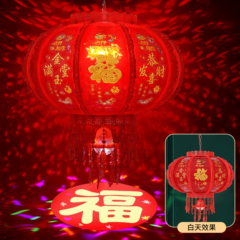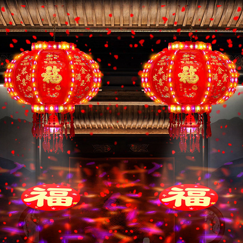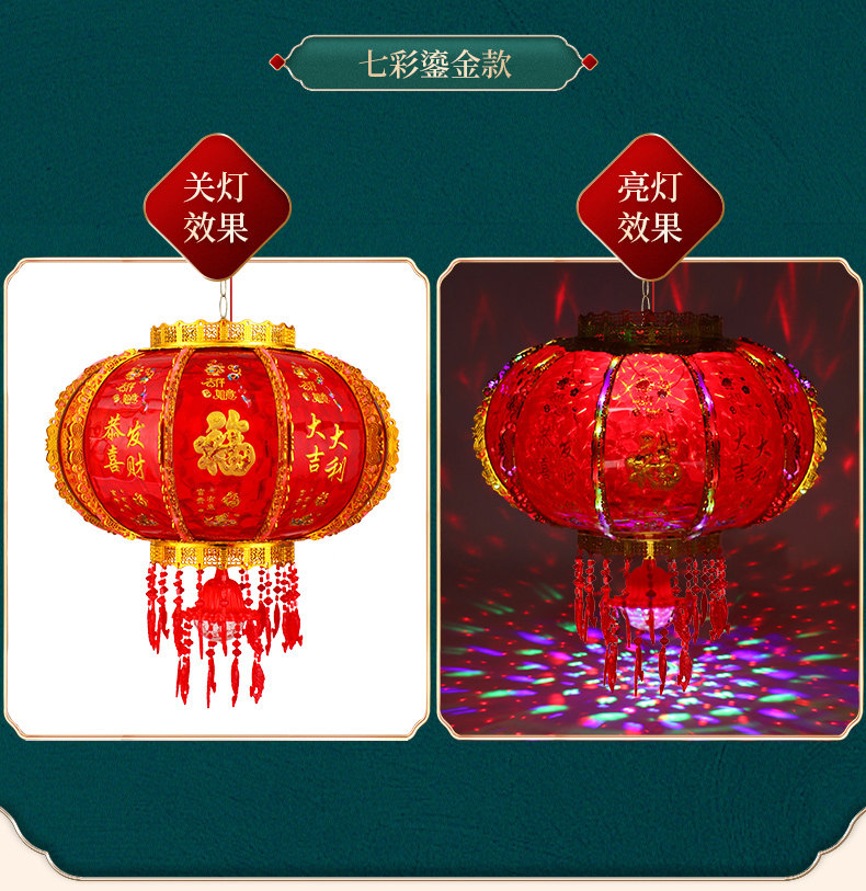 2026新款新年旋转灯笼七彩LED走马灯大门口阳台结婚春节乔迁装饰