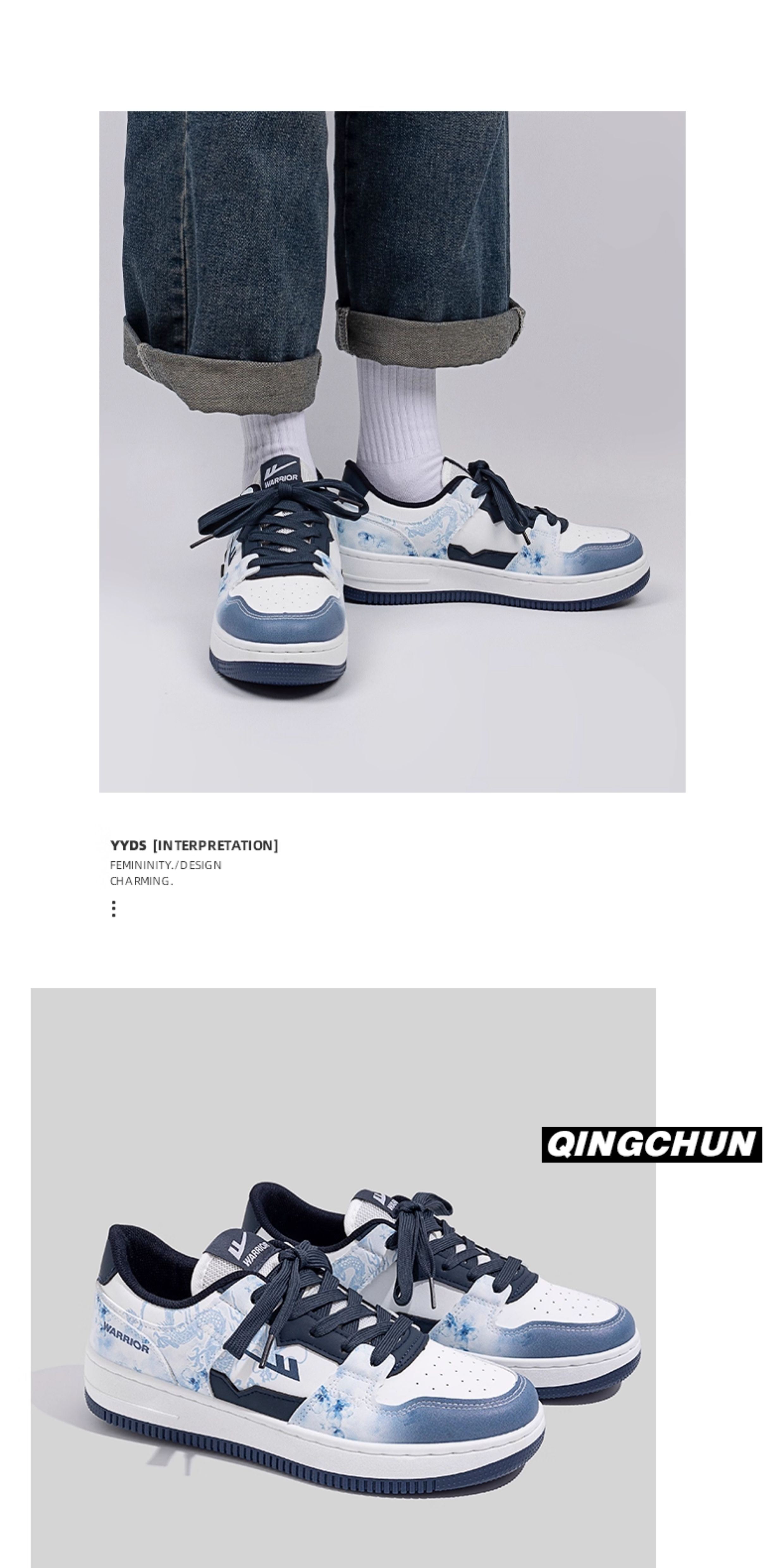 回力男鞋青花瓷板鞋冬季2025新款小众原创百搭休闲小白鞋男款秋季