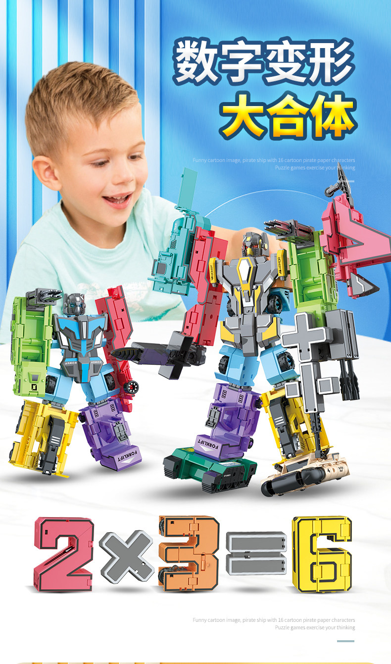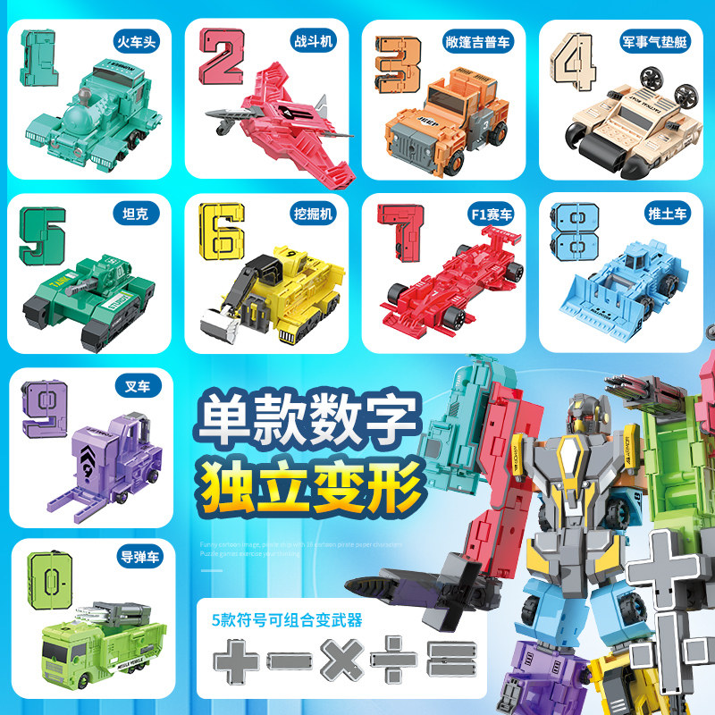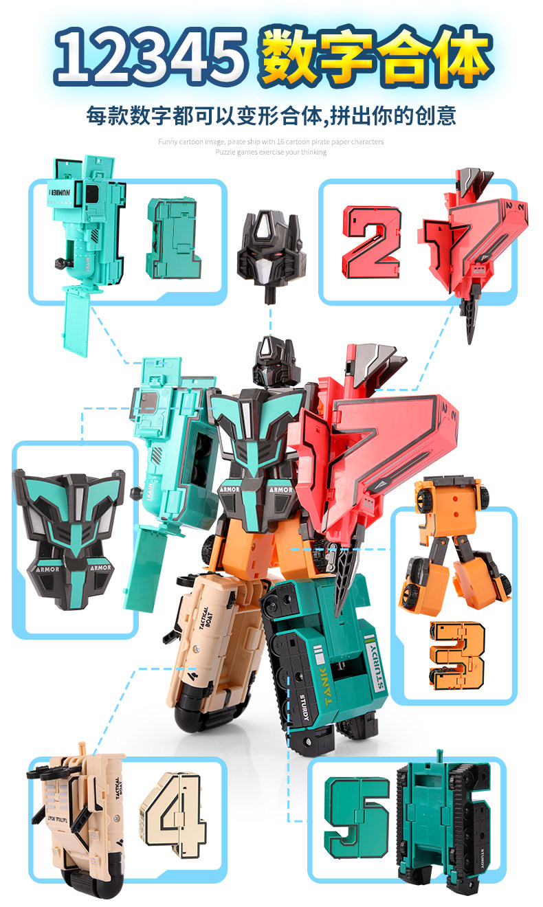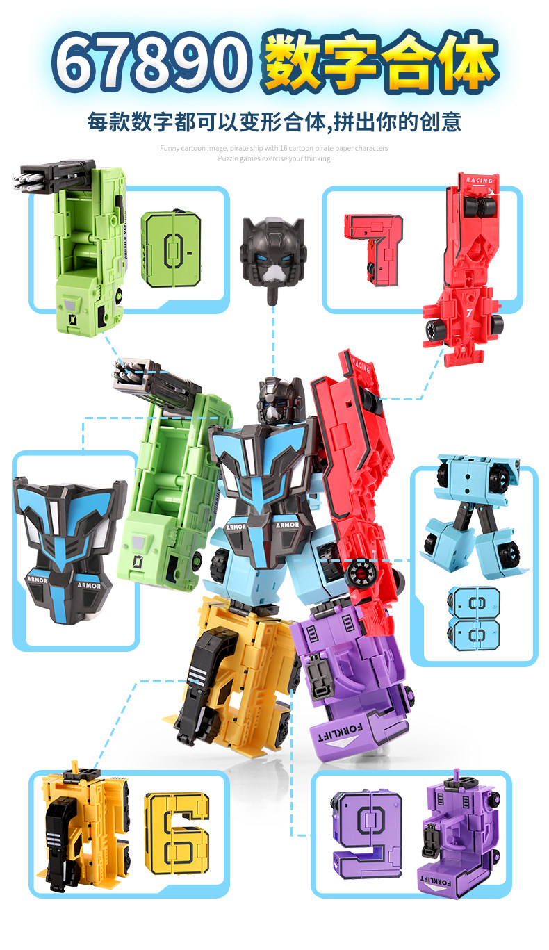 加大儿童数字变形男孩金刚益智拼装汽车玩具积木男童字母机器人