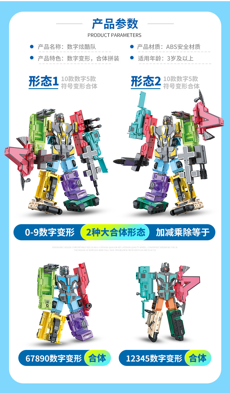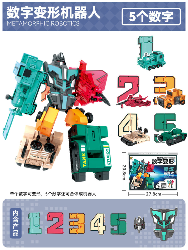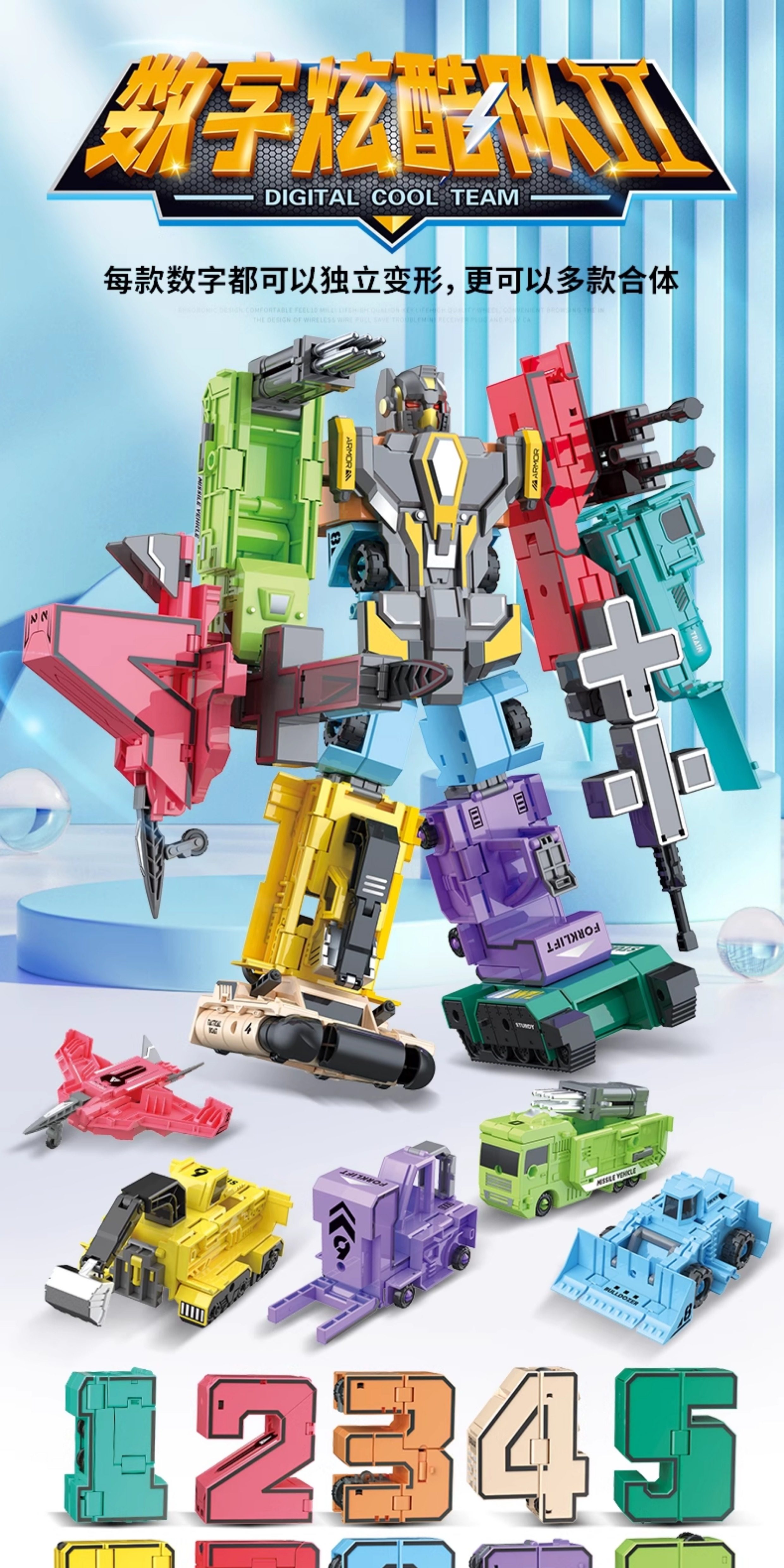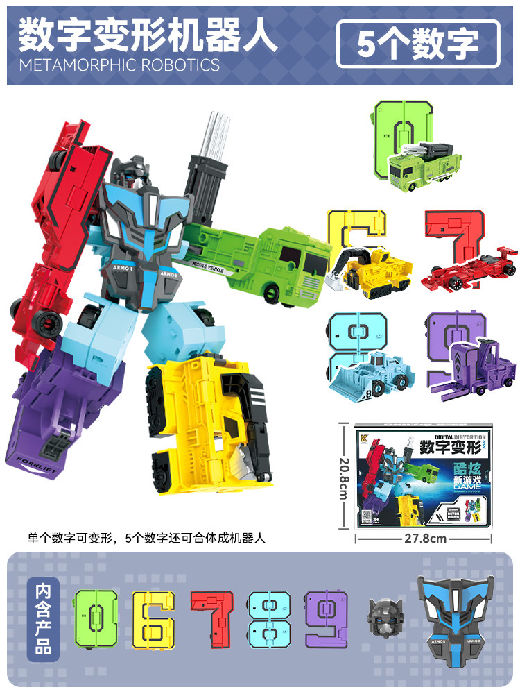 加大儿童数字变形男孩金刚益智拼装汽车玩具积木男童字母机器人
