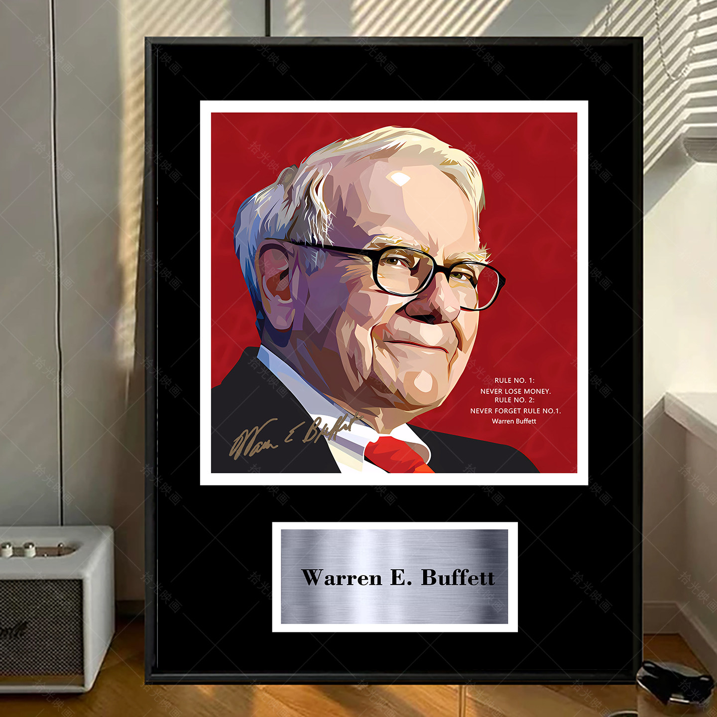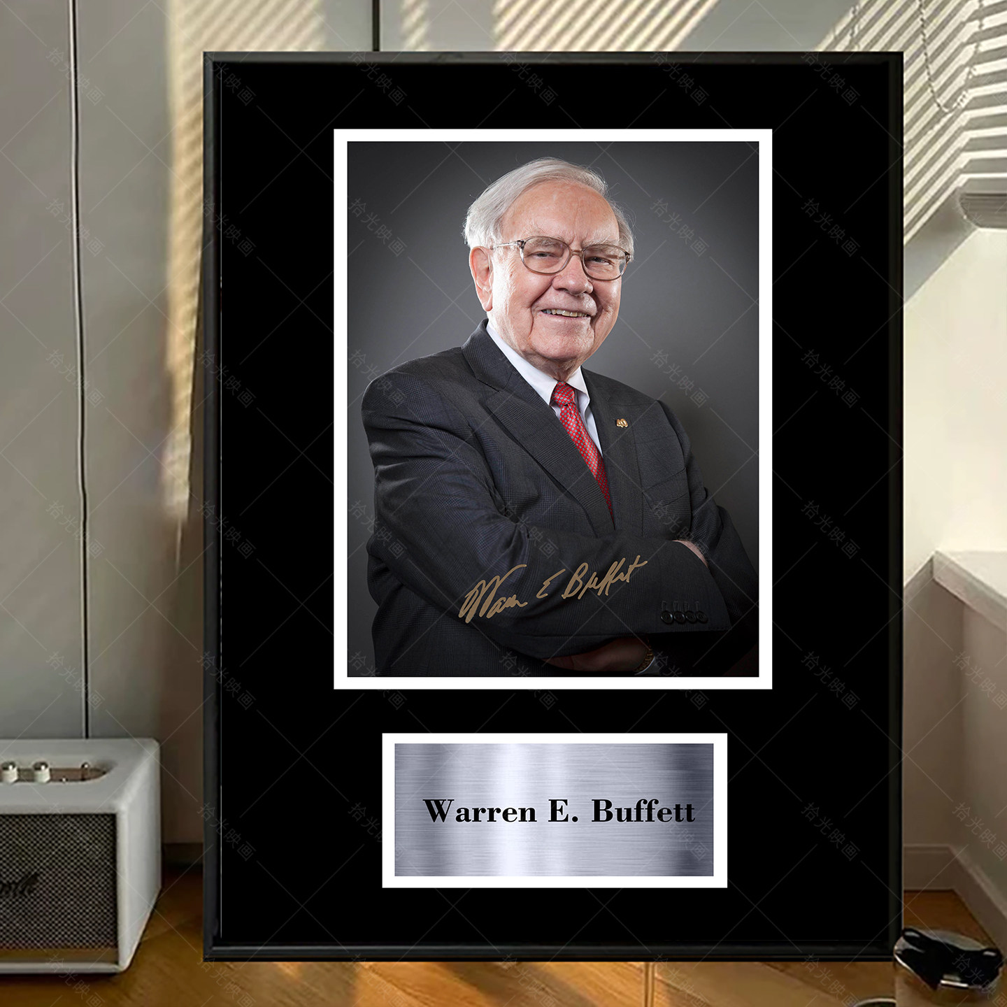 巴菲特Buffett 签名照片复刻相框裱框挂画装饰画海报礼物股神收藏