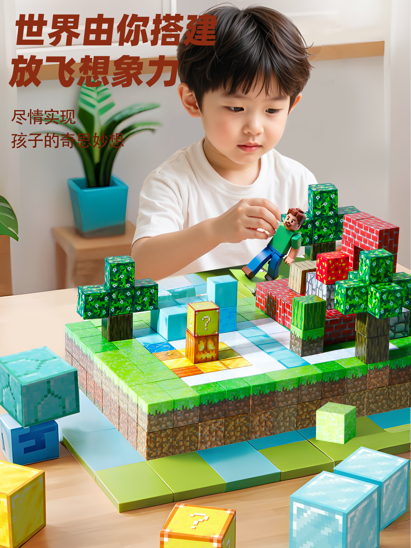 我的磁力世界方块磁铁磁吸铁石积木男童儿童礼物益智拼装男孩玩具
