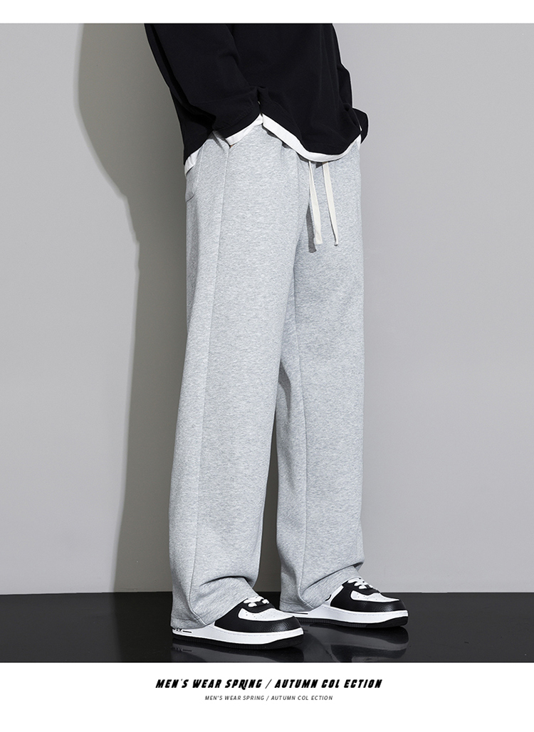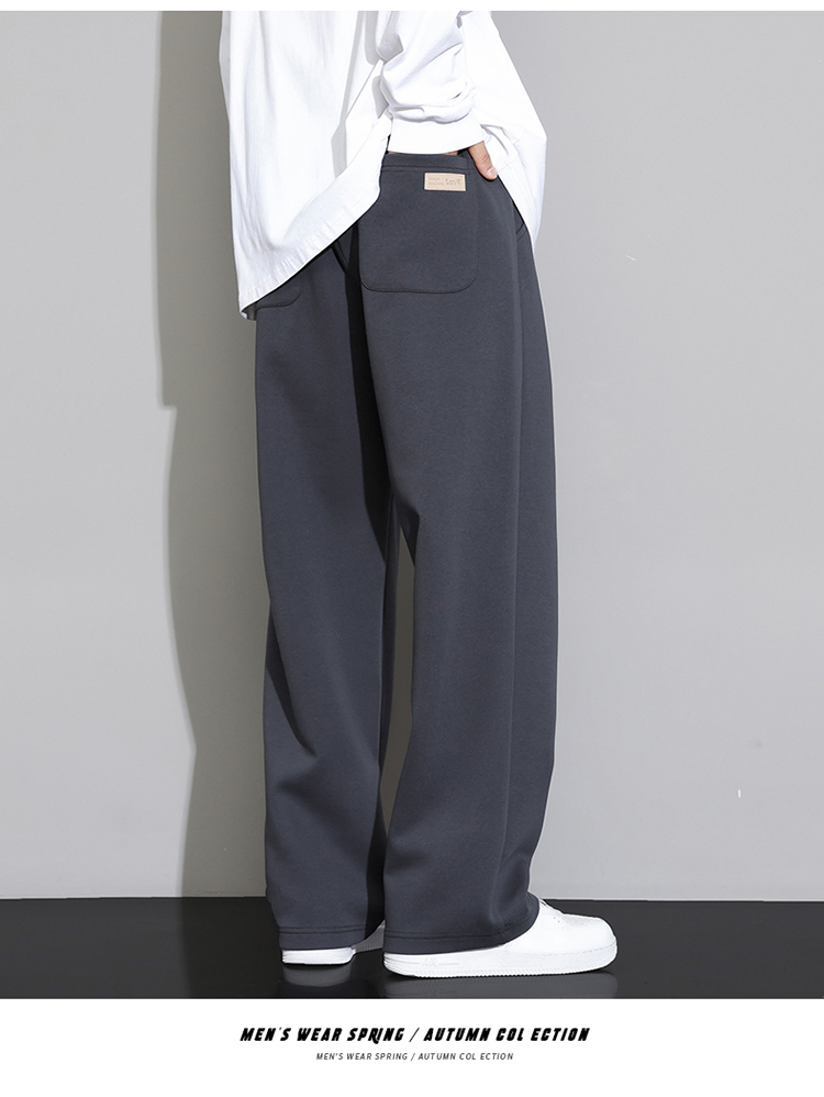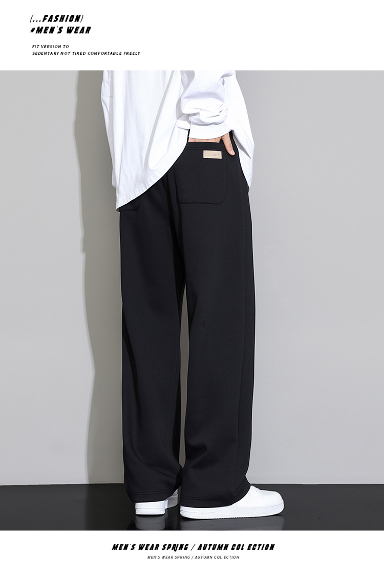 罗蒙休闲裤男生秋冬季宽松直筒2025新款阔腿运动长裤加绒加厚