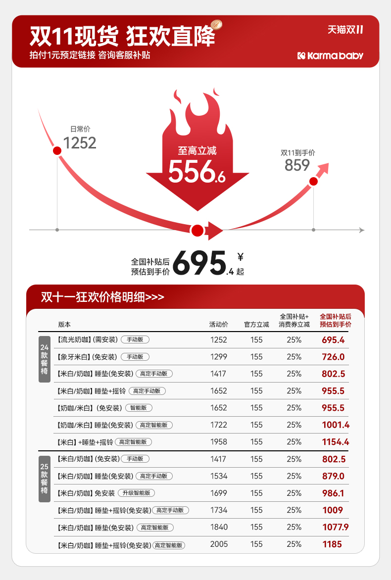 卡曼宝宝餐椅摇椅婴儿餐桌椅家用智能哄睡二合一多功能新生儿童椅