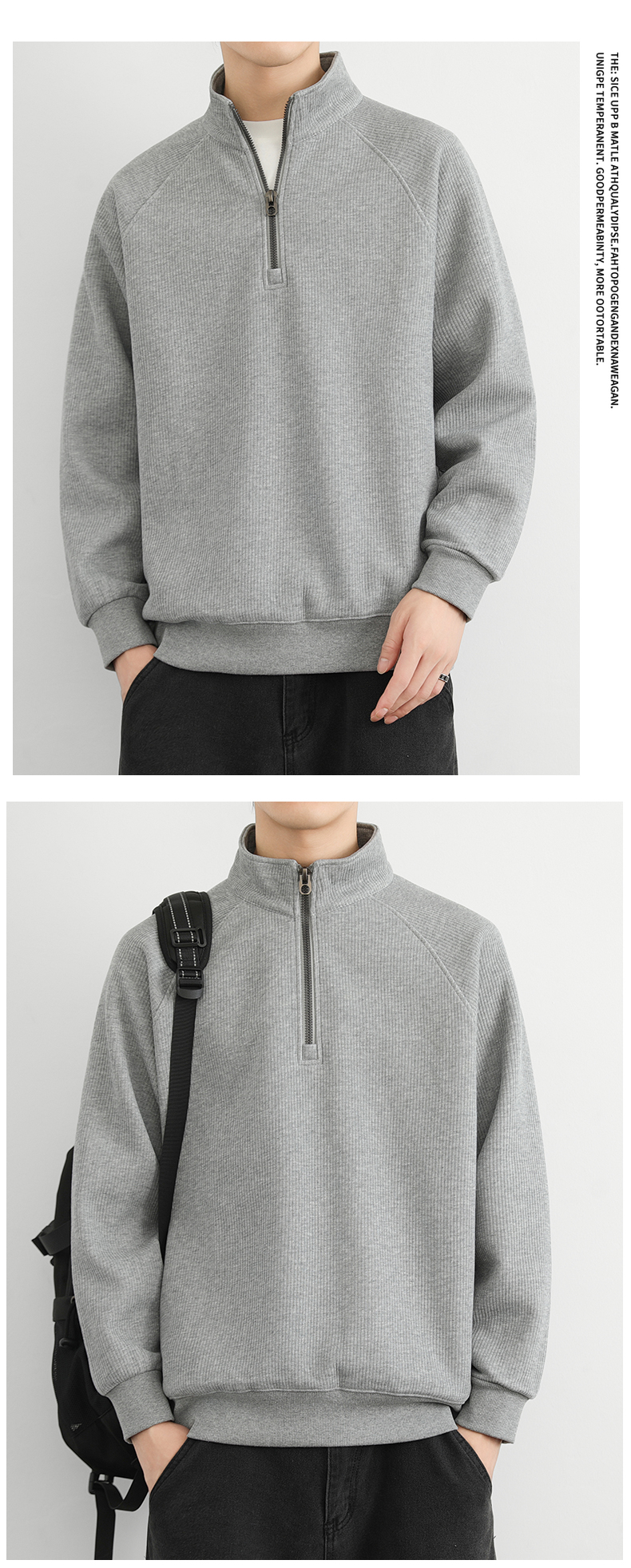 半拉链立领卫衣男款春秋冬季美式复古加绒加厚男士纯色休闲外套男