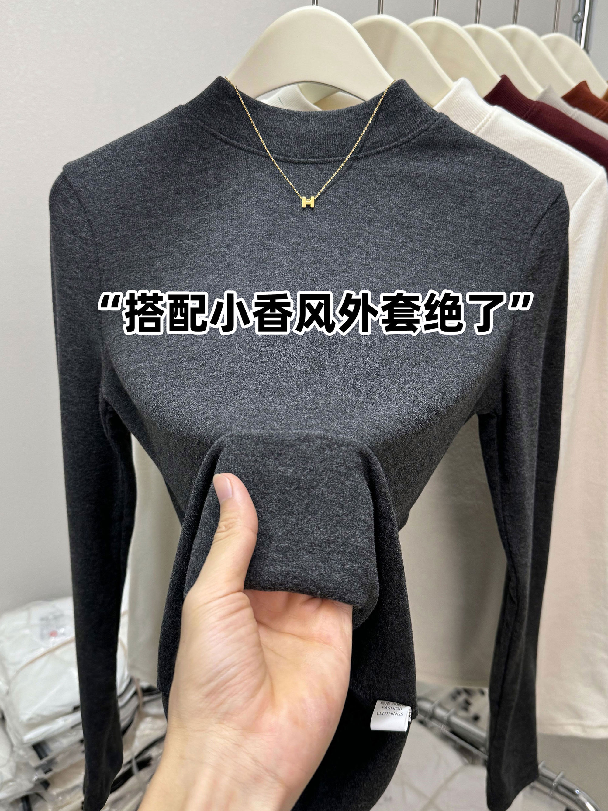 炭黑色长袖磨毛保暖打底衫女秋冬爆款显瘦内搭加绒半高领T恤上衣