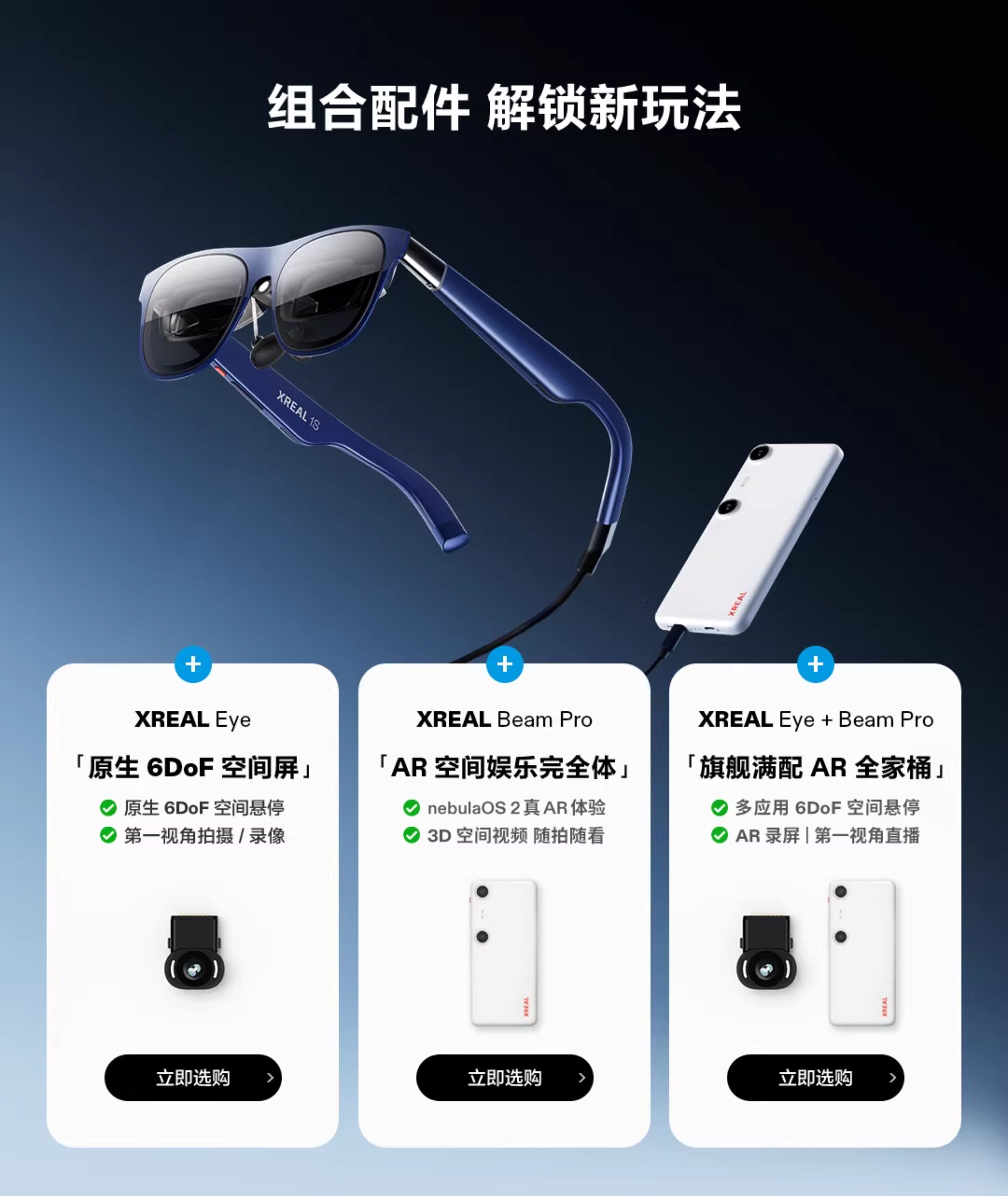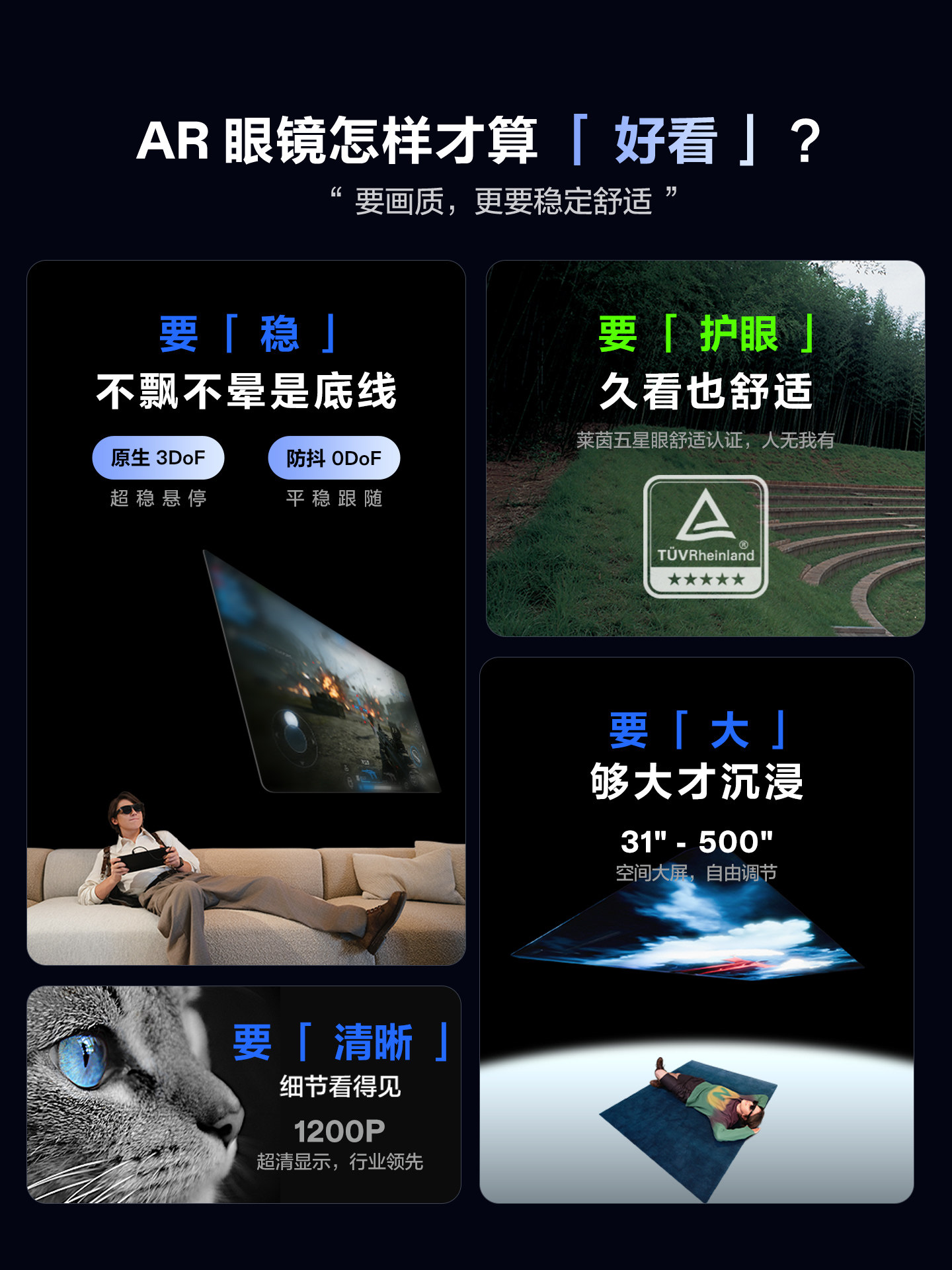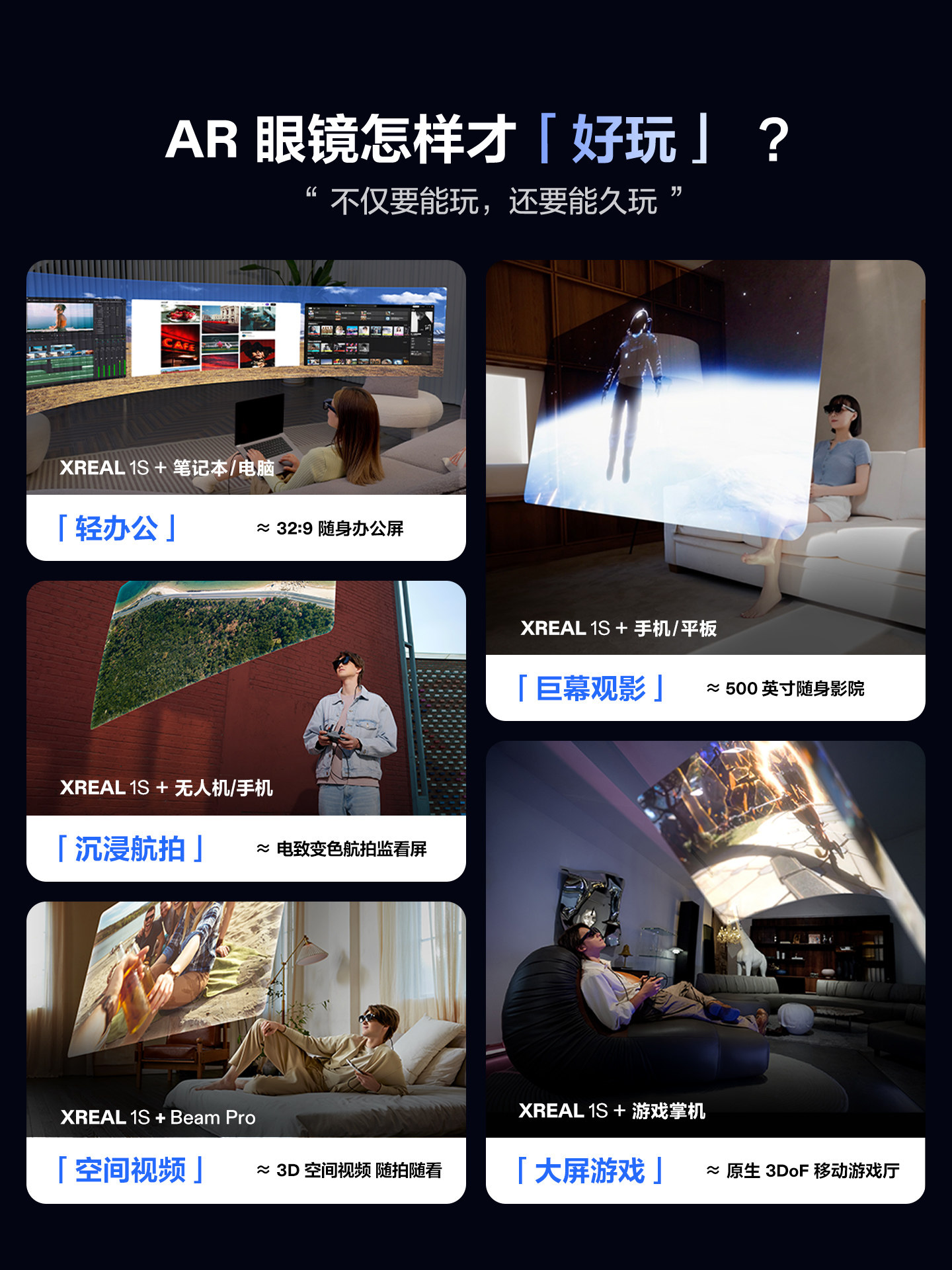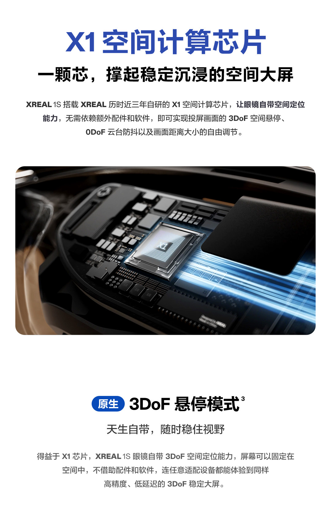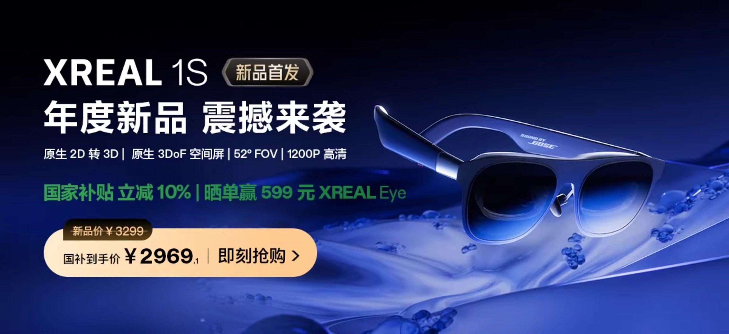 【新品首发】XREAL 1S AR智能眼镜 原生2D转3D 自研X1芯片空中巨幕500英寸 52度FOV 非VRAI眼镜