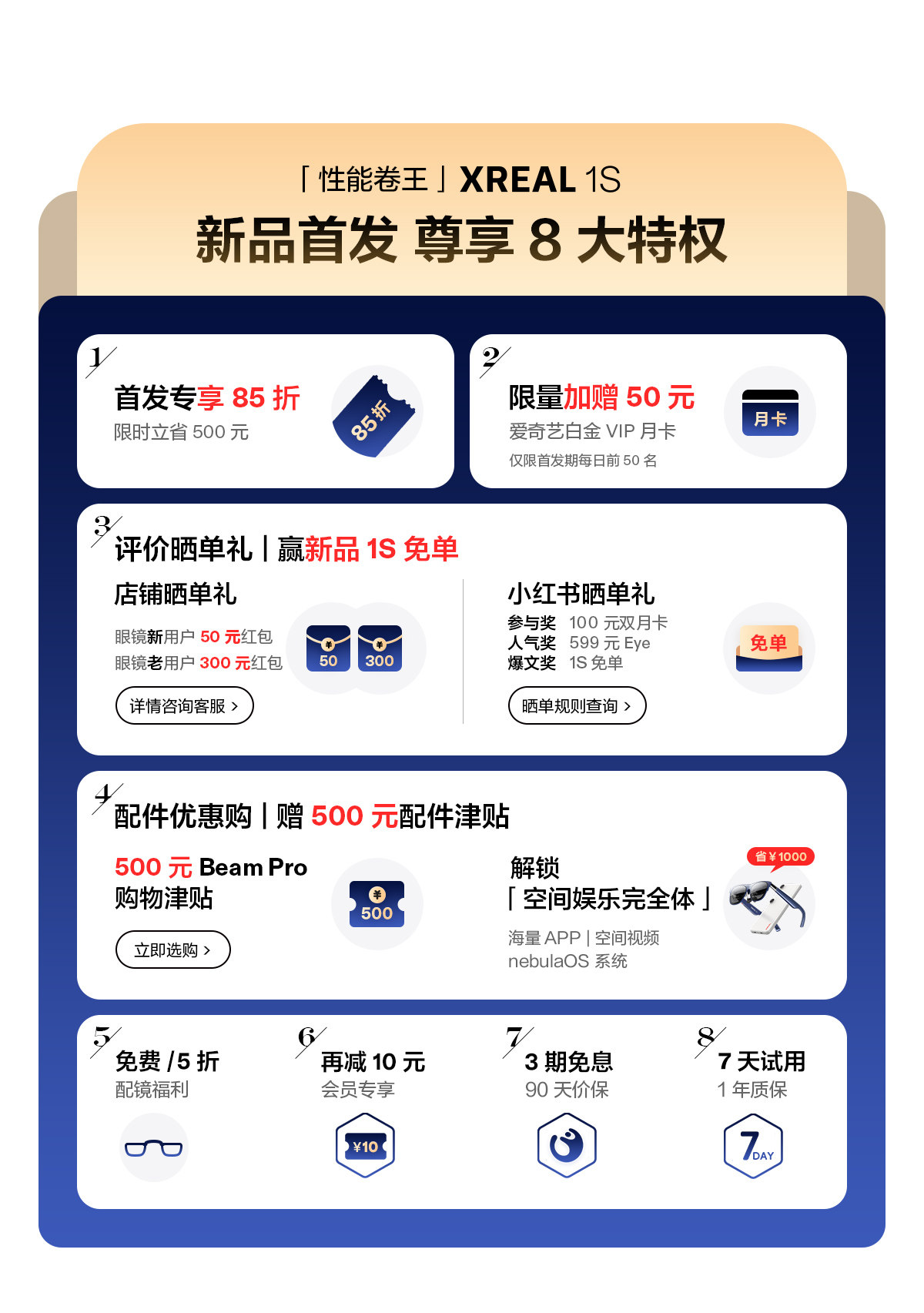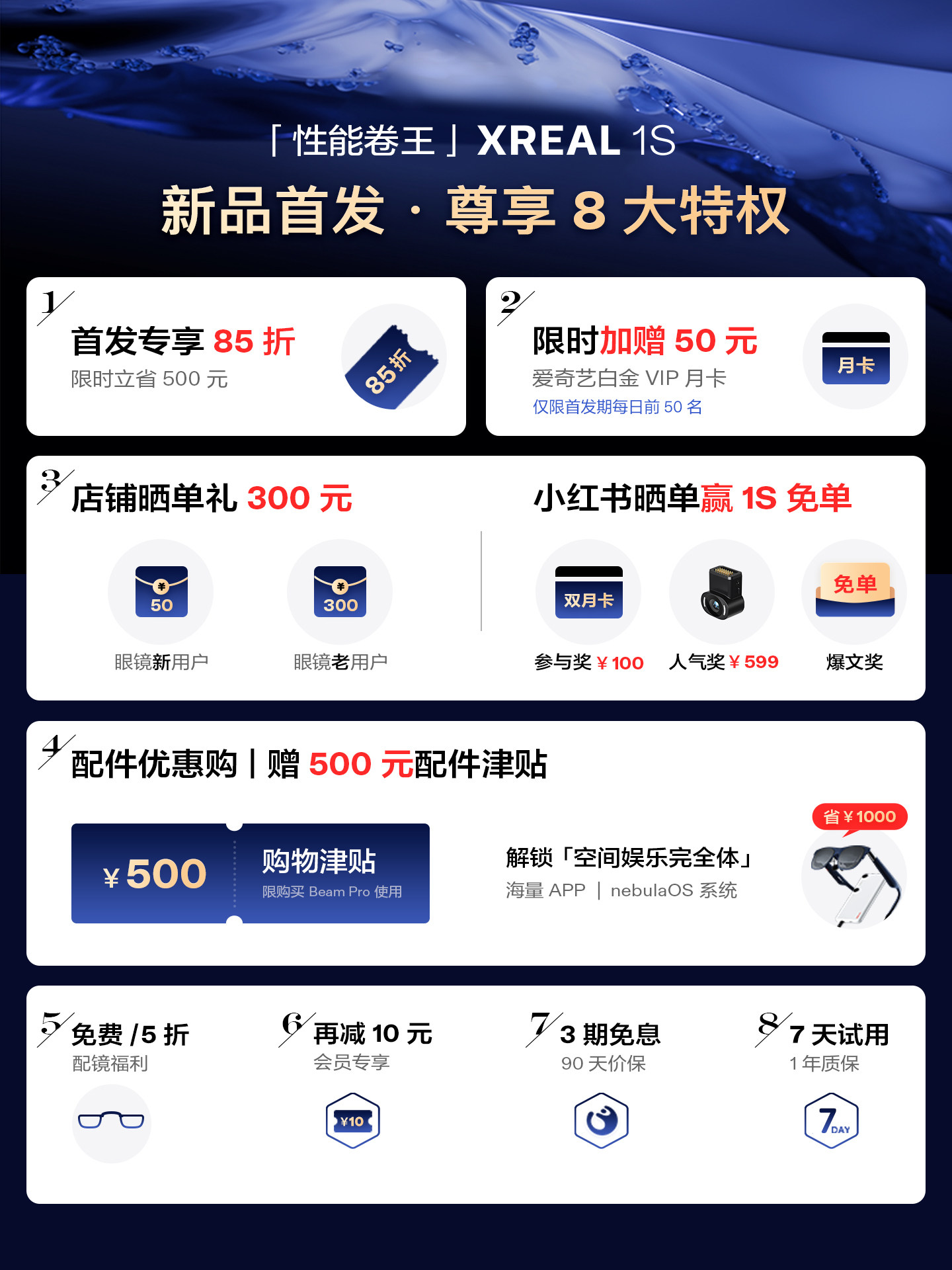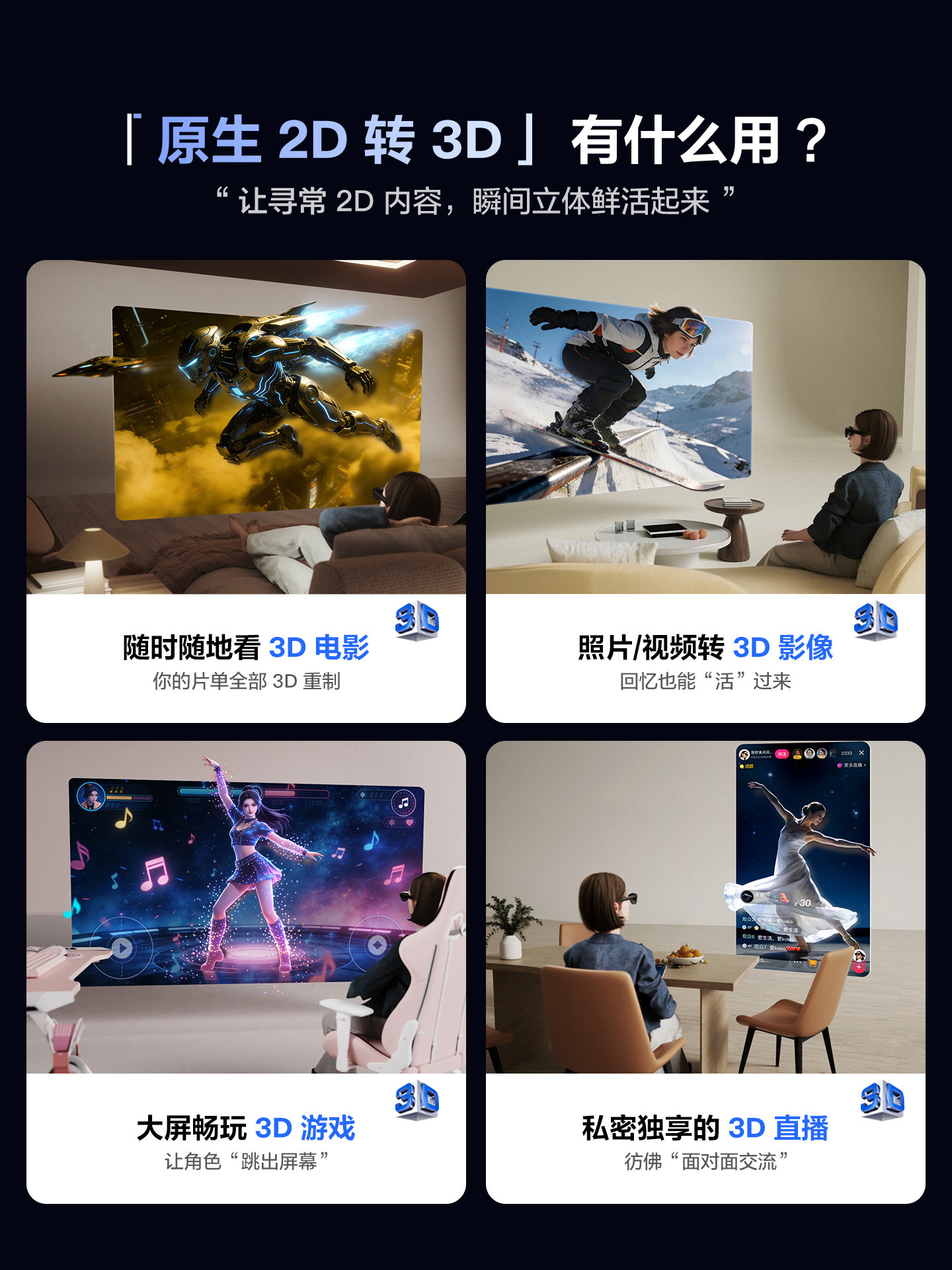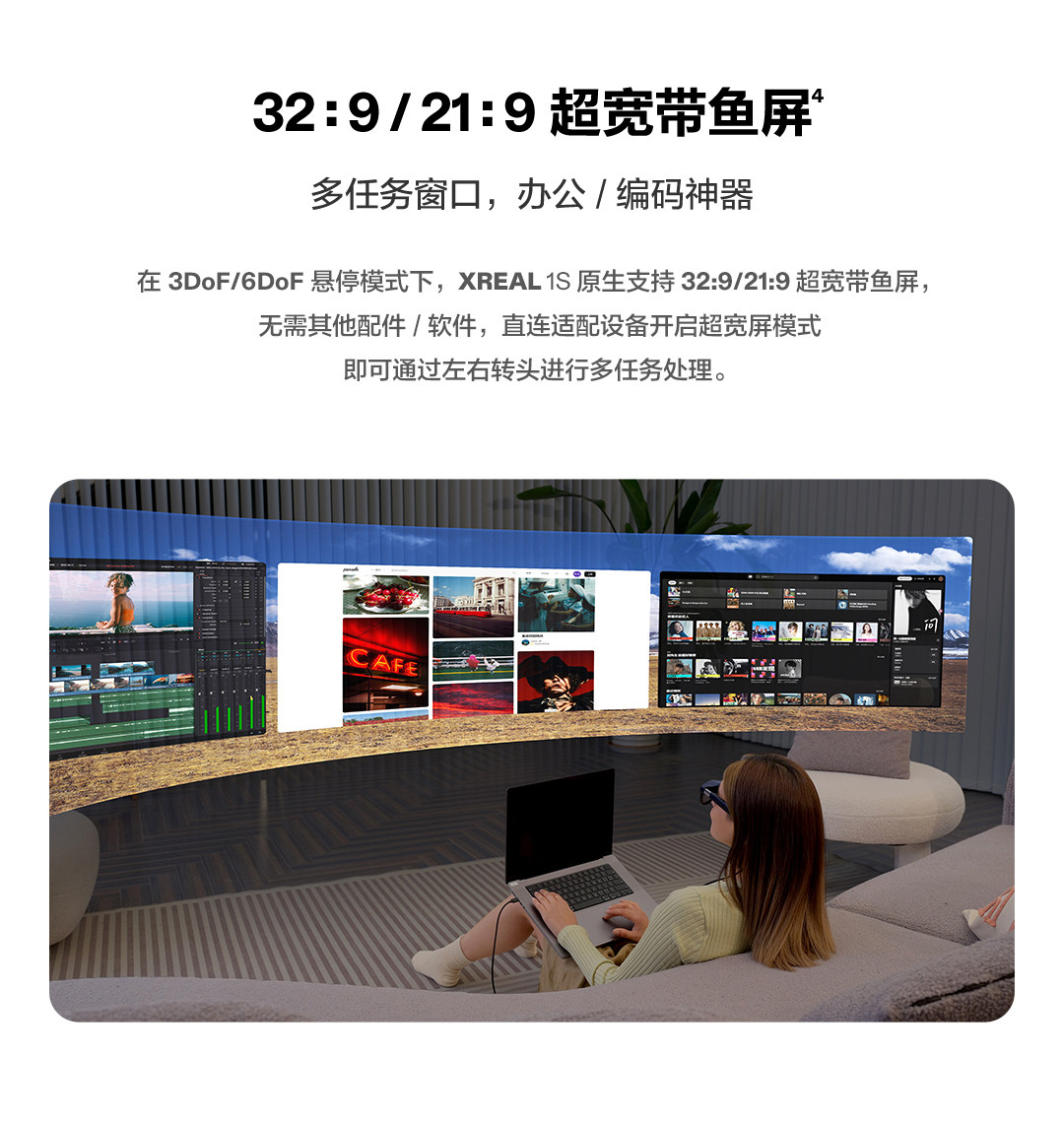 【新品首发】XREAL 1S AR智能眼镜 原生2D转3D 自研X1芯片空中巨幕500英寸 52度FOV 非VRAI眼镜