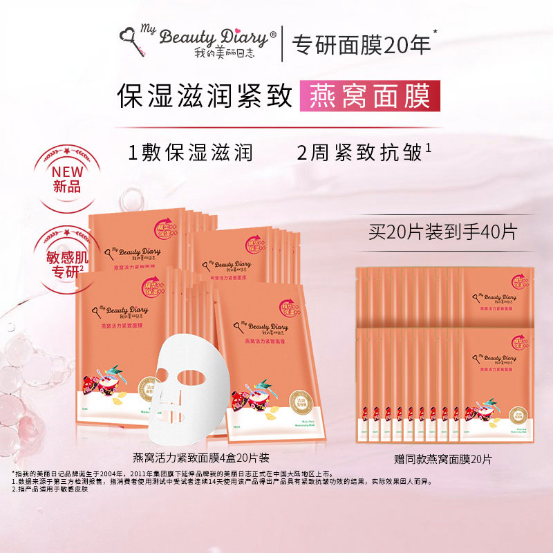 我的美丽日志日记燕窝紧致保湿贴片面膜女秋冬护肤20片