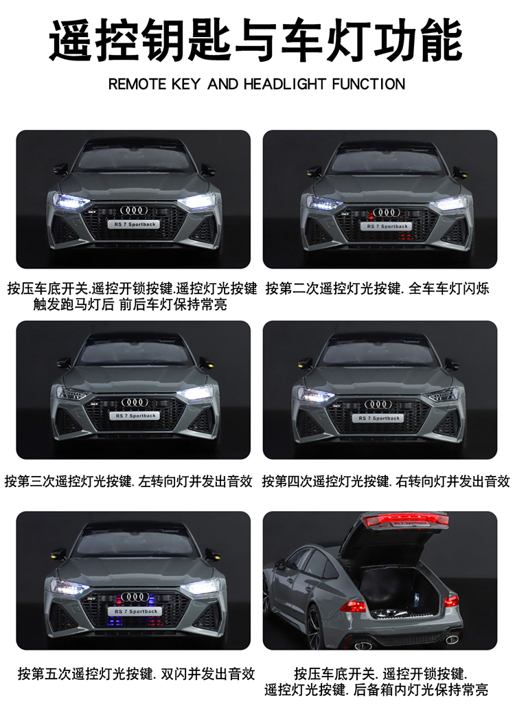 合金遥控版奥迪rs7汽车模型摆件仿真正版1:18大跑车玩具男孩礼物