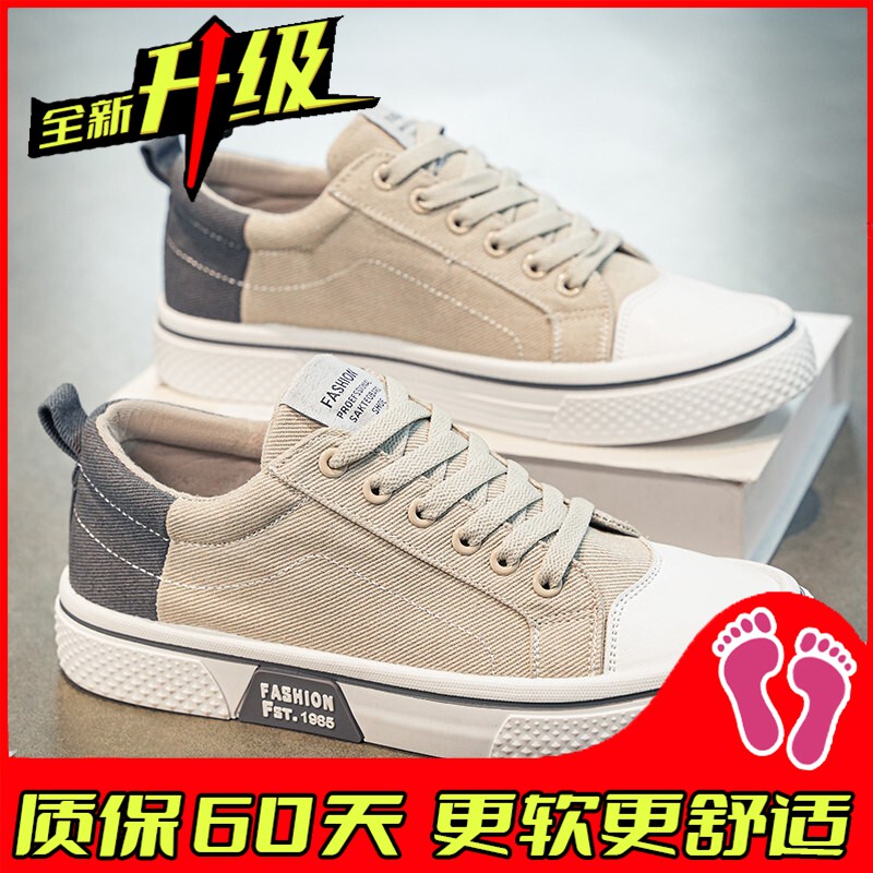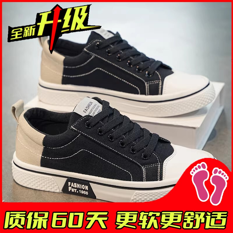 帆布男鞋2026新款春季透气休闲低帮板鞋厚底耐磨运动上班工作潮鞋